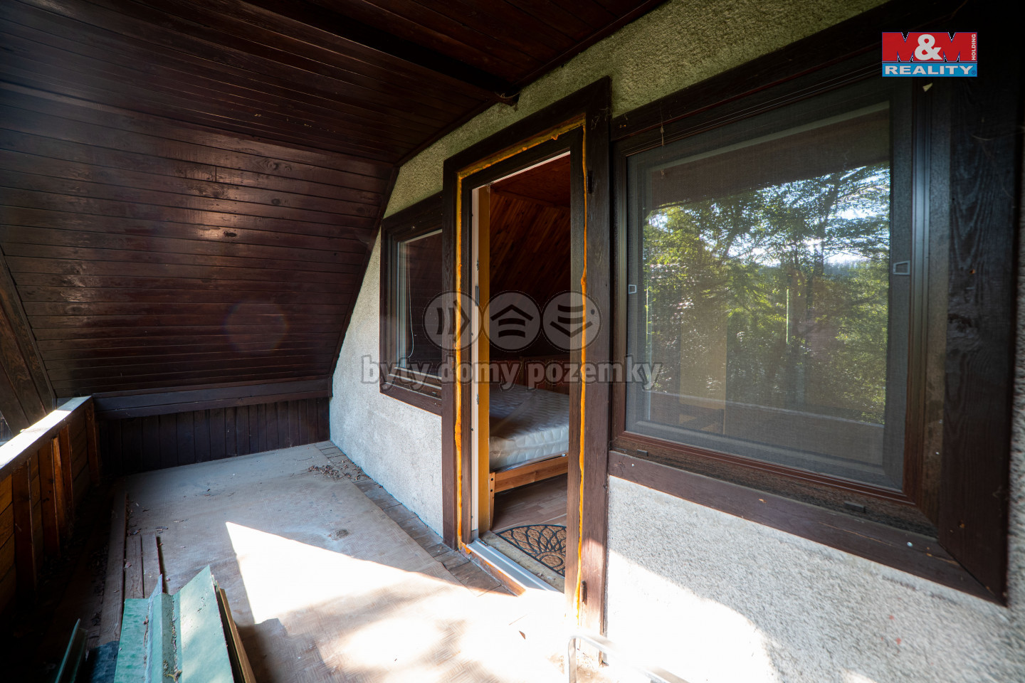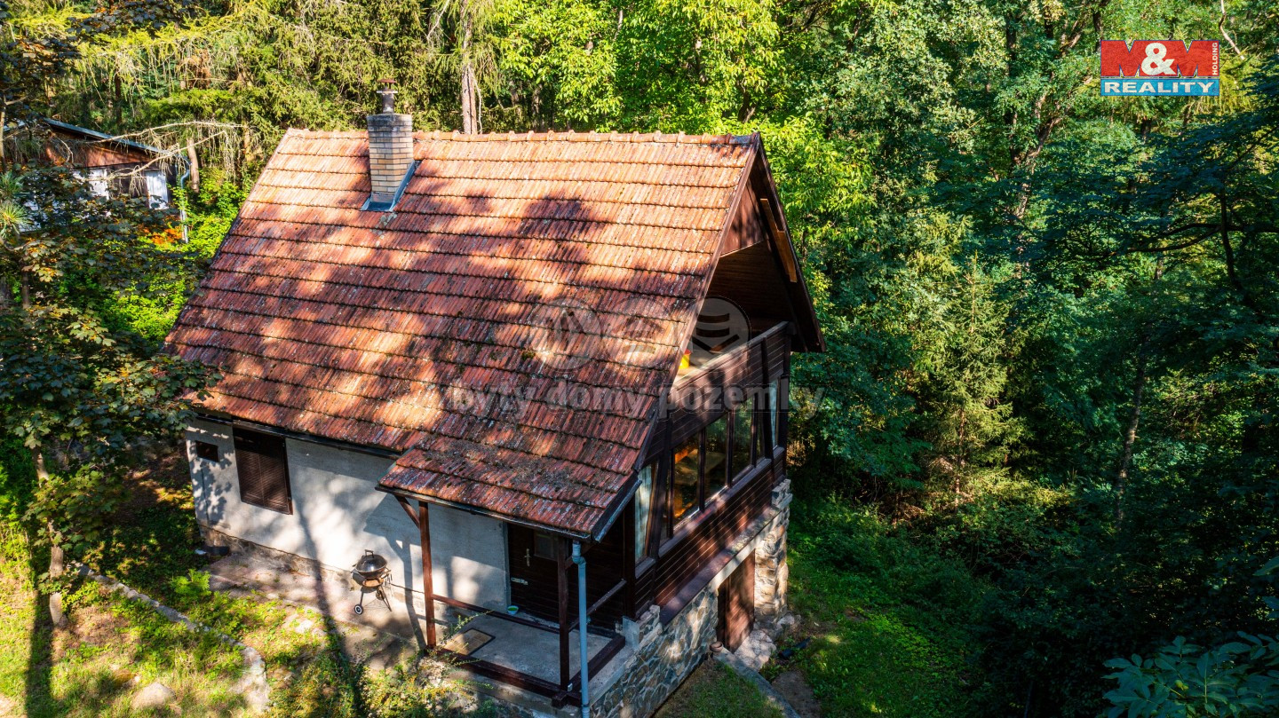 Nabízíme k prodeji chatu zhruba 15 minut od Brna v lese vedle obce Nebovidy. Chata se nachází v chatové oblasti a stojí na pozemku ve vlastnictví Lesů České republiky. Skládá se z tří podlaží - jedno je technické a může sloužit jako garáž, prostřední je obytné s kuchyní, obývacím pokojem a koupelnou s WC, horní patro je potom složeno z jednoho velkého samostatného pokoje a otevřeného prostoru na spaní s přístupem na balkon. V chatě je zavedena elektřina, odpad je řešen septikem a vodu je nutné dovážet vlastní do nádrží v garáži. Vytápění je řešeno krbovými kamny v obývacím pokoji, je případně možné umístit přímotopy. Příjezd na chatu je po lesní cestě. Financování pouze hotově, využít hypotéku je možné pouze se zástavou jiné nemovitosti. Více informací v RK.
