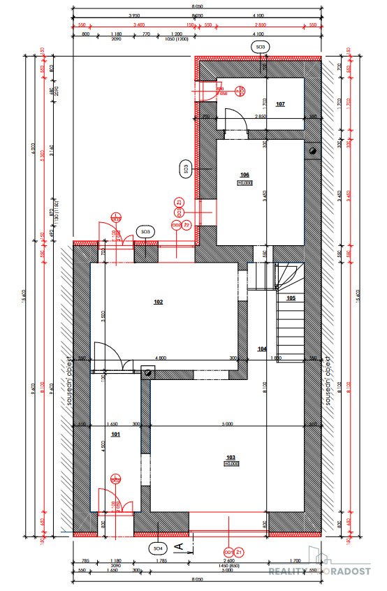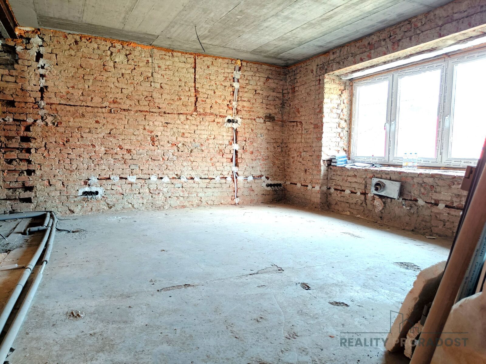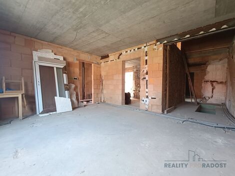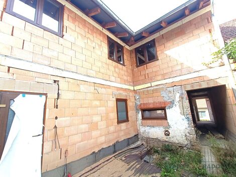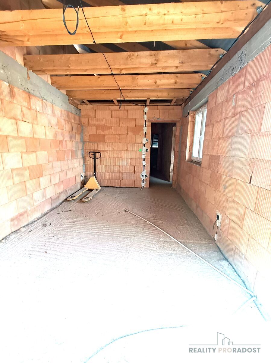 Nabízíme k prodeji prostorný a dispozičně velmi zajímavě řešený řadový rodinný dům o velikosti 4 + 1 + garáž(sklep) v obci Račice-Pístovice, okres Vyškov. V přízemí - vstupní chodba, velký obývací pokoj, kuchyně, koupelna + technická místnost s východem na zahradu/terasu. Z kuchyně východ na zahradu/terasu. V patře - ložnice, dětský pokoj, koupelna, pracovna s východem na zahradu. V suterénu - menší garáž či sklep + domácí vodárna. Dům s číslem popisným a se stavebním povolením je ve fázi hrubé stavby a je dokončeno: - elektroinstalace, rozvody vody a rozvody odpadů, příprava podlahového topení - elektro či voda, kompletní nová střecha - vazba a krytina z pálených tašek, plastová okna - trojskla, plastové vstupní dveře stejně jako vrata do garáže(sklepa) zakoupeny a uskladněny k instalaci na závěr dostavby. Dům je připojen na síť elektro, kanalizaci, vodovodní řad. Plynová přípojka je k dispozici. Výhodou je vlastní studna. Zahrada nabízí dostatek soukromí k posezení a relaxaci. Ještě nedokončené terénní úpravy nabízí několik možností přizpůsobit zahradu vlastním představám a vytvořit útulné místo korunované výhledem na dominantu obce - zámek Račice (viz foto). Předpokládaná kalkulace na dokončení stavby cca dva miliony Kč. Průkaz energetické náročnosti budovy připraven - hodnota C - úsporný. Na požádání zašleme kompletní projektovou dokumentaci. Poradíme s financováním, nabídneme chytrou a spočítáme výhodnou hypotéku. Pokud máte zájem o prohlídku, neváhejte nás kontaktovat.