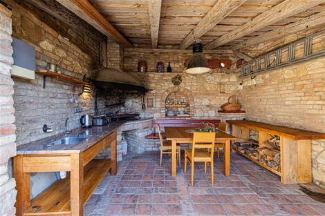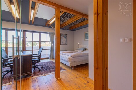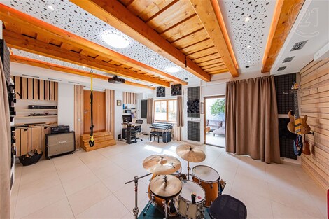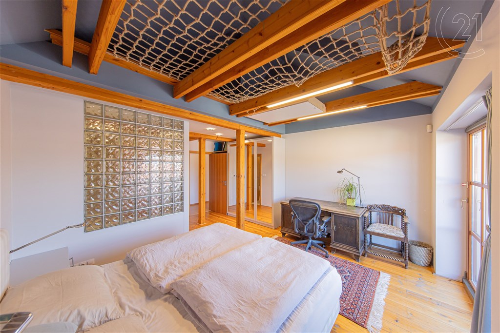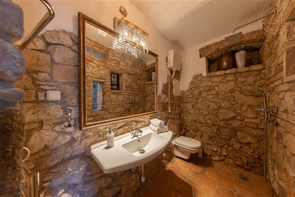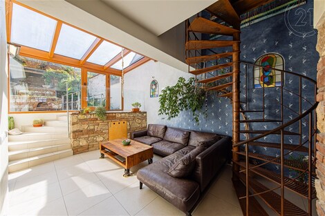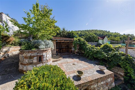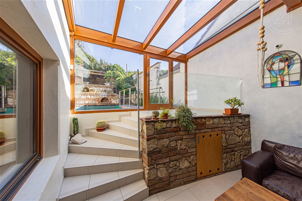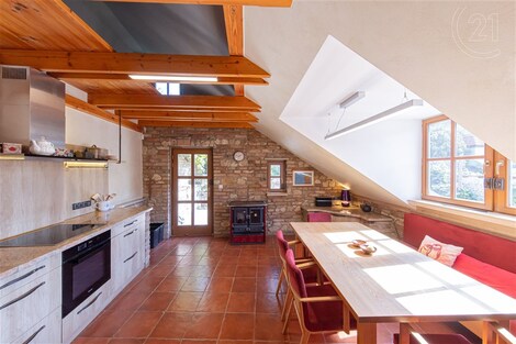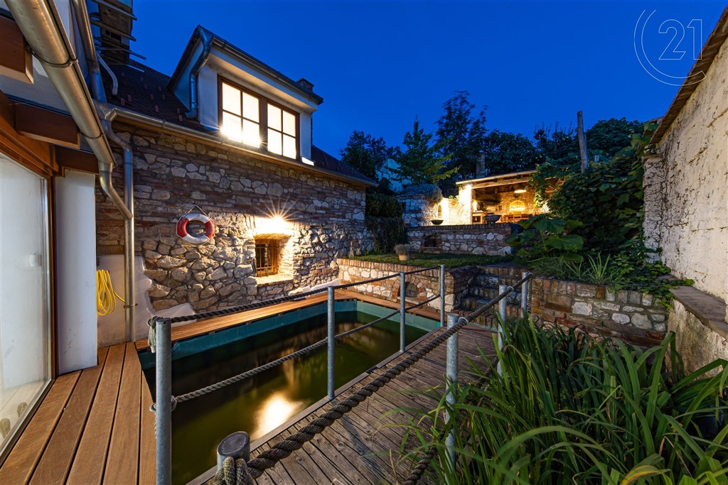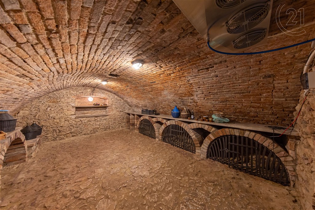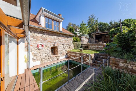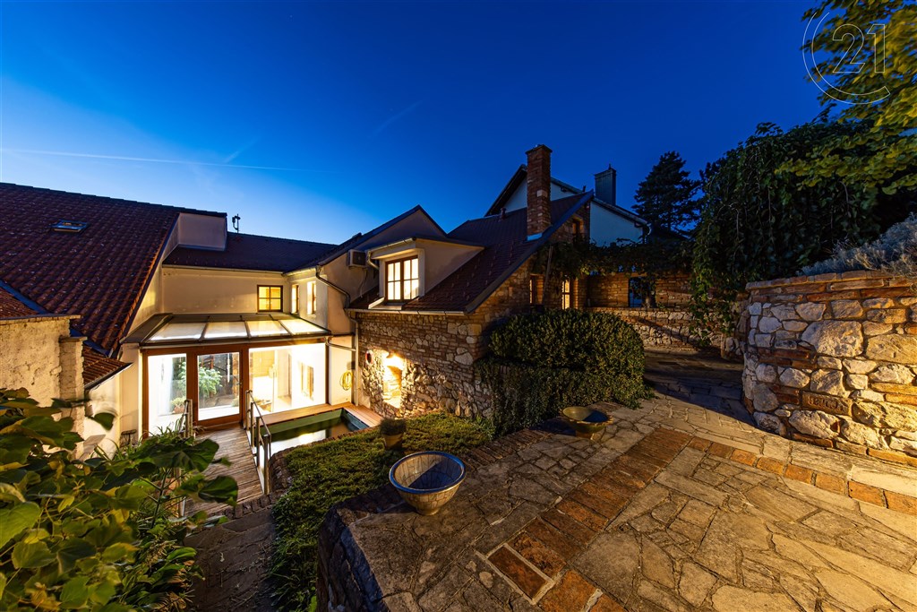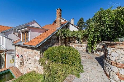 Představujeme Vám k prodeji jedinečnou nemovitost s bohatou historií, soukromím, moderním komfortem a vinicí v srdci malebného Mikulova. V domě najdete klid pro rodinu i své hosty. Při vstupu do nemovitosti vás uvítá prostorná hala s originálním kovovým schodištěm. Hala ústí do zahrady a nabízí výhled na zeleň a vodní plochu přes prosklenou stěnu. Na zahradě najdete zastřešené posezení s krbem, ideální pro čas strávený s rodinou a přáteli a samočistící bazén, nabízející dokonalou oázu klidu a relaxace. Spodní část domu je v současné chvíli prostorem nejen pro uměleckou tvorbu, umístěno je zde i odhlučněné nahrávací studio a zkušebna současného majitele, Davida Kollera. Ze zkušebny, vybavené projektorem i plátnem, která může novému majiteli sloužit jako obývací pokoj nebo kuchyň s jídelnou (inž. sítě jsou připraveny), je přímý vstup do chodby s dřevěnou saunou a stylovou koupelnou v designu navazujícího sklípku. Nejen milovníci vína ocení v této části domu prostorný sklep s nastavitelným chlazením, který je vhodný pro uskladnění ovoce, zeleniny nebo právě vína. Mezi saunou a sklípkem je v současnosti technická místnost, jejíž další využití je zcela v gesci nového majitele. Ve druhém patře domu jsou tři vzdušné prostorné pokoje s vysokými stropy, lanovými sítěmi, kde můžete relaxovat a s horním prostorem vhodným k dalšímu využití, ať již jako úložný prostor či další lůžkový prostor. Ložnice má vlastní balkon s podlahou z Massaranduby a nabízí výhled do ulice a na celý Mikulov. Každý pokoj má vlastní koupelnu. Jeden z pokojů navíc disponuje i dětskou lezeckou stěnou a velkým horním prostorem se dvěma lůžky. Pokoje jsou spojeny chodbou, která ústí v plně vybavenou kuchyni s jídelním stolem a italskými kamny. Kuchyň je zároveň vstupem na terasu navazující na venkovní posezení letní kuchyně, odkud je nádherný výhled na okolí. Za domem, v další úrovni pozemku nad letní kuchyní, se nachází dřevostavba s koupelnou a kuchyňkou, hned vedle něj je umístěna i venkovní vířivka. Výjimečný výhled na dominantní zámek Mikulov a do vlastní vinice na druhé straně, dodává celému místu nezaměnitelnou atmosféru. V horní části pozemku je zahrada s vlastní studnou i zavlažovacím systémem, zahradním domkem pro umístění nářadí, vzrostlými stromy a vinicí, dodávající nemovitosti autentický vinařský ráz. Vinice nabízí majiteli možnost produkce vlastního vína, eventuálně je možné ji pronajmout. Na pozemku o rozloze 2505 m2 najdete nejen kouzlo historické architektury, jejíž základy sahají až do 17. století, ale také moderní prvky vyššího standardu. Přestavbu domu do současné podoby vedl Ing.arch. Štěpán Děnge. Pokud hledáte spojení luxusního bydlení, umění, výjimečného místa, vinařského ráje a propojení s přírodou a krásnými výhledy, máme pro vás jedinečnou příležitost! Rádi vás celým domem, zahradou i vinicí provedeme a doplníme zbylé informace. K prodeji domu nabízíme kompletní servis včetně exkluzivního financování. Budeme se těšit na viděnou. Klára a Lucie