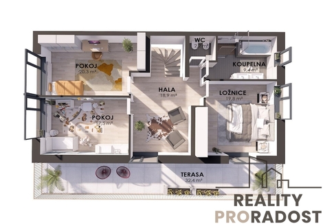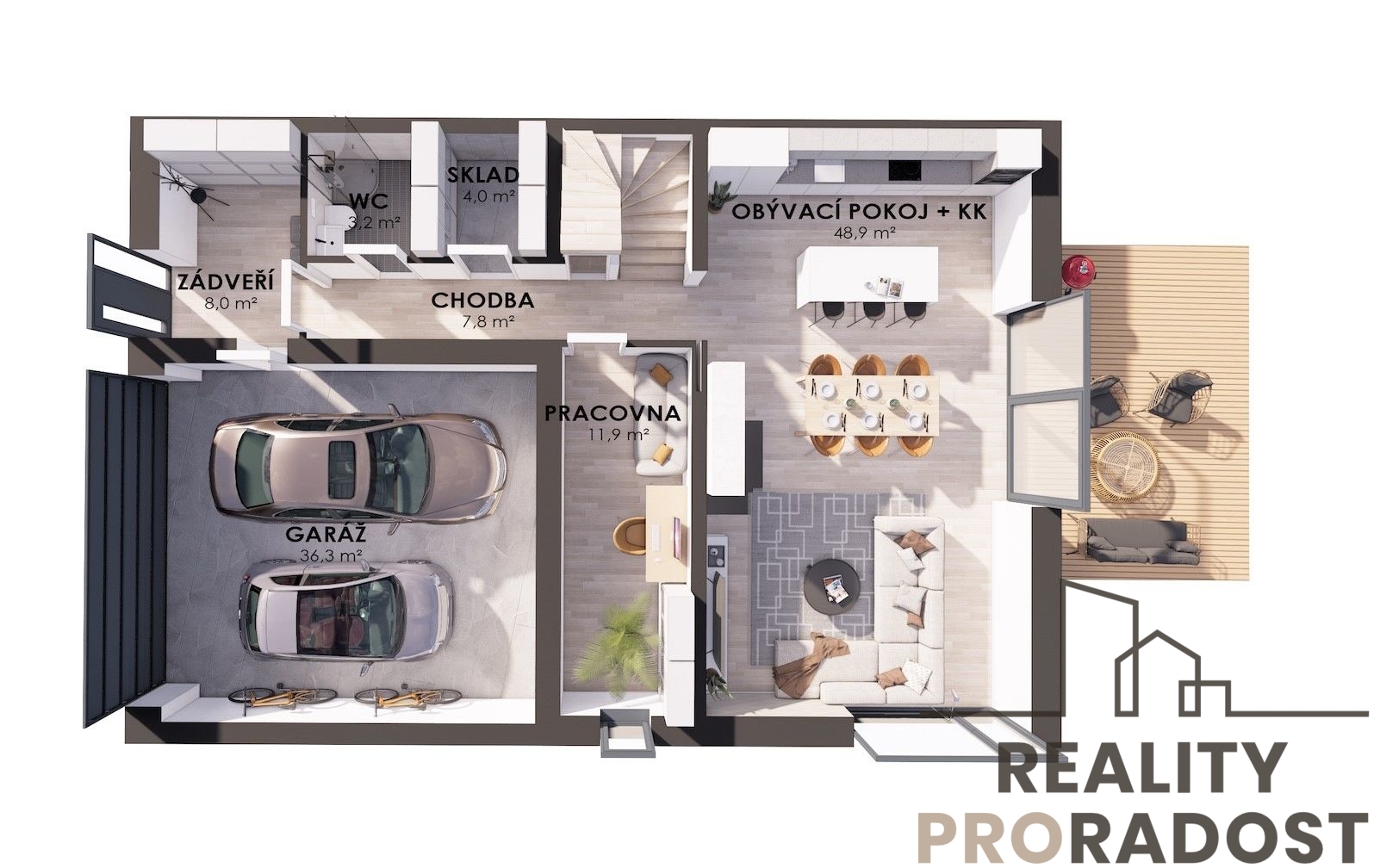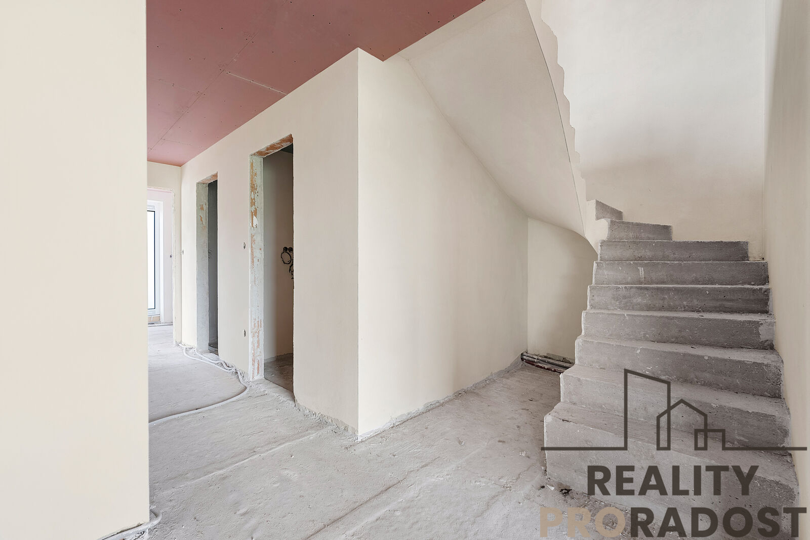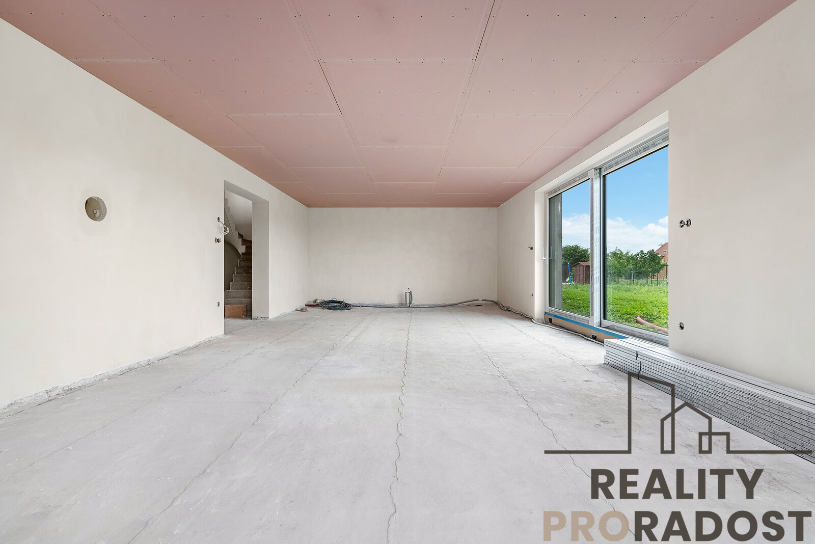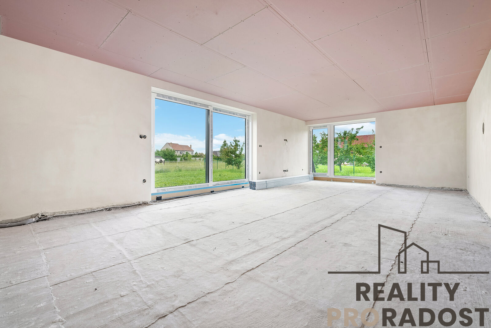Nabízíme jedinečnou možnost stát se majitelem tohoto moderního rodinného domu v části obce Medlov, okres Brno-venkov. Dům je ve fázi před dokončením a nabízí dispozici 4+kk s dostatkem prostoru pro rodinu, práci i relaxaci. Zastavěná plocha: 154 m2 Užitná plocha: 238 m2 Terasa: 32 m2 Garáž pro dvě auta: 36,3 m2 Dispozice domu Přízemí Obývací pokoj s kuchyňským koutem 49,9 m2 - s přípravou na krb Pracovna 11,9 m2 Chodba 7,8 m2 Technická místnost 4 m2 Koupelna 3,2 m2 Zádveří 8 m2 Dvojgaráž 36,3 m2 1. nadzemní podlaží Ložnice 19,8 m2 Pokoj 17,5 m2 Pokoj 20,3 m2 Hala 18,9 m2 Koupelna 9,4 m2 Samostatné WC 2,2 m2 Technické parametry a možnosti dokončení Dům je vybaven vchodovými dveřmi, garážovými vraty a okny. Je připravena elektroinstalace pro podlahové vytápění, klimatizaci, solární panely, fotovoltaiku, tepelné čerpadlo, bezpečnostní systém, elektrické rolety, kamery a internet. Jsou zde veškeré zásuvky, vypínače, vodoinstalace a odpady. V ceně je možnost dodělání: Elektrické podlahové vytápění Betonová podlaha a izolace Dveře, zárubně, kliky, zámky Vnitřní malování Obklady a dlažba v koupelnách Umyvadla, WC, baterie, vana, sprchové kouty Zábradlí na vnitřní schody a terasu bez výplně Není zahrnuto položení podlah, fasádní barva a kuchyňská linka. Kupní cena se může lišit dle domluvy na dokončení. Lokalita a občanská vybavenost Městys Medlov se nachází 24 minut od Brna, 10 minut od Židlochovic, 9 minut od Pohořelic a 12 minut od Rajhradu. V obci je základní škola, školka a potraviny. Pokud hledáte dům s dostatkem prostoru a možností dokončení podle vlastních představ, neváhejte mě kontaktovat a domluvit si prohlídku.
