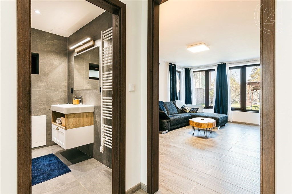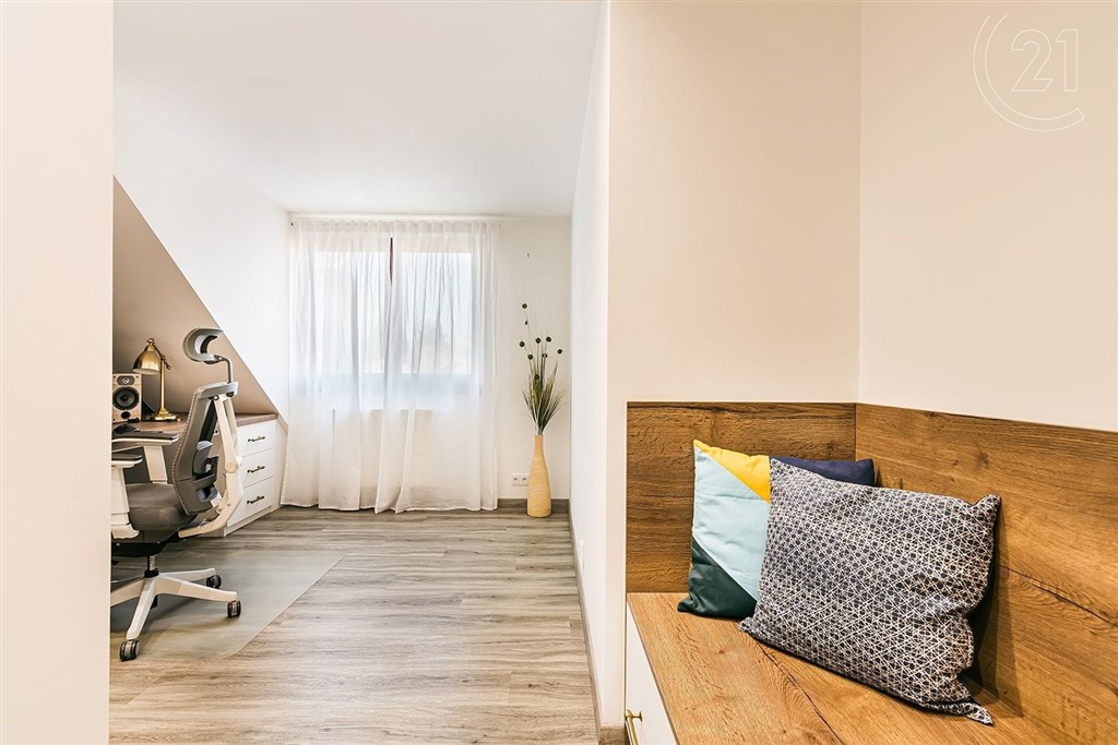 Jedinečný rodinný dům po kompletní rekonstrukci, situovaný v městské části Brno - jih, v Přízřenicích. Tato nemovitost zaujme na první pohled: jak svým promyšleným dispozičním řešením, tak nadstandardní kvalitou použitých materiálů okna s izolačními trojskly, kompletní zateplovací systém, schodiště z masivu, zabezpečovací systém, nábytek na míru atd. Dům je napojený na všechny inženýrské sítě, ale má i vlastní studnu, na niž je napojena automatická závlaha trávníku. Vytápění objektu zajišťuje plynový kotel, v přízemí a v horní koupelně je podlahové topení a v obývacím pokoji funkční krb. Užitná plocha domu činí cca 218 m2, a kromě obytných místností nabízí také prostornou dílnu, prádelnu, pochozí půdu. Interiéry byly realizovány pod dohledem bytové designérky, každá místnost působí harmonicky a stylově navazuje na ty ostatní. V přízemí domu je předsíň s vestavěnými skříněmi, pracovna, koupelna se sprchovým koutem, samostatná toaleta, a dále obývací pokoj a kuchyně orientované do zahrady. Na kuchyni navazuje prosklená zimní zahrada sloužící jako jídelna i relaxační zóna. V podkroví naleznete pracovnu, ložnici se šatnou, pokoj pro hosty, velkou koupelnu se zabudovanou saunou a vstup na půdu. Půdorys stavby vytváří klidnou relaxační zónu a zajišťuje naprosté soukromí. Zahrada je okrasná, najdete zde zapuštěné posezení pod pergolou, trávník s automatickou závlahou, okrasné keře i nenápadný dřevník, kam uložíte vše potřebné např. pro zahradní párty. Lokalita je příjemná, s výbornou dostupností do centra Brna i na dálnici D1 a D2. V blízkosti se nachází OC Olympia, Avion Shopping Park, škola, školka, obchod s potravinami i kavárna. Pro sportovní a volnočasové aktivity můžete využít nedalekou cyklostezku Brno - Vídeň, sportovní areál Kšírovka či koupaliště biotop Brno - jih. Zastávka MHD je pár kroků a zastavuje zde i noční autobus N94. Tento dům je ideální volbou pro náročného klienta, který hledá komfortní, bezúdržbové a reprezentativní bydlení, které má styl a zároveň plně slouží praktickým potřebám každodenního života. Neváhejte mě kontaktovat pro více informací nebo domluvení osobní prohlídky - tento dům stojí za to vidět!