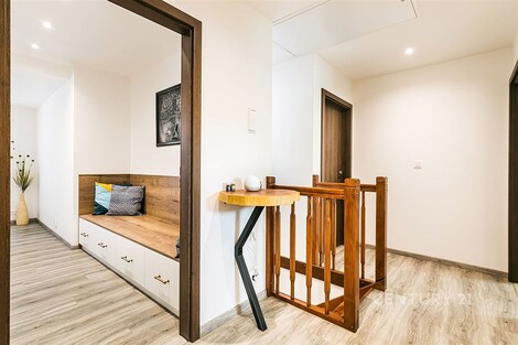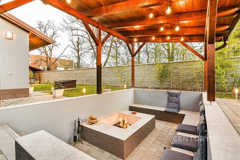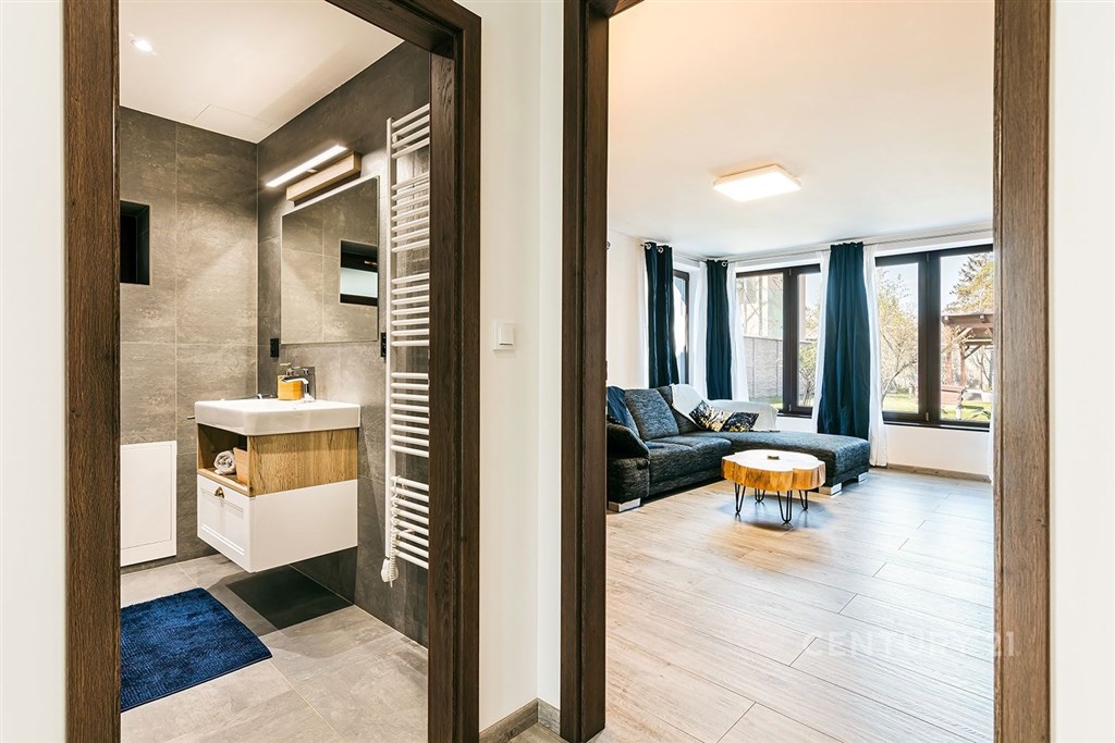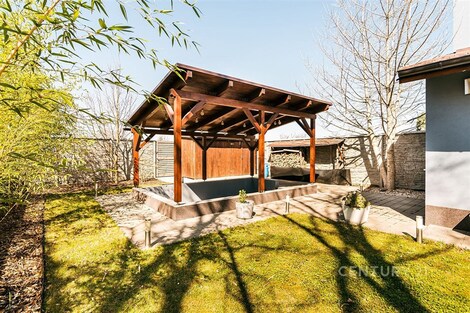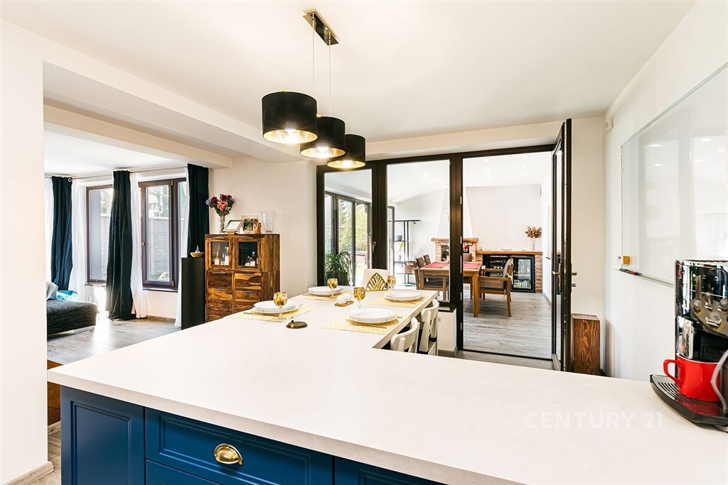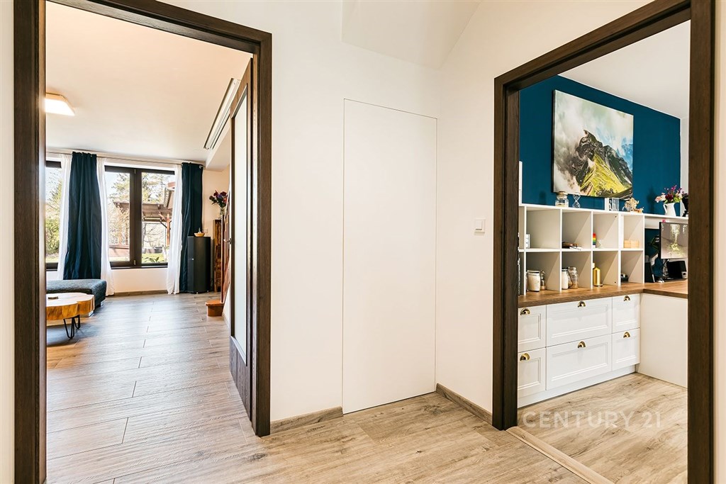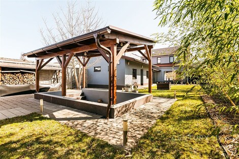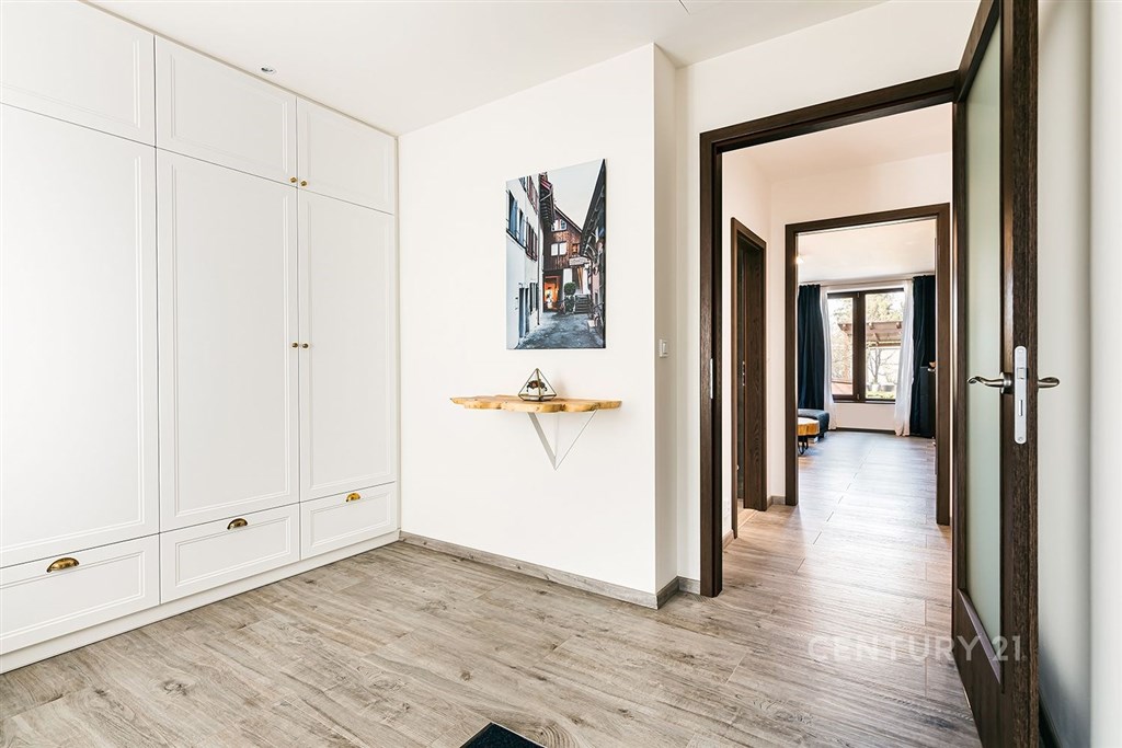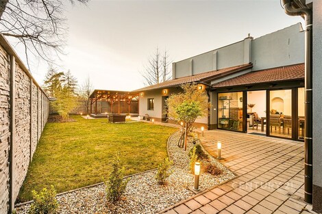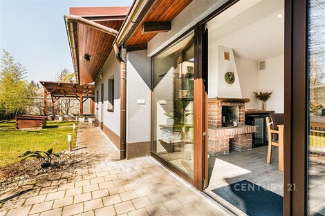 Jedinečný rodinný dům po kompletní rekonstrukci, situovaný v městské části Brno - jih, v Přízřenicích. Tato nemovitost zaujme na první pohled: jak svým promyšleným dispozičním řešením, tak nadstandardní kvalitou použitých materiálů: okna s izolačními trojskly, kompletní zateplovací systém, schodiště z masivu, zabezpečovací systém, nábytek na míru, vestavěné promítací plátno atd. Dům je napojený na všechny inženýrské sítě, ale má i vlastní studnu, na niž je napojena automatická závlaha trávníku. Vytápění objektu zajišťuje plynový kotel, v přízemí a v horní koupelně je podlahové topení a v obývacím pokoji funkční krb. Užitná plocha domu činí cca 218 m2, a kromě obytných místností nabízí také prostornou dílnu, prádelnu, pochozí půdu. Interiéry byly realizovány pod dohledem bytové designérky, každá místnost působí harmonicky a stylově navazuje na ty ostatní. V přízemí domu je předsíň s vestavěnými skříněmi, pracovna, koupelna se sprchovým koutem, samostatná toaleta, a dále obývací pokoj a kuchyně orientované do zahrady. Na kuchyni navazuje prosklená zimní zahrada sloužící jako jídelna i relaxační zóna. V podkroví naleznete pracovnu, ložnici se šatnou, pokoj pro hosty, velkou koupelnu se zabudovanou saunou a vstup na půdu. Půdorys stavby vytváří klidnou relaxační zónu a zajišťuje naprosté soukromí. Zahrada je okrasná, najdete zde zapuštěné posezení pod pergolou, trávník s automatickou závlahou, okrasné keře i nenápadný dřevník, kam uložíte vše potřebné např. pro zahradní párty. Uvolnění domu je možné ihned po přepisu na nového majitele. Lokalita je příjemná, s výbornou dostupností do centra Brna i na dálnici D1 a D2. V blízkosti se nachází OC Olympia, Avion Shopping Park, škola, školka, obchod s potravinami i kavárna. Pro sportovní a volnočasové aktivity můžete využít nedalekou cyklostezku Brno - Vídeň, sportovní areál Kšírovka či koupaliště biotop Brno - jih. Zastávka MHD je pár kroků a zastavuje zde i noční autobus N94. Tento dům je ideální volbou pro náročného klienta, který hledá komfortní, bezúdržbové a reprezentativní bydlení, které má styl a zároveň plně slouží praktickým potřebám každodenního života. Neváhejte mě kontaktovat pro více informací nebo domluvení osobní prohlídky - tento dům stojí za to vidět!