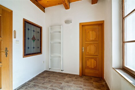 Nabízím do prodeje velký rodinný dům o celkové užitné ploše ca. 330 m2, který se nachází v samotném centru města Znojma, na ul. Horní Česká. Dům je rozdělený na komerční prostor ve sníženém 1. nadzemním podlaží a současně v 1. podzemním podlaží a na obytný prostor ve 2. nadzemním podlaží. Zde se nacházejí 2 bytové jednotky 2+1 a po menší úpravě (je třeba přebudovat WC na sprchový kout) 1+kk. Dům také disponuje velikou půdou, kde se počítá se zbudováním další bytové jednotky s velkorysým prostorem více jak 150 m2 viz dvě vizualizační fotografie (projekt je vyhotoven a bude předán novému majiteli). Rodinný dům prošel v r. 2005 rozsáhlou kompletní rekonstrukcí, kdy bylo zbudováno nové schodiště, nové rozvody vody, odpadu, elektřiny a plynu. Byla také udělána nová střecha včetně střešní krytiny. Dům je napojen na všechny inženýrské sítě, vytápění je zajištěno plynovým kotlem, stejně tak i ohřev teplé vody. V komerčních prostorech se nachází fungující parfuremie a drogerie, 1+kk ve 2. nadzemním podlaží bylo původně zbudováno jako kadeřnictví. Za domem se nachází dvorek/zahrádka s prostornou terasou. Jedná se o uzavřený prostor uprostřed města. Poloha domu v centru města Znojma zajišťuje bezproblémovou dostupnost veškeré občanské vybavenosti nacházejí se zde všechny stupně školství kromě vysokého, lékaři, obchody, kino, divadlo a mnohé možnosti pro sportovní vyžití. Město je tedy centrem historie, kultury, turistiky a současně je napojeno na přírodu přilehlého Gránického údolí. Pro bližší informace a prohlídku nemovitosti mne neváhejte kontaktovat.