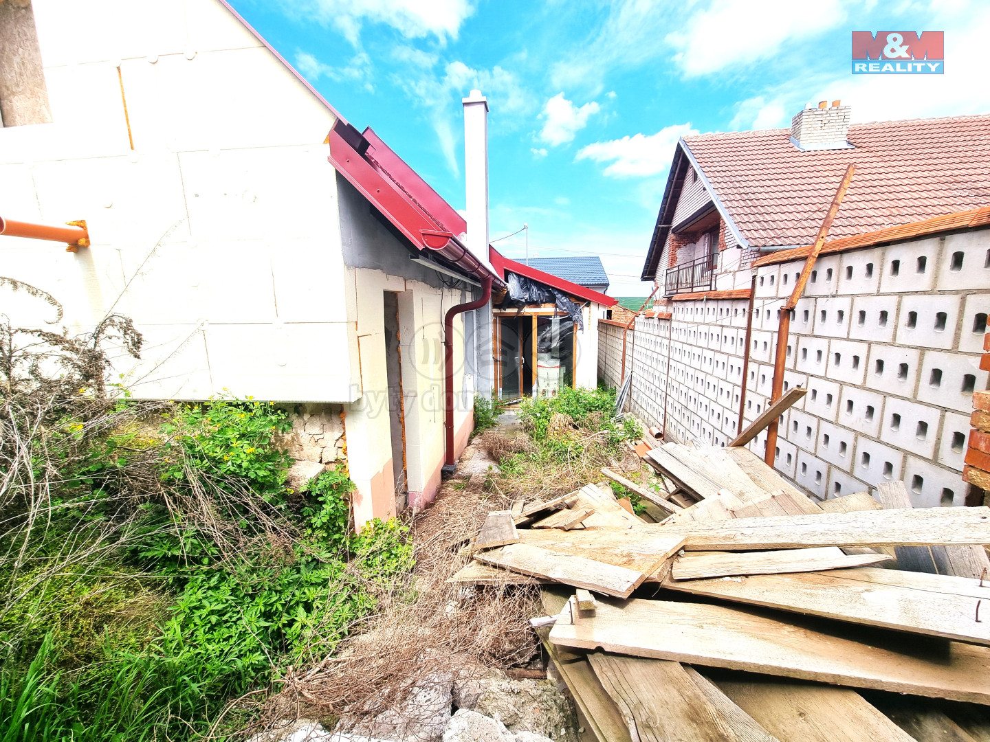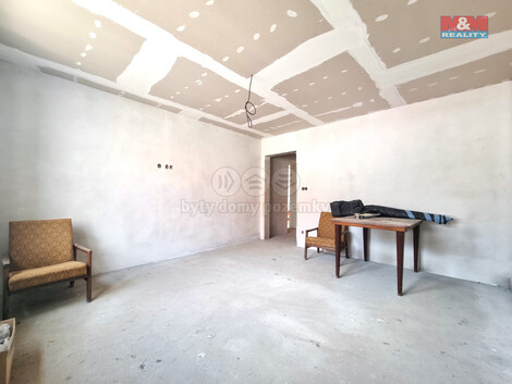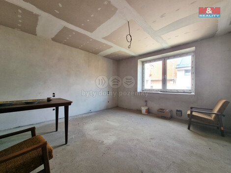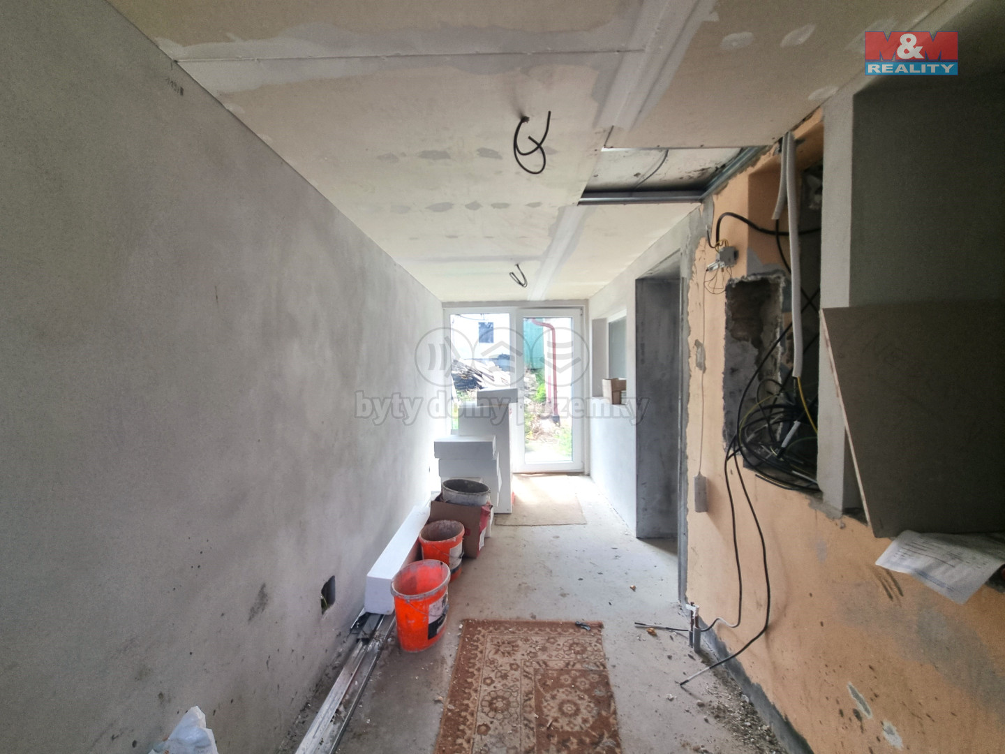 Prodej řadového rodinného domu o dispozici 3+KK ve fázi rozpracované rekonstrukce v obci Čejkovice. Jedná se o patrový rodinný dům, určený k dokončení započaté rekonstrukce. Realizováno: nová střecha, krovní vazby, střešní tepelná izolace, střešní okna, světlovod, veškeré nové IS, betonové podlahy, vnitřní omítky, vnější tepelná izolace, okna, dveře, příprava rozvodů vodo/odpad/elektro pro kuchyň a koupelnu, rozvody pro topení, komín pro krbová kamna, nové zastřešení venkovních přístaveb. K dokončení rekonstrukce zbývá: venkovní terénní úpravy, dokončení koupelny a kuchyně, podlahové krytiny, výmalba, finalizace elektro, svítidla, zásuvky vypínače, elektrokotel a topná tělesa, vnitřní zárubně a dveře. V půdní vestavbě mohou vzniknout dvě ložnice o neplnohodnotné výšce určené ke spaní, ne k obývání. Zbudována příprava na vybudování toalety s umyvadlem. Výhody: velmi žádaná lokalita, dokončení rekonstrukce dle představ kupujícího. Pro více informací a prohlídky kontaktujte makléře.