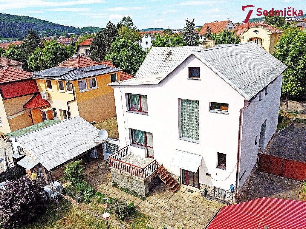 Prostorný rodinný dům ve vilové čtvrti - příroda i centrum na dosah. Hledáte komfortní bydlení v Tišnově? Máme pro vás samostatně stojící rodinný dům v klidné vilové čtvrti z počátku 20.století - jen pár minut chůze od centra, a zároveň i v blízkosti lesa pod kopcem Klucanina. Lokalita spojuje klid, zeleň i skvělou dostupnost. V přízemí domu je vstupní hala se schodištěm do prvního podlaží a na zahradu, kuchyň, velký pokoj s krbovými kamny, původně rozdělený příčkou na dva pokoje, dále koupena a WC. V patře potom jsou tři prostorné pokoje, koupelna, WC a v prostoru u schodiště je sauna. Na zahradě najdete sice starší, ale plně funkční zahradní domek. Velikost a dispozice domu řeší komfortní bydlení i pro větší rodinu anebo pro dvougenerační bydlení. Dům je napojený na všechny IS, vytápění domu je řešeno tepelným čerpadlem se dvěma hlubinnými vrty a krbovými kamny. Tišnov nabízí skvělou dostupnost do Brna (vlak, autobus, auto) a kompletní občanskou vybavenost - školy, školky, gymnázium, polikliniku, sportoviště, koupaliště, kino, muzeum, tři pivovary a krásnou přírodu na dosah. Přijďte se podívat. Váš nový domov vás čeká! Financování domu je možné i úvěrem ze stavebního spoření nebo hypotékou - zajistíme. Nezávazná konzultace a výběr banky s naším finančním specialistou - zdarma. Můžeme zajistit i financování pro klienty, kteří nedostanou úvěr v bance.