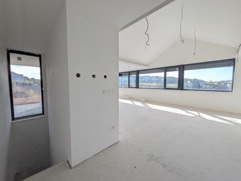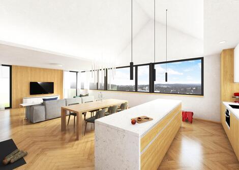 Dovolujeme si vám zprostředkovat koupi novostavby viladomu v rezidenční lokalitě Pod Vyhlídkou v Ochozu u Brna. Jedná se o třetí etapu výstavby, která zahrnuje čtyři rodinné domy v nadstandardním provedení. Dvoupodlažní dům s užitnou plochou 225 m2, zasazený do jižního svahu, je umístěn na pozemku s celkovou výměrou 959 m2. 1. PP - technické: zádveří, vstupní hala, WC, technická místnost, pracovna, garáž pro dva automobily; 1. NP obytné: hala, obývací pokoj s kuchyňským koutem (57 m2, v obytné části s výškou stropu 4,5 m), dva pokoje (14,5 m2;14,5 m2), ložnice s vlastní šatnou, koupelnou a toaletou (24 m2), koupelna společná s toaletou, vstup na dvě terasy a do zahrady. Technický popis: základové pasy + ŽB základová deska, svislé konstrukce 1.PP btb tvarovky, 1.NP keramické tvarovky, strop 1.PP ŽB monolitická deska, strop 1.NP řešen jako součást konstrukce dřevěného krovu, střecha sedlová s keramickou krytinou, omítaná fasáda s částečně dřevěným obkladem ze sibiřského modřínu, provedená v zateplovacím systému ETICS, výplně otvorů hliníkové, velkoplošná skla, předokenní žaluzie. Primárním zdrojem tepla je rekuperační jednotka s integrovaným tepelným čerpadlem s výkonem až 1,3 kW, sekundárním zdrojem tepla je ve všech místnostech elektrické podlahové topení, interiérové schodiště zděné Ytong, dešťová voda svedena do akumulační jímky s bezpečnostním přepadem do vsakovacích bloků. V ceně domu je zahrnuta chytrá domácnost SOMFY, díky které bude možné ovládat žaluzie, garážová vrata, regulaci topení a videotelefon, zabezpečovací systém s napojením dveřních magnetů a sensorů pohybu, venkovní kamery. V ložnici, dětských pokojích a obývacím prostoru budou integrovány klimatizační jednotky. Dům bude prodáván ve stupni dokončení "White Walls" (bez podlahových krytin, obkladů, zařizovacích předmětů, dveří). Venkovní schodiště propojuje úroveň vjezdu a zahrady v úrovní 1.NP. Celý pozemek bude oplocen plotovými 3D panely, uliční oplocení bude tvořit opěrná zeď, zpevněné plochy budou zajišťovat jedno odstavné a jedno parkovací místo, zahrada bude oseta trávou. V současné době je dům ve fázi hrubé stavby. V lokalitě Pod Skalkou se k prodeji nabízí i další viladomy a RD, více informací v RK. Obec Ochoz u Brna leží na okraji CHKO Moravský kras v těsné blízkosti lesů, ve vzdálenosti 7 km od hranice městské části Brno - Líšeň. Občanská vybavenost: Česká pošta, praktický lékař pro dospělé, ZŠ a MŠ, Lesní mateřská škola LESINKA, Restaurace Na kovárně, pension Ochozzerie, Bistro - areál Svazarmu, Restaurace Verona, zájmové organizace Skaut, TJ. Dostupnost IDS: autobus 201 - Židenice nádraží, Jedovnice; autobus č. 210 - Hostěnice, Bílovice nad Svitavou (žel. stanice). <a href="https://www.eurobydleni.cz/komercni-nemovitosti/komercni-objekty/trutnov/obec-dolni-lanov/prodej/"><strong>Prodej komerční objekty Dolní Lánov</strong></a>
