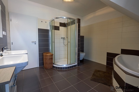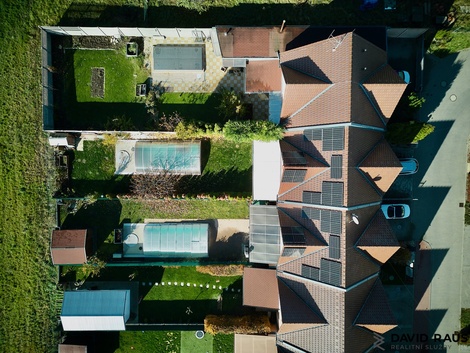 Energetická úspora díky fotovoltaice, relax ve venkovní vířivce nebo v zastřešeném bazénu Vám nabídne rodinný dům o dispozici 4+kk s celkovou užitnou plochou 139 m2 nacházející se v obci Syrovice. Rodinný dům je možno nenáročnou stavební úpravou rozšířit o další místnost v půdním prostoru. Popis dispozice rodinného domu: Dispozice domu je ideální pro trávení společného času, ale nabízí i dostatek soukromí pro všechny členy rodiny. Vstupními dveřmi vcházíme do předsíně s dostatkem místa na úložné prostory a odkládání věcí (4,37 m2). Míjíme vstup, po pravé straně od vstupních dveří, do technické místnosti ( 8,75 m2) a vstup na samostatné WC pod schodištěm. Za mě efektivní řešení, jak využít prázdný prostor pod schodištěm. Následně vcházíme do vzdušného, prostorného obývacího pokoje s jídelnou a kuchyňským koutem (44,41 m2). Nadčasovým prvek obývacího pokoje jsou francouzská okna, která dodávají místnosti dostatek denního světla a zároveň umožňují přístup na vlastní zahradu. V létě si tak můžete ranní kávu vychutnat na čerstvém vzduchu na terase s výhledem do zeleně. Pokud jste snili o vlastním wellnes, zde se Vám Váš se splní. Relaxovat můžete jak ve vířivce na terase nebo v zastřešeném bazéně. Vracíme se zpět do předsíně a po schodišti vystoupáme do patra, kde postupně navštívíme zbývající tři obytné místnosti ( ložnici 11,56 m2, dětský pokoj 11,56 m2 , dětský pokoj 11,48 m2), samostatnou šatnu ( 5,18 m2 ) a koupelnu s rohovou vanou, sprchovým koutem a WC (11,48 m2). Ve střeše je možné vybudovat další pokoj či pracovnu. Povrchy podlah tvoří vinylové podlahy v dekoru dřeva v kombinaci s keramickou dlažbou. Vytápění nemovitosti zajišťuje elektrické podlahového vytápění. Vysokých nákladů za elektřinu se bát nemusíte. Díky fotovoltaické elektrárně je nabízená nemovitost částečně energeticky soběstačná. Líbí se Vám tento dům? Vyhovuje Vašim představám o novém bydlení? Potkejme se v Syrovicích, rád Vám nabízenou nemovitost představím osobně. Základní informace: Lokalita: Syrovice 546 Zděný rodinný dům: 4+kk s terasou a zahradou Celková užitná plocha 139 m2 ( včetně zastřešené terasy) Celková plocha pozemku: 308 m2 Bazén: ANO, se slanou vodou , rozměr 7m x 3m Vířivka: ANO Topení: podlahové Parkování před domem na vlastním pozemku Náklady RD v průměru činí cca 5.500,- Kč/ měsíčně. Nabízím možnost financování.Veškerý právní servis zajištěn.