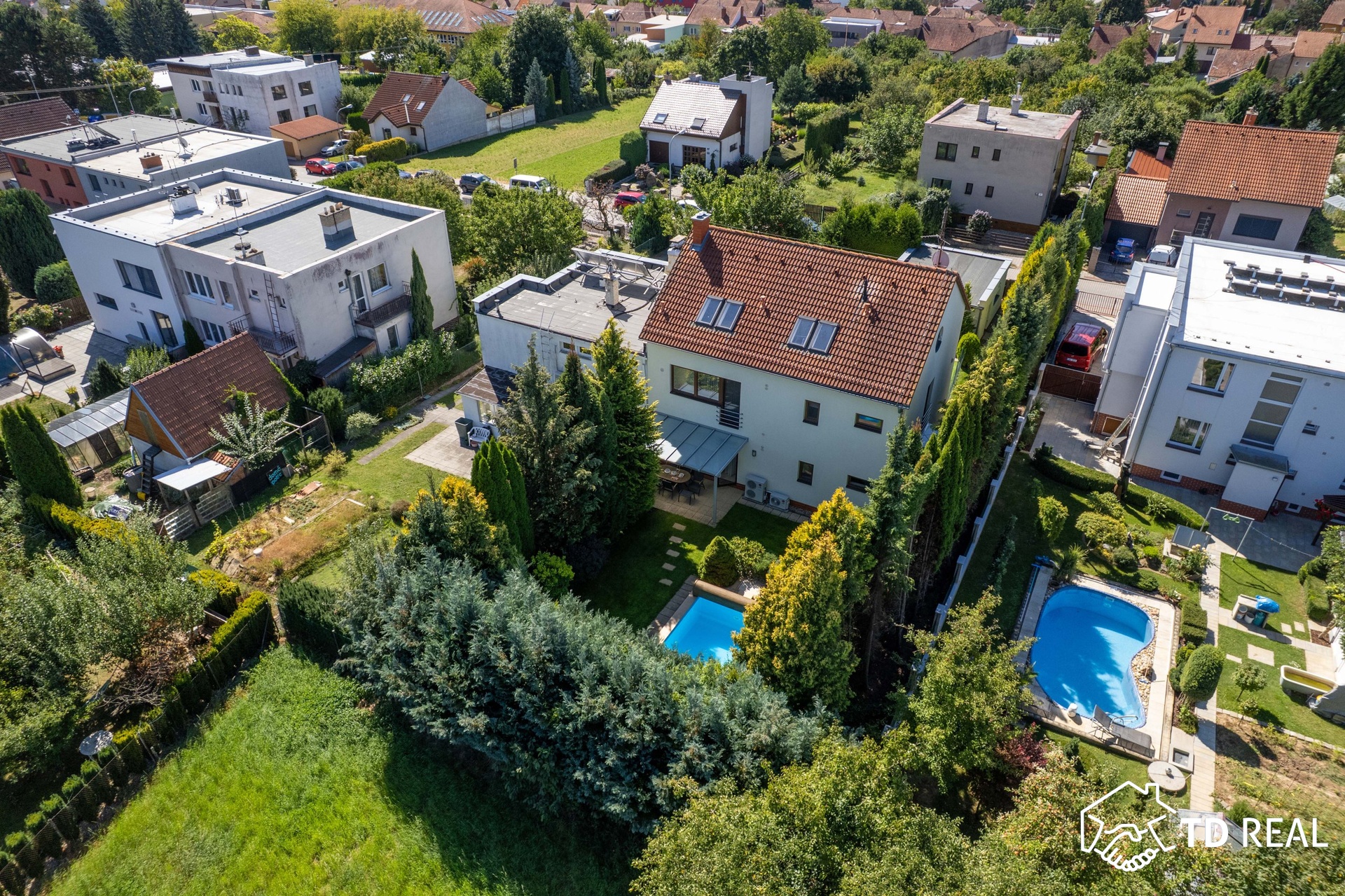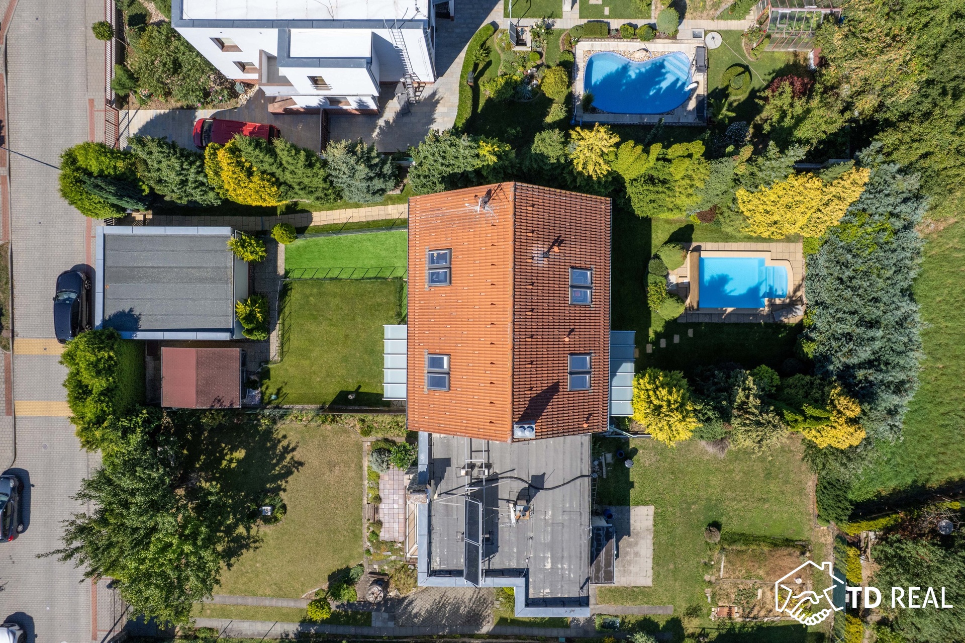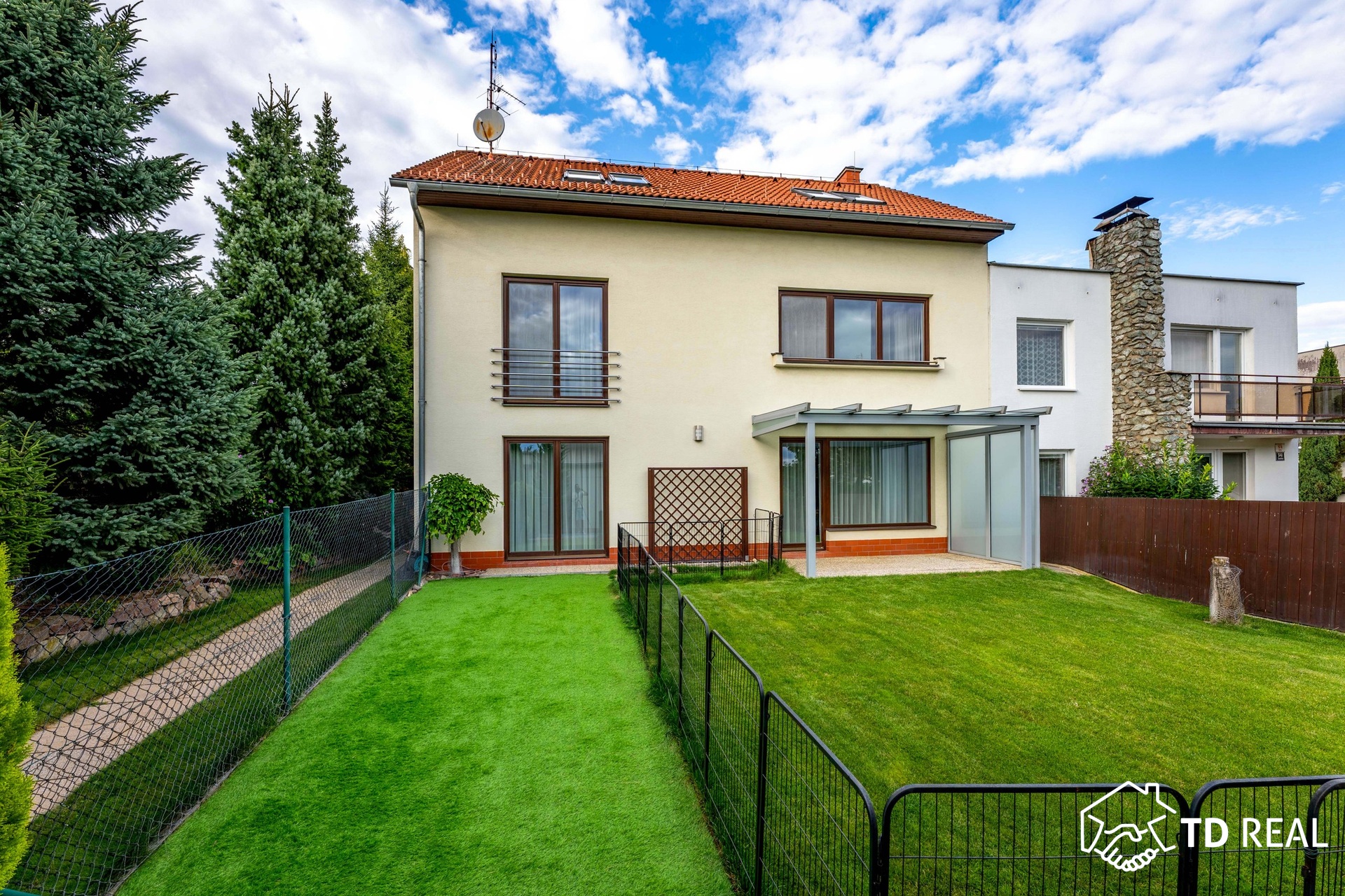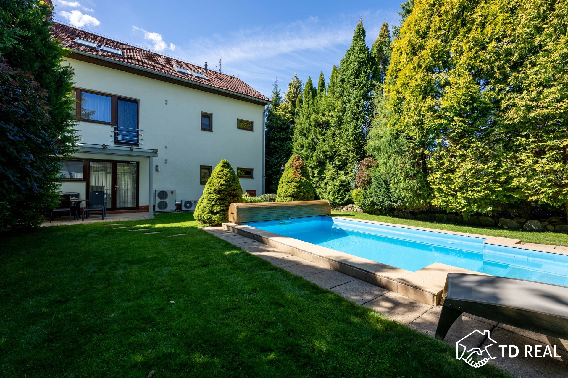 Prodej výjimečného rodinného domu v Brně - Žebětíně. Nabízíme jedinečný rodinný dům o třech nadzemních podlažích, chytře zasazený do pozemku o velikosti 671 m2. Díky své poloze a vzrostlé zeleni poskytuje naprosté soukromí - z ulice je viditelná pouze dvougaráž, samotný dům zůstává skrytý. Dispozice nabízí velkorysý prostor: dvě bytové jednotky a jeden velký open space. 1. NP: ložnice, prostorný obývací pokoj s kuchyňským koutem se vstupem na dvě kryté terasy, koupelna a samostatné WC. 2. NP: pokoj, koupelna s WC a velký obývací prostor propojený s ložnicí orientovanou do zahrady. 3. NP: open space využívaný jako posilovna, třetí koupelna s WC. Za domem se nachází terasa s pergolou, bazén a pečlivě udržovaná zahrada se vzrostlými stromy. Hlavní přednosti nemovitosti: -naprosté soukromí a minimální viditelnost z ulice -velkorysý prostor vhodný pro vícegenerační bydlení či kombinaci bydlení a podnikání -komfortní zázemí - klimatizace, úsporný plynový kotel, bazén, dvougaráž, zahradní domek Tato nemovitost není určena pro každého - osloví ty, kteří hledají absolutní soukromí, dostatek prostoru a exkluzivní bydlení v jedné z nejžádanějších lokalit Brna.