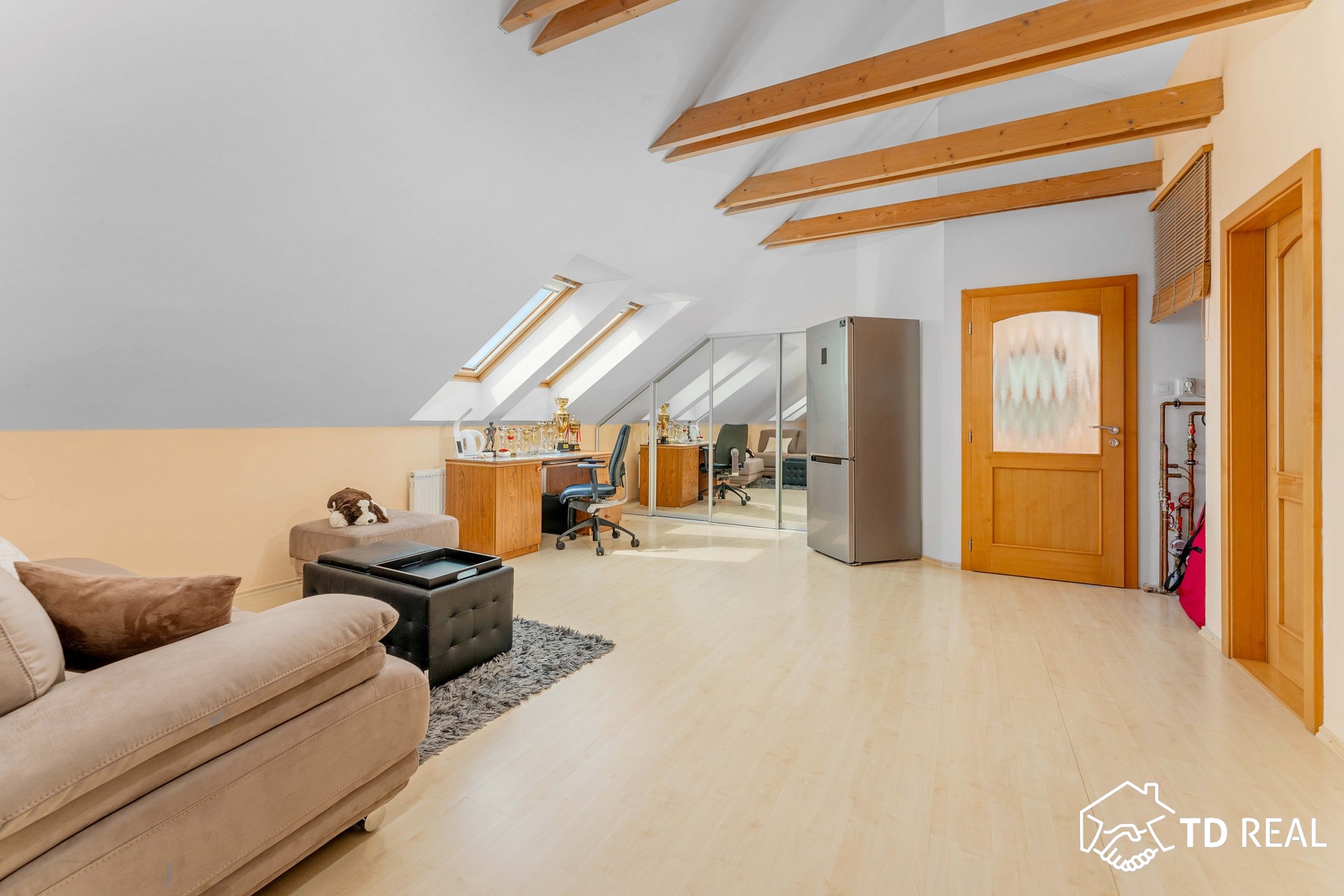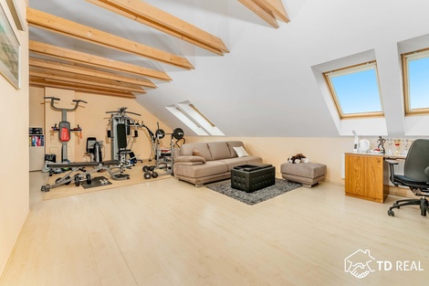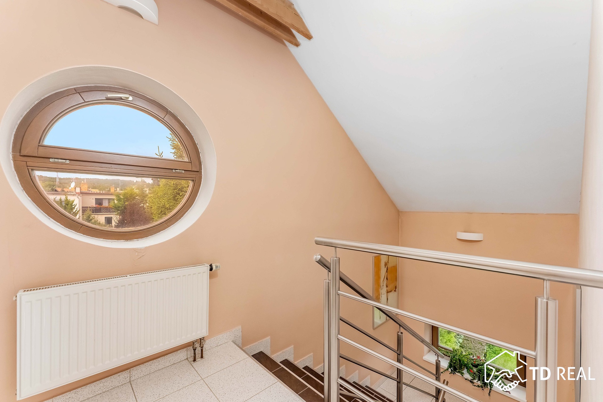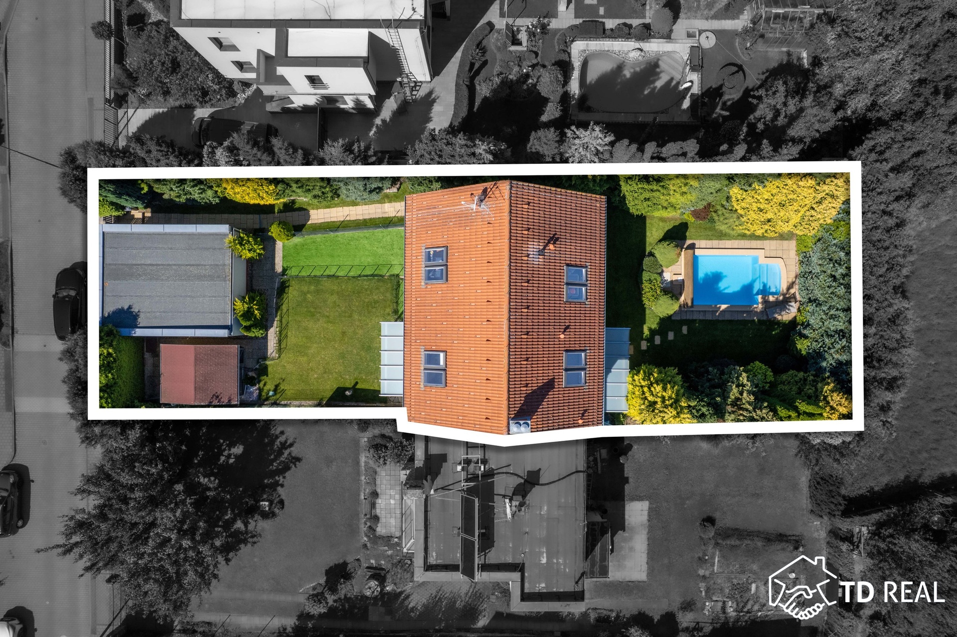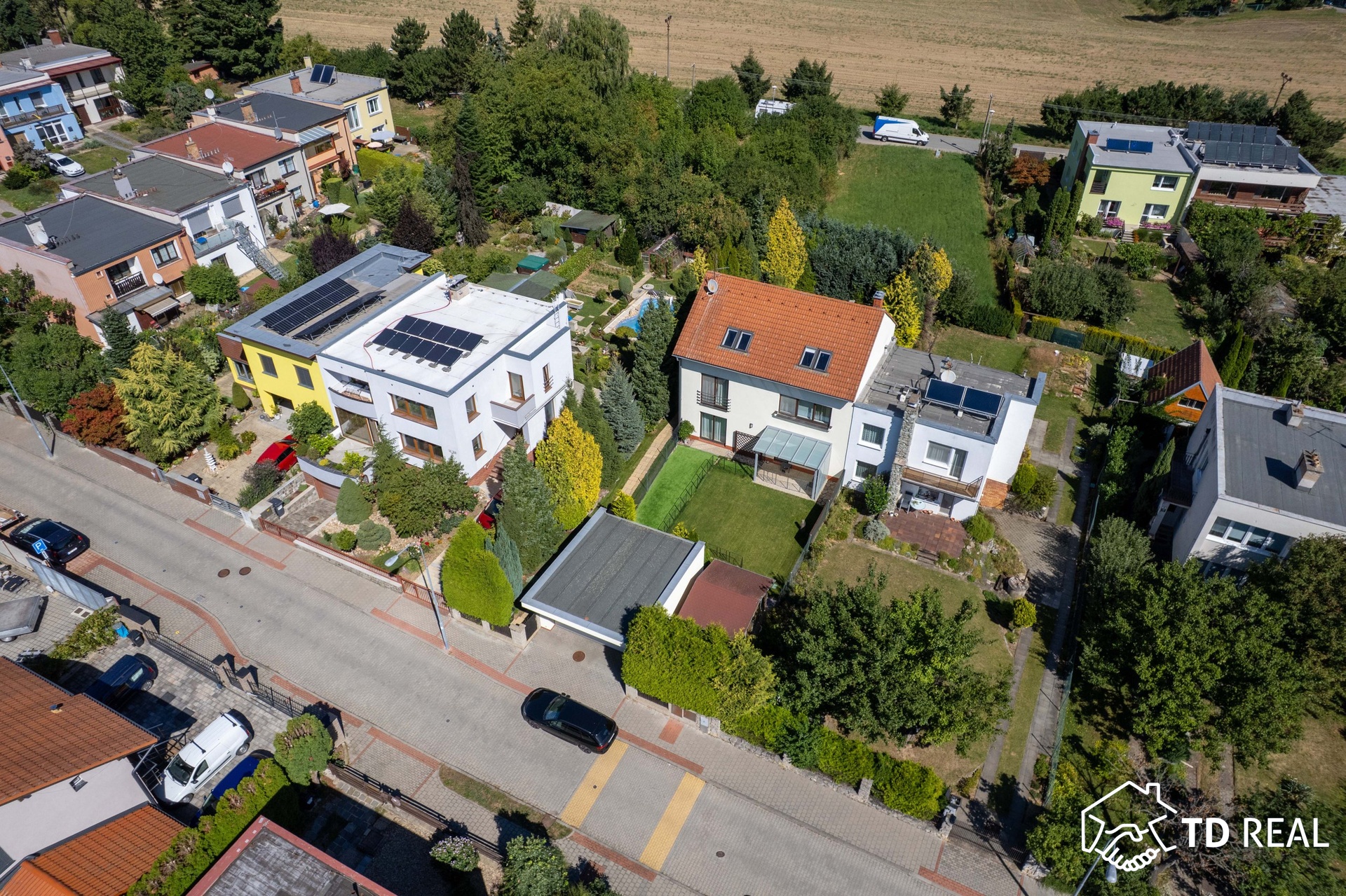 Prodej výjimečného rodinného domu v Brně - Žebětíně. Nabízíme jedinečný rodinný dům o třech nadzemních podlažích, chytře zasazený do pozemku o velikosti 671 m2. Díky své poloze a vzrostlé zeleni poskytuje naprosté soukromí - z ulice je viditelná pouze dvougaráž, samotný dům zůstává skrytý. Dispozice nabízí velkorysý prostor: dvě bytové jednotky a jeden velký open space. 1. NP: ložnice, prostorný obývací pokoj s kuchyňským koutem se vstupem na dvě kryté terasy, koupelna a samostatné WC. 2. NP: pokoj, koupelna s WC a velký obývací prostor propojený s ložnicí orientovanou do zahrady. 3. NP: open space využívaný jako posilovna, třetí koupelna s WC. Za domem se nachází terasa s pergolou, bazén a pečlivě udržovaná zahrada se vzrostlými stromy. Hlavní přednosti nemovitosti: -naprosté soukromí a minimální viditelnost z ulice -velkorysý prostor vhodný pro vícegenerační bydlení či kombinaci bydlení a podnikání -komfortní zázemí - klimatizace, úsporný plynový kotel, bazén, dvougaráž, zahradní domek Tato nemovitost není určena pro každého - osloví ty, kteří hledají absolutní soukromí, dostatek prostoru a exkluzivní bydlení v jedné z nejžádanějších lokalit Brna.