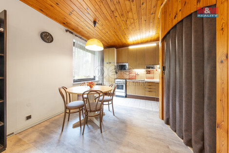 Nabízíme velmi prostorný rodinný dům, který je vhodný k podnikání nebo bydlení i pro tři rodiny (tři byty se samostatnými vchody). Vzhledem k současným cenám bytů je toto vhodná varianta - tři byty plus zahrada, velká garáž a parkovací místa. Zastavěná plocha sestává ze dvou staveb spojených střechou. Jedna stavba je obytná, jsou zde dva byty 4+kk, 4+1 (114 m2 a 117 m2) a půda. Druhá je kolaudovaná jako hospodářský přístřešek: v přízemí je garáž 50 m2 (garáž a velká dílna), patro 85 m2 je připravené pro další prostory (hrubá stavba, byt, kanceláře..) Výhodou je, že každý byt má vchod zvenku zvlášť. Na pozemku jsou tři parkovací místa z toho jedno zastřešené. Zahrada je upravená s odpočinkovou zónou, kde se nachází pergola. Dům má krom veřejného vodovodu i vlastní studnu a dvojí rozvod vody. Topení je řešené také velmi ekonomicky. Financování zajišťujeme. Pro více informací volejte makléři.