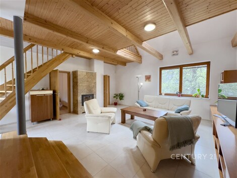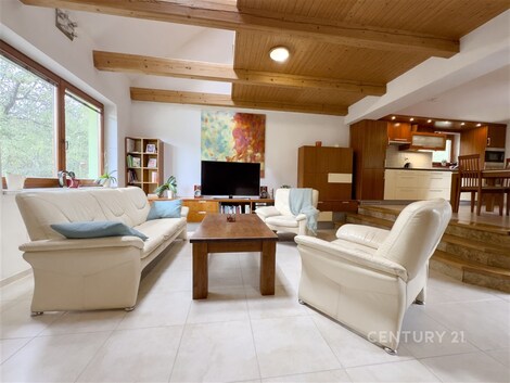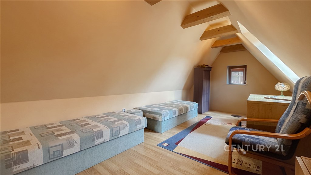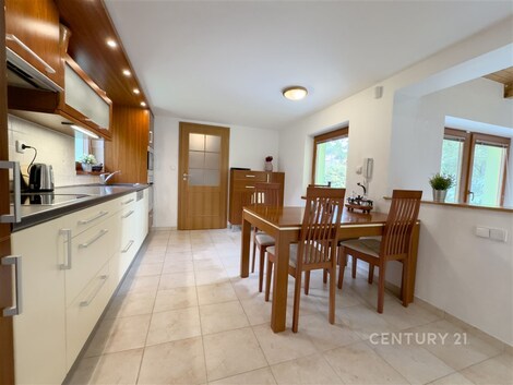 Exkluzivně nabízíme k prodeji rodinný dům v obci Svinošice. Nemovitost postavená v roce 2008 se nachází na parcele o celkové rozloze 483 m2 a nabízí celkovou užitnou plochu 133 m2. Na jihovýchodní straně domu je vydlážděná plocha pro venkovní posezení a dále jej obklopuje udržovaná zahrada o rozloze 345 m2. Tento zděný dům má dvě nadzemní podlaží, k dispozici je velký sklep a další skladovací prostory jsou v zastřešeném parkovacím stání pro dva vozy. Podlahová plocha domu 138 m2 je ideálně rozdělena pro pohodlné bydlení rodiny. Srdcem nemovitosti je otevřený obývací pokoj spojený s kuchyní a jídelnou o velikosti 44 m2 v přízemí domu. Tento prosvětlený a vzdušný prostor však působí mnohem větším dojmem a má přímý východ na venkovní vydlážděnou terasu. Zároveň působí velmi útulně díky použití dřeva a velkému krbu. Dále se v přízemí nachází jedna z ložnic o velikosti 13 m2 s vestavěnou skříní a koupelna o velikosti 4 m2. Místnosti mají bohaté prosklení a okno je i v koupelně a oddělené toaletě. Další dvě ložnice o velikosti 18 a 19 m2 jsou v podkrovní části domu. Dispozici 4kk je možné rozšířit využitím galerie o velikosti 29 m2, kterou je možné pojmout jako prostornou pracovnu. Topení zajišťuje kombinace podlahového vytápění a elektrických přímotopů, pro úspornou a efektivní distribuci tepla po domě. Dům je možné napojit na nově zbudovanou kanalizaci v obecním pozemku před domem. Nemovitost je zabezpečena alarmem. Vzhledem o okolní lesnaté krajině je lokalita zejména vhodná pro cyklisty a milovníky procházek. Pokud hledáte klidné a pohodlné bydlení s nadčasovým pojetím a přitom chcete zůstat v dosahu městských vymožeností, tento dům v Svinošicích by mohl být vaším novým domovem. Pro více informací volejte makléře.
