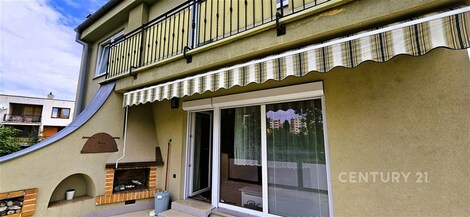Ve výhradním zastoupení majitele nabízíme velice příjemné bydlení v rodinném domě, v klidné části města Znojma. Celková plocha je 689 m2, z toho zastavěná plocha 143 m2 a zahrada 546 m2. Dispozičně je dům řešen jako 4+kk, kde ve zvýšeném přízemí je velký otevřený prostor, který je rozdělený na obývací pokoj s krbem, opticky oddělenou jídelnu a na ni navazuje kuchyň. Dále je zde vstupní chodba, hala se schodištěm, koupelna se sprchovým koutem a WC. V patře je po výstupu po schodišti hala se saunou a se vstupy do jednotlivých pokojů. Jsou zde dva velké pokoje (jeden se vstupem na balkon), dále jeden menší (slouží jako šatna), velká koupelna s vanou a WC. Z obývacího pokoje se vstupuje na prostornou terasu s krbem a se sluneční markýzou. Prosklená část obývacího pokoje je opatřena bezpečnostní roletou. Po schodech dolů z terasy je přístupná zahrada s okrasnými keři, stromy a je zde také několik fíkovníků. Dům je podsklepený, s velkou garáží a je vytápěn plynovým kotlem s radiátory v místnostech. Dům je umístěn v klidné okrajové části města Znojma s občanskou vybaveností v bezprostředním okolí. Průkaz energetické náročnosti budovy se vypracovává, proto uvádíme energetickou třídu G.