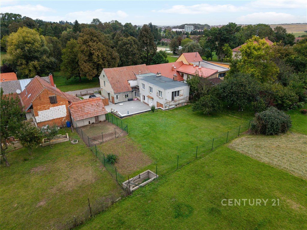 V zastoupení majitele nabízíme k prodeji dvougenerační rodinný dům v Moravských Prusech, okrese Vyškov. Polořadový rodinný dům je umístěn v klidné ulici, s vjezdem na vlastní pozemek. V přízemí je bytová jednotka 4+1, po částečné rekonstrukci, jednotlivé místnosti mají samostatné vstupy, z kuchyně vedou dveře do koupelny s vanou. Dále je zde umístěna technická místnost užívaná jako prádelna, s toaletou. Na původní dům, vystavený ze smíšeného zdiva navazuje do L dvorní přístavba z roku 1986. V přízemí je umístěna kotelna, prádelna, schodiště do bytu 2+1 ve 2. NP, garáž a vstup do sklepa. V mezipatře je umístěna toaleta. Ze schodištního prostoru je nalevo umístěn obývací pokoj s balkonem, napravo je vstup do kuchyně s přístupem do zrekonstruované koupelny a na toaletu. Na kuchyni navazuje ložnice s terasou. Další dva možné pokoje s okny do ulice (2. NP původního domu), které jsou součástí projektu, nebyly realizovány. V domě proběhly částečné rekonstrukce, vydlážděný dvůr, částečně nová podlaha, koupelna s toaletou v přístavbě, nový plot, výměna oken a další úpravy. Dokončení čeká na nové majitele, kteří mohou využít velké prostory dle svých preferencí a potřeb. Na dvoře je umístěna studna s rozvodem užitkové vody do obou bytových jednotek, v přední části pozemku stojí hospodářská stavba. Zahrada navazující na dvůr je nad úrovní terénu, je rovinatá, zatravněná a udržovaná. Vytápění domu je ústřední, kotlem na pevná paliva, nebo plynovým kotlem pro obě domácnosti. Ohřev vody zajišťují pro každou domácnost samostatné elektrické bojlery. Moravské Prusy mají výbornou polohu vůči Vyškovu (6 km), kam jezdí pravidelná autobusová linka. Cesta do Brna vzdáleného 40km vám díky blízkému sjezdu na dálnici D1 vezme půl hodiny. Obec Moravské Prusy má základní občanské vybavení, MŠ, ZŠ do 4. třídy, restauraci, poštu. Ostatní občanskou vybavenost máte do deseti minut autem do Vyškova. V okolí obce vedou turistické a cyklistické trasy jak na Vyškovsko směrem na Drahanskou vysočinu, tak jižně do lesnatého pásma Litenčické pahorkatiny. Pokud vás nabídka zaujala, zvažujete dvougenerační bydlení, nebo hledáte zázemí pro bydlení s podnikáním, neváhejte se na mě obrátit a využít této příležitosti. Budu se na vás těšit.