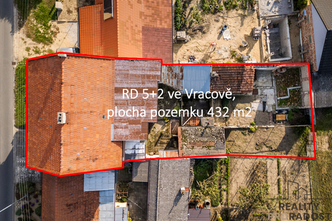 Nabízím Vám k prodeji prostorný rodinný dům 5+2, který má ideální základ pro rekonstrukci podle vlastních představ, nachází se v okrajové části žádané lokality obce Vracov, pouhých 9 km od Kyjova. Dům z obou stran přiléhá k sousedním domům, je prostorný, má dvě nadzemní podlaží, je podsklepený, připojený na všechny IS ( elektřina, plyn, kanalizace, obecní vodovod) + studna, celková výměra pozemku je 432 m2, šířka cca 12 m a stáří domu je 60 let. V suterénu jsou běžné sklepní prostory, v I. NP jsou dva pokoje, kuchyň, spíž, koupelna, WC a prostorná chodba se schodištěm. V pravo je vstupní průjezd do dvora. V II. NP jsou tři pokoje, kuchyň, koupelna, WC, chodba a vstup na půdu. Za obytnou částí jsou vedlejší stavby ( hospodářské stavení), podsklepená garáž a oplocený dvůr. Pokud Vás nabídka zaujala, domluvte si termín prohlídky.