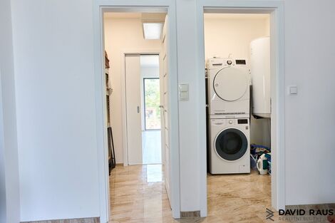 Nabízím k prodeji moderní rodinný dům o dispozici 4+kk se zahradou a sadem v obci Tučapy. Toužíte po útulném domově s moderním zázemím a velkou zahradou? Tento dům v Tučapech splní Vaše očekávání a navíc nabídne komfortní parkování pro celou rodinu i návštěvy - a to přímo na pozemku. Dispozice domu: Vstup do domu je řešen přes prostornou halu (9,24 m), odkud je přístup do garáže - průjezdu ( 37,98 m) , komory (2,91 m) a technické místnosti (2,06 m). Dominantou je světlý obývací pokoj (33,08 m) s moderními krbovými kamny Leda Colona, který je propojen s kuchyňským koutem (14,11 m) a vstupem na terasu. Z obývací části vede chodba (3,71 m) do pracovny ( 18,54 m) , dětského pokoje ( 11,16 m), koupelny se sprchovým koutem a WC (6,73 m) a dále do ložnice (13,19 m) se šatnou (3,40 m) a vlastní koupelnou s velkou vanou pro dva, sprchovým koutem a WC (8,86 m) tato část funguje jako soukromá wellness zóna. Ložnice i dětský pokoj mají francouzská okna se vstupem přímo na zahradu. Interiér je laděn do přírodních, světlých tónů vinylové podlahy v béžovo-šedé barvě, bílé stěny, designové koupelny a tapeta s kapradím v ložnici vytváří moderní a útulnou atmosféru. Technické vybavení domu: V domě je instalován elektrokotel značky Protherm s výkonem 9 kW, který zajišťuje efektivní vytápění celého domu prostřednictvím podlahového topení. Ohřev teplé vody je zajištěn elektrickým bojlerem Tesy o objemu 142 litrů. Pro praní a sušení prádla slouží pračka a sušička, které jsou umístěné v technické místnosti spolu s rozvody vody a elektřiny. V obývacím pokoji je klimatizace, jenž poskytuje komfortní teplotu během letních měsíců. Dům je připravený také na instalaci kamerového systému, čímž umožňuje snadné zajištění bezpečnosti. Krbová kamna značky Leda Colona v obývacím pokoji vytvářejí útulnou atmosféru a zároveň doplňují moderní design interiéru. Součástí nemovitosti je prostorná zahrada se vzrostlými stromy a sadem, která nabízí naprosté soukromí i spoustu možností k odpočinku a zábavě. Do sadu se vstupuje kovovou brankou přímo ze zahrady přes dřevěný mostek už samotný přechod působí kouzelně a navozuje atmosféru klidu. V zadní části zahrady je připravené posezení s grilem, podium pro společenská setkání a hřiště, které poskytuje dostatek místa nejen pro děti, ale i pro sportovní vyžití, třeba fotbal. Dva vzrostlé ořechy zde vytvářejí přirozený stín a mezi nimi je zavěšena houpací síť pro odpočinek. Celkový dojem doplňuje travnatá plocha a útulná zákoutí, kde si každý člen rodiny najde své místo. Tato zahrada se sadem působí jako vlastní oáza klidu ideální pro rodinný život, zahradní slavnosti i relaxaci v soukromí přírody přímo za domem. Tento dům v Tučapech nabízí ideální spojení klidného rodinného bydlení, moderního vybavení a velké zahrady s množstvím možností k odpočinku. U exteriérových fotografií byla použita virtuální vizualizace zahrady. Základní informace: Lokalita: Tučapy u Vyškova č.p 248 Dispozice domu: 4+kk Zastavěná plocha : 265 m Celková výměra pozemku : 3476 m Klimatizace - obývací pokoj Elektrokotel a kamna Leda Colona Příprava na kamerový systém Měsíční náklady na spotřebu energií jsou do cca 4.000,- Kč. Více informací u makléře na tel. +420 777 593 888. Nabízím možnost zajištění financování. Veškerý právní servis zajištěn. <a href="https://www.eurobydleni.cz/domy/rodinny-dum/brno-venkov/obec-syrovice/prodej/"><strong>Prodej rodinného domu Syrovice</strong></a>