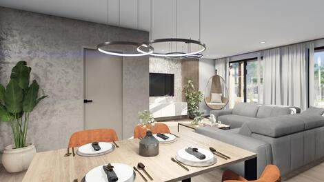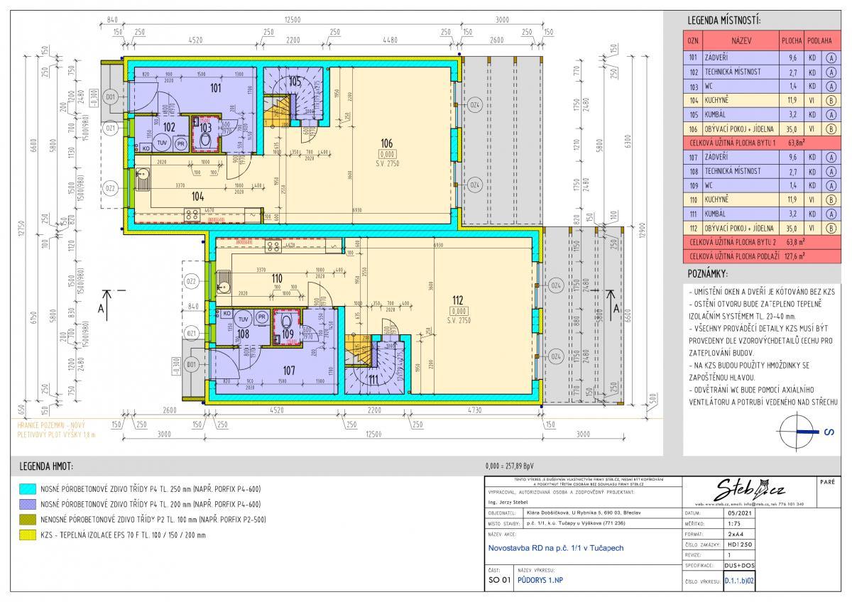 Cihlová novostavba rodinného domu s dispozicí 4+kk o užitné ploše 125 m s parkovacím stáním, terasou a výbornou dostupností do Vyškova. Dvoupodlažní rodinný dům v obci Tučapy je ve fázi dokončení hrubé výstavby, novému majiteli stále nabízí možnost upravit finální prvky dle jeho představ a přání. Cena je uvedena za kompletní dokončení nemovitosti - bez kuchyňské linky. V zádveří domu se nachází technická místnost a samostatná toaleta. Kuchyňský kout (11,9 m) plynule navazuje na hlavní obývací místnost s kuchyňským koutem (35 m). Dvě francouzská okna poskytují vstup z místnosti na terasu (20 m), která se nachází na severní straně za domem. Druhé nadzemní podlaží domu poskytuje dva pokoje o rozloze (13,7 m) a (12,8 m), které jsou orientované na jih. Koupelna v patře bude s rohovou vanou i sprchovým koutem, toaleta je součástí koupelny (8,6 m). Naproti koupelně se nachází samostatná šatna o velikosti 3,2 m. Poslední místnost v podlaží je ložnice s šatnou (17,6 m), která je orientovaná na sever. Dům je osazen plastovými eurookny s izolačními trojskly a rámem v dekoru antracit. Vytápí se tepelným čerpadlem v kombinaci s podlahovým vytápěním. Obec Tučapy se nachází 9 km od Vyškova. Motorovým vozidlem je Brno po dálnici dostupné do 25 min. Při pohledu z ulice jedná o dům vpravo. Parcelní číslo 1/9 k. ú Tučapy u Vyškova