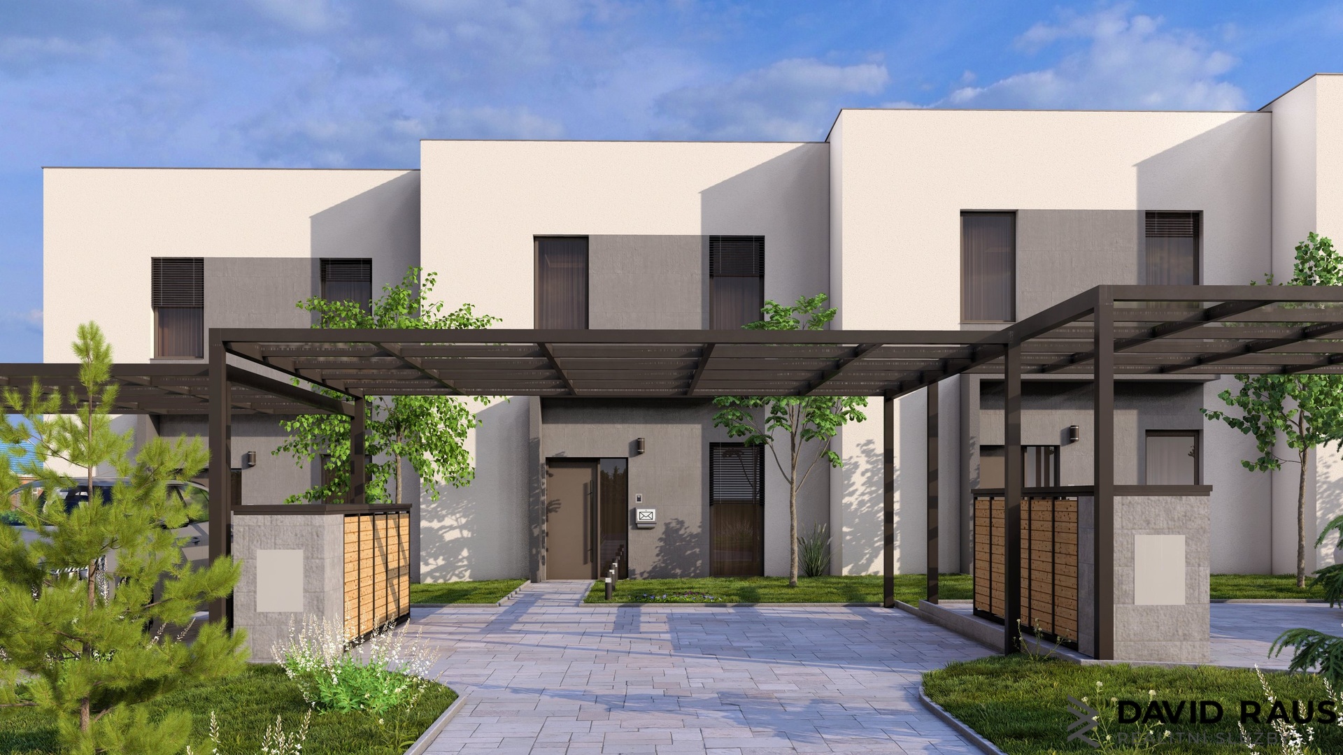 Nabízím k prodeji rodinný dům (č.2) o dispozici 5+kk, se zastřešeným parkovacím stáním na vlastním pozemku (283 m2), ve městě Rajhrad. Rodinný dům o podlahové ploše 175 m2 je ve fázi výstavby a je jeden ze čtyř nízkoenergetických rodinných domů na ulici Syrovická, v Rajhradě. Energetické náročnost domu je klasifikována do třídy A - mimořádně úsporné. VÝSTAVBA ZAHÁJENA 9/2025 Dispozice domu: 1.NP Vstupní dveře vedou do zádveří ( 4,5 m2), vedoucí do chodby (2,8 m2) s přístupem na samostatné WC ( 1,6 m2), do technické místnosti ( 4,9 m2), pracovny (11,8m2), skladu (3,0 m2)a otevřeného obývacího pokoje s kuchyňským koutem ( 48,5 m2). Ústředním prvkem propojující jednotlivá patra domu je schodiště z obývacího pokoje. 2.NP Do druhého patra domu vystoupáme po schodišti na chodbu ( 6,6 m2), kde se nachází tři samostatné pokoje, které mohou sloužit jako samostatné dva dětské pokoje ( 13,8m2, 15,5m2) a ložnice (17,5m2) ze které vedou dveře do šatny (6,8m2). K dispozici na patře je prostorná koupelna ( 8,0 m2) a samostatné WC ( 1,7m2). Základní informace : - výstavba RD na klíč (5+kk ) - podlahová plocha domu 175 m2 - užitná plocha domu 147 m2 - výměra pozemku 283 m2 - fotovoltaická elektrárna - podlahové teplovodní topení - tepelné čerpadlo - zastřešené parkovací stání - perfektní občanská vybavenost a dostupnost do města Brna - atraktivní lokalita pro bydlení - stavba zahájena 9/2025 Veškerý právní servis zajištěn. Nabízím možnost financování. Pro více informací kontaktujte makléře.