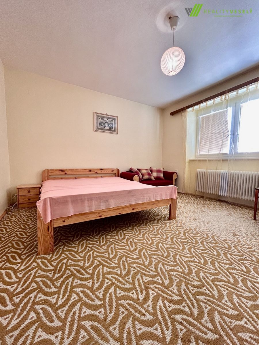Nabízíme k prodeji dvoupodlažní podsklepený zděný rodinný dům s plochou střechou, v obci Hroznová Lhota, kolaudovaný v roce 1973, obdélníkového tvaru zástavby. Stojí v zástavbě rodinných domů jako samostatný neřadový rohový dům. Přístupný po místní zpevněné komunikaci, připojen na veškeré sítě a kanalizaci přes septik, vytápění ústředním plynovým kotlem, teplá voda z elektrického bojleru. Ve dvoře hospodářská stavba s dvěma garážemi, zahrada s ovocnými stromy, vlastní studna (momentálně nepoužívaná). Dispozičně PP sklep, kotelna, prádelna, dílna, dvě místnosti. 1.NP tři pokoje, jídelna s kuchyňským koutem, koupelna, WC 2.NP tři pokoje, jídelna s kuchyňským koutem, nedodělaná koupelna, WC. Zastavěná plocha: 119m2, podlahová plocha 152m2, celková plocha pozemku 803m2. Dům je v původním udržovaném stavu. V roce 2016 nová plastová okna, 2023 nová střešní krytina a zateplení střechy, úprava okapů a střechy pro budoucí zateplení fasády. Dokončením koupelny v 2NP by vznikly dva samostatné byty 3+1, možné využívat jak k vlastnímu bydlení, tak pronájmu. Hroznová Lhota je obec v okrese Hodonín v Jihomoravském kraji. Leží na severním břehu říčky Veličky asi pět kilometrů jižně od Veselí nad Moravou, v dolňácké oblasti Moravského Slovácka na úpatí Bílých Karpat, v obci zdravotní středisko, mateřská a základní škola. Pro více informací a prohlídky volejte makléři, rádi Vám pomůžeme s financováním této nemovitosti