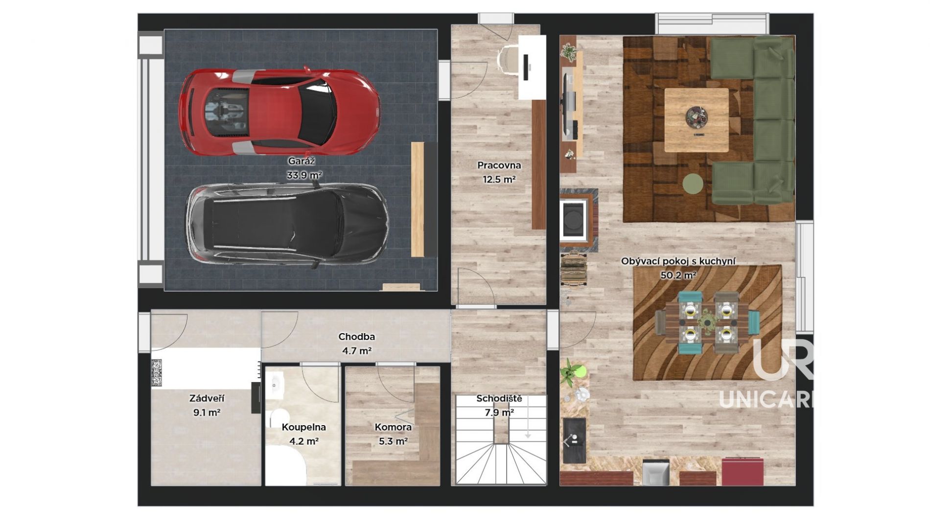 Rádi by jste bydleli ve vinařské oblasti v blízkosti vinic jižní Moravy a přitom se skvělou dostupností do Brna? Exkluzivně nabízíme ke koupi atraktivní novostavbu rodinného domu s pozemkem 610 m navržený v jednoduchém architektonicky čistém stylu. Stavba rodinného domu se nachází v Medlově, okres Brno-venkov. Celková plocha pozemku 610 m, zastavěná plocha 154 m, celková užitná plocha 259 m vč. garáže a terasy. Dům je dvoupodlažní, navržen jako velmi prostorný 5+kk s dvougaráží, s velkorysými úložnými prostorami a rozsáhlým technickým zázemím, prodává se ve fázi před dokončením. Jedná se o zděný dům se sedlovou střechou s půdním prostorem. Dispozice 1.podlaží: zádveří 9,15 m se vstupem do garáže 33,9 m, chodba 4,88 m, pracovna 12,37 m, velkoryse řešený obývací pokoj s kuchyní o celkové ploše 50,64 m, z kterého lze vyjít francouzským oknem na zahradu. Myšleno je zde i na možnost pořízení krbu s vyvedením krbového komínu. Pro maximální pohodlí je součástí přízemí i koupelna s toaletou 4,07 m a nepostradatelná komora 5,12 m (technická místnost). V poschodí je umístěná prostorná koupelna 9,45m připravená na vanu se sprchovým koutem, samostatná toaleta s bidetem 2,23 m. Z obytné haly 21,66 m je vstup do tří neprůchozích pokojů 18,85 m, 14,74m a 13,96 m, nechybí zde ani potřebná šatna 2,56 m. Celý dům je důkladně tepelně zaizolován, což garantuje minimální spotřebu energie pro vytápění i chlazení domu. Velkou výhodou je dotvořit si bydlení přesně dle svých představ a své volby. Stavba obsahuje garážová el. vrata, plastová okna, sádrokartonový strop se zateplením, rozvedená a přichystaná elektroinstalace na podlahové vytápění, elektrické venkovní rolety, tepelné čerpadlo, bezpečnostní systém, kamery, internet, vodoinstalace a odpady. Příprava pro vzduchotechniku v kuchyni a koupelně (systém odsávání vlhkosti a páry) . Střecha je konstruována na instalaci střešních panelů. Příjezd k domu vede z veřejné dlážděné komunikace. Městys Medlov je vzdálen od Brna 25 km, nachází se zde ZŠ 1.-5. ročník a MŠ, obchod s potravin, hřiště se zázemím pro fotbal, nohejbal, knihovnu s veřejným internetem a různé společenské organizace. Pokud vás nabídka zaujala, neváhejte mne kontaktovat, ráda vám dům včetně projektové dokumentace a rozepsaného rozpočtu k dokončení stavby představím. <a href="https://www.eurobydleni.cz/domy/cinzovni-domy/kladno/obec-kladno/prodej/"><strong>Prodej činžovního domu Kladno</strong></a>