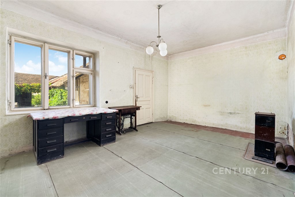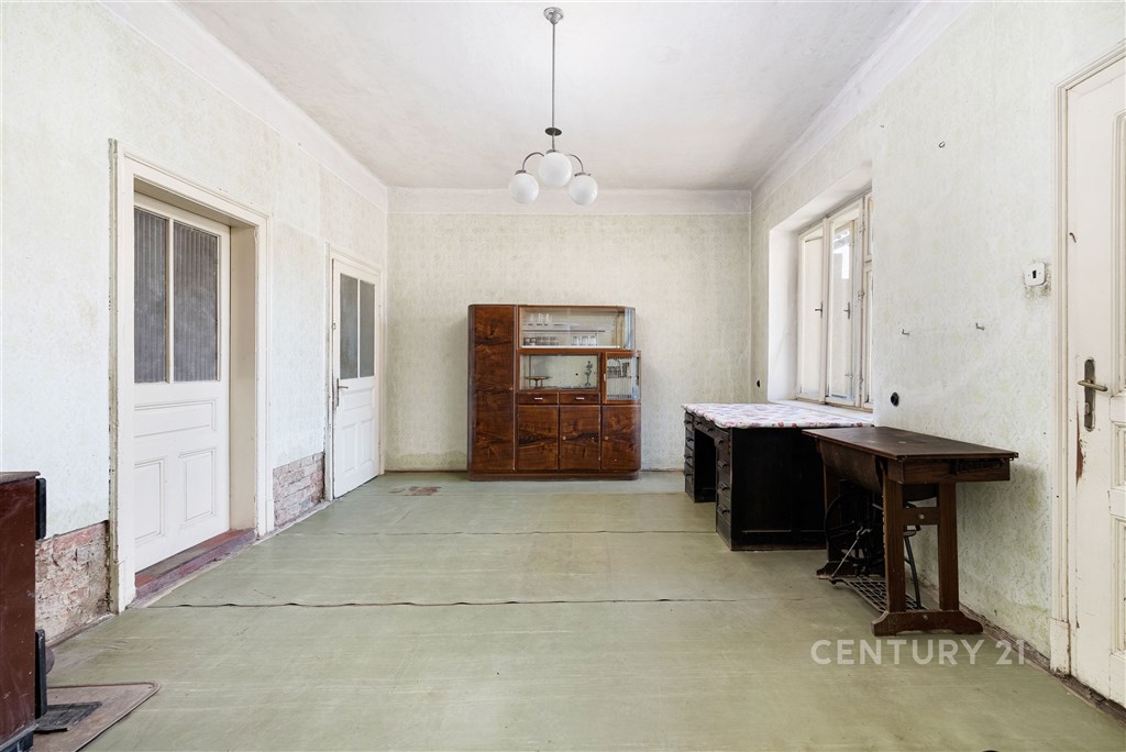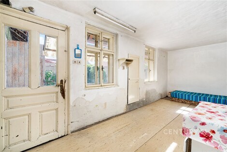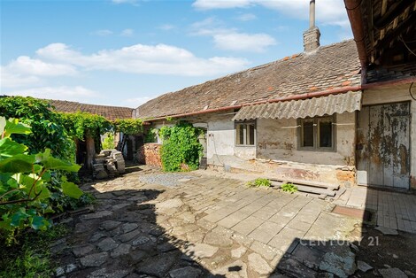 Dostatečná uliční šíře, zahrada se soukromím a možnost parkování na vlastním pozemku… To jsou základní parametry právě tohoto řadového rodinnému domu s dispozicí 2+1, který se nachází na ulici Ponětovská v obci Prace. Podlahová plocha domu činí přibližně 58 m2, přičemž na hlavní stavbu navazují hospodářské přístavky o ploše cca 22,6 m2 a otevřená stodola s výměrou 33,5 m2. Hospodářské přístavky jsou částečně podsklepené. Celková plocha pozemku činí 482 m2. Dům je svým stavem určen ke generální rekonstrukci nebo demolici. Dle současného územního plánu lze u nové výstavby počítat s jedním nadzemním podlažím a obytným podkrovím. Dále je potřeba počítat se sedlovou střechou. Minimální poměr zeleně na pozemku musí činit 40 %. Současná konstrukce domu je ze smíšeného zdiva a není zateplena. Základy jsou smíšené kamenné bez hydroizolací. Okna jsou původní - dřevěná kastlová. Na domě je v uliční části sedlová střecha a ve dvorní části pak pultová. Do domu je zavedena elektřina a je zde také zbudovaná přípojka k plynu (aktuálně odpojeno). Vodovodní a kanalizační řád je doveden do průjezdu domu. Přípojky do domu nejsou vybudovány. Na pozemku je dále studna na užitkovou vodu. Dispozice domu se skládá ze vstupní chodby a tří pokojů. V současném dispozičním řešení není koupelna ani WC. Jak již bylo zmíněno v úvodu, hlavními přednostmi nemovitosti je zejména uliční šíře, která Vám umožní jednak parkovat více vozidel přímo na pozemku, ale zajistí také lepší obslužnost zahrady. Další devízou je bezesporu prostorná zahrada s dostatkem soukromí, na kterou se Vám bez větší námahy vejde i bazén a zbude dostatek místa pro drobné zahradničení. Pokud tedy právě hledáte nemovitost, která má zajímavý pozemek, dobrou uliční šíři a nebojíte se pustit do větší rekonstrukce či výstavby, pak by pro Vás tato možnost mohla být tou pravou. Nemovitost je k dispozici ihned, prohlídky jsou možné po předchozí telefonické dohodě.
