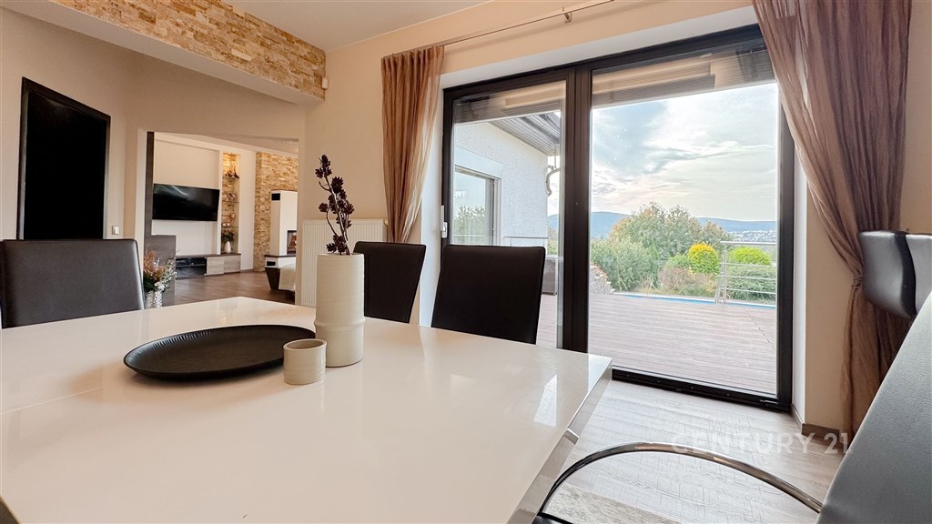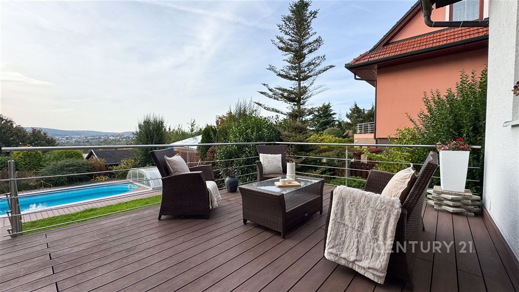 Rodinný dům s duší a výjimečným výhledem - klid, prostor a pohodlí u Brněnské přehrady. Hledáte místo, kde se snoubí luxus, soukromí a pocit domova? Tento jedinečný rodinný dům v tiché, slepé ulici nedaleko Brněnské přehrady nabízí vše, o čem jste kdy snili. Místo, kde vás ráno probudí zpěv ptáků, odpoledne si vychutnáte kávu na terase s dechberoucím výhledem a večer zakončíte sklenkou vína ve vinném sklípku či u praskajícího krbu. Dům o třech podlažích, zkolaudovaný v roce 2005 a kompletně zrekonstruovaný v roce 2016, nabízí ideální propojení elegance, kvality a funkčnosti. Najdete zde 6 komfortních ložnic, 3 koupelny, moderní kuchyni s jídelnou, prostorný obývací pokoj s krbem, pracovnu s herním koutem (stolní tenis, kulečník), šatnu, prádelnu, dvě skladovací místnosti, posilovnu a stylový vinný sklep. Každý kout domu byl navržen s důrazem na detail, praktičnost a příjemnou atmosféru. O teplo domova se stará kondenzační plynový kotel Geminox doplněný o elektrokotel, podlahové vytápění v koupelnách a dva krby, které dodávají interiéru útulnost a charakter. V létě oceníte tři klimatizační jednotky Mitsubishi, které jsou pravidelně servisovány. Samozřejmostí je moderní zabezpečovací systém Jablotron a bezpečnostní čidlo CO₂, které zajišťují váš klid a bezpečí. Dům se nachází v klidné slepé ulici, kam zajíždějí pouze rezidenti - ideální místo pro rodinu s dětmi nebo pro ty, kteří hledají nerušené soukromí. Na udržované zahradě najdete zastřešený venkovní bazén se sprchou, ohniště s posezením a dostatek prostoru pro odpočinek i zábavu. Garáž pro dva vozy je vybavena moderním vestavným úložným systémem. Nemovitost je plně vybavena vestavěným i volně stojícím nábytkem, takže se můžete okamžitě nastěhovat a začít si užívat nový domov bez dalších starostí. Vše je pečlivě udržované, v perfektním technickém stavu a připravené poskytnout novým majitelům maximální komfort. Brněnská přehrada, krásná příroda, cyklostezky i možnosti sportovního vyžití jsou doslova na dosah ruky. Přesto zůstává dům v těsné blízkosti města - centrum Brna je vzdáleno jen pár minut jízdy a autobusová zastávka se nachází 100 m od domu. Tato kombinace klidu, soukromí a výborné dostupnosti dělá z této nemovitosti mimořádně atraktivní místo pro život.
