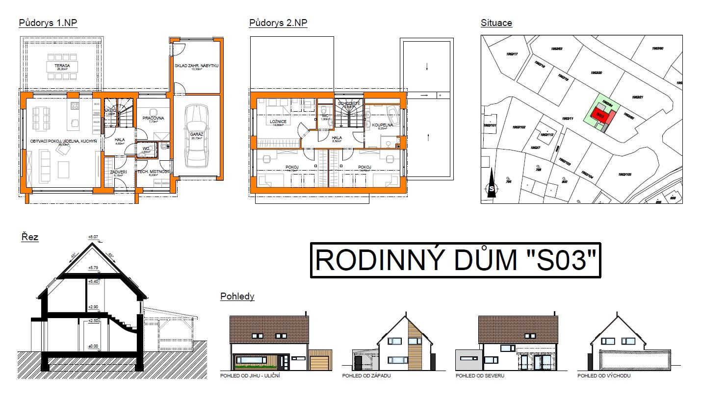 Dovolujeme si vám nabídnout zprostředkování prodej dokončené novostavby rodinného domu, která byla postavena ve druhé etapě developerského projektu v lokalitě Pod Skalkou v Ochozu u Brna. Jedná se o dokončený, zkolaudovaný jednopodlažní dům s obytným podkrovím (označení S03) s navazující terasou a zahradou. Dům je dispozičně řešen jako 5+kk s garáží a skladem (podlahová plocha 158m2), zastavěná plocha domem je 125 m2, okolní pozemek - zahrada 306m2. Konstrukční řešení: železobetonová zákl. deska, nosná konstrukce a dělící příčky z keramických cihelných bloků, stropní konstrukce ze systému Heluz Miako, dřevěný krov zateplený kvalitní tepelnou izolací, střešní krytina z pálené tašky, na terase betonová dlažba, ohřev TUV a vytápění pomocí podlahového topení a deskových radiátorů zajišťuje plynový kondenzační kotel. 1.NP: obývací pokoj s kuchyňským koutem 36 m2 se vstupem na terasu, pracovna 8m2, komora, WC, chodba se zádveřím a schodištěm, technická místnost se vstupem do garáže s navazujícím skladem 13m2. 2.NP: 3x pokoj (14m2) , koupelna, samostatné WC, půdní prostor přístupný po sklápěcích kovových schodech je možno využít pro uložení věcí. Z obývacího pokoje je přístupná dlážděná terasa s opěrnou zídkou na kterou navazuje zahrada. Uliční fronta má JZ orientaci. V lokalitě Pod Skalkou jsou v nabídce RK k prodeji poslední dva rodinné domy S02 a S03 a dále také novostavby vila domů. Obec Ochoz u Brna leží na okraji CHKO Moravský kras v těsné blízkosti lesů, ve vzdálenosti 7 km od hranice městské části Brno - Líšeň. Občanská vybavenost: Česká pošta - pobočka Ochoz u Brna, praktický lékař pro dospělé, ZŠ a MŠ v Ochozu u Brna, Lesní mateřská škola LESINKA, Restaurace Na kovárně, pension. Dostupnost IDS: autobus 201 - Židenice nádraží, Jedovnice; autobus č. 210 - Hostěnice, Bílovice nad Svitavou (žel. stanice). <a href="https://www.eurobydleni.cz/byty/2_1/praha-6/obec-repy/prodej/"><strong>Prodej bytu 2+1 Praha 6, Řepy</strong></a>