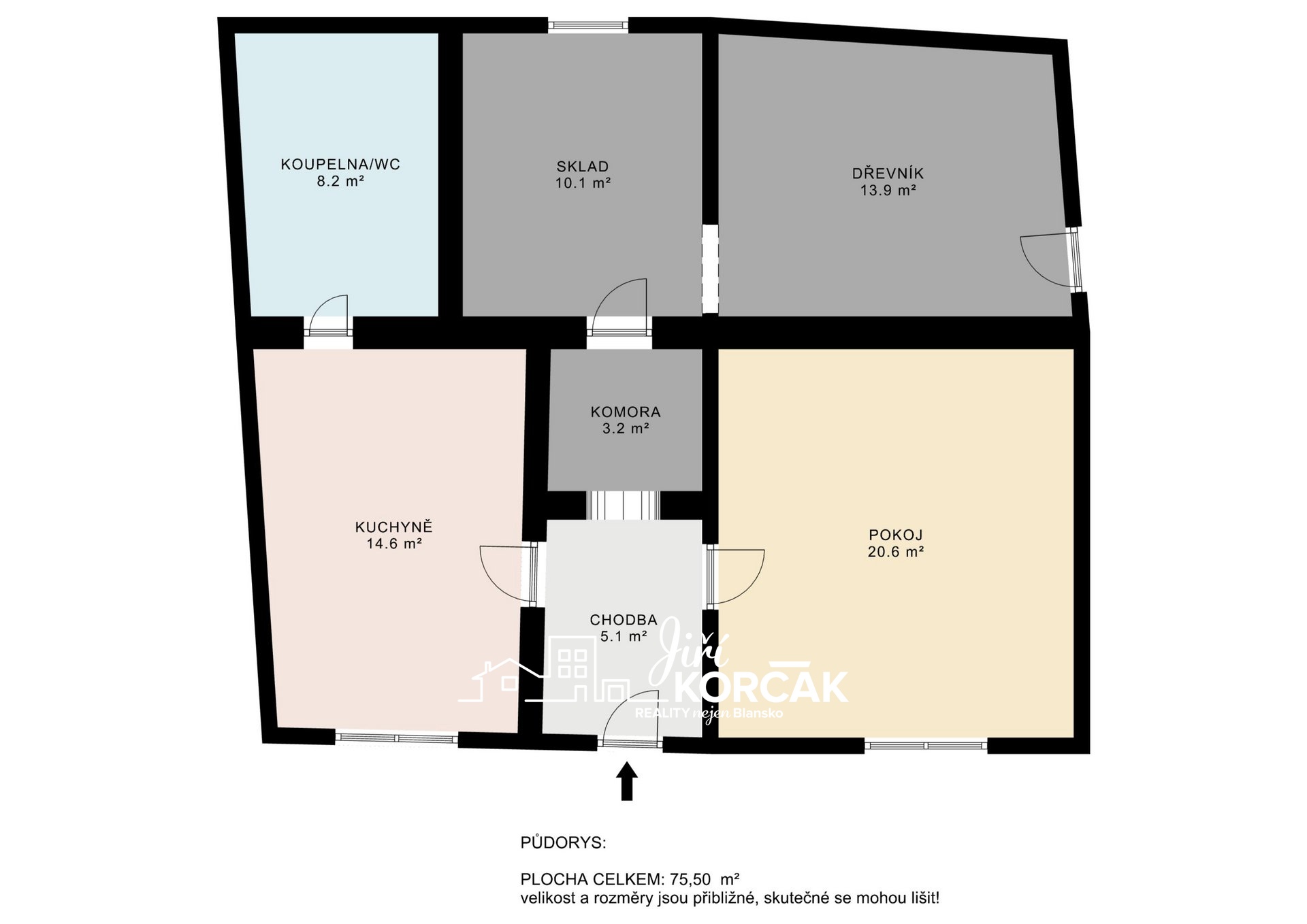 Nemovitost, kterou vám nyní nabízím, se nachází v Letovicích, v ulici Nové Město 222/17, nedaleko hlavního silničního průtahu a severně od letovického zámku. Podle dohledaných historických materiálů stojí dům na tomto místě pravděpodobně minimálně od roku 1872. Jedná se o přízemní, nepodsklepený rodinný dům ze smíšeného zdiva, ke kterému nenáleží žádné další pozemky ani zahrada. Parcela č. 1399 má výměru 95 m2 a tvoří ji zastavěná plocha a nádvoří. Dle informací majitele existuje možnost pronájmu části travnaté plochy před domem o velikosti cca 60 m2 od města Letovice, jak tomu bývalo dříve. Současná fasáda zakrývá původní, dlouhodobě neudržovaný interiér s dispozicí 1+1, rozdělený středovou chodbou na dvě samostatné části. Dispozice 1+1 využívá středovou chodbu, která dále pokračuje pod kůlnu a do skladu dřeva. Vlevo od chodby se nachází kuchyně a koupelna s WC, vpravo obytný pokoj. Prostor pod kůlnou slouží jako sklad a dřevník. Protější stěna tohoto prostoru již náleží sousednímu domu a je odtud rovněž možný vstup na ulici na jižní straně objektu. Dům je napojen na elektřinu a veřejný vodovod a snad i kanalizaci. Plyn není zaveden. Stav objektu odpovídá jeho stáří. Stavba má sedlovou střechu se starší krytinou, původní dřevěná jednoduchá okna a nezateplený plášť s poškozenou fasádou. Vytápění zajišťují kamna na dřevo v kuchyni a elektrická akumulační kamna v obytném pokoji. Ohřev vody obstarává elektrický bojler umístěný v koupelně. Interiér domu neprošel žádnou modernizací ani zásadnější údržbou. Stav objektu lze proto označit za - vyžadující kompletní rekonstrukci, což však zároveň umožňuje novému majiteli přizpůsobit si dům zcela podle vlastních představ.