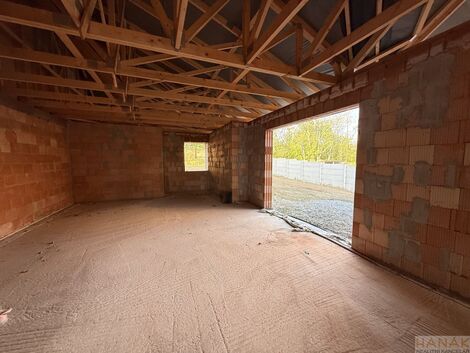 Exkluzivně nabízíme ke koupi zděnou hrubou stavbu moderního jednopodlažního rodinného domu 4+kk se zahradou v klidné části Hrušovan nad Jevišovkou. Dům je ideální volbou pro ty, kteří hledají komfortní bydlení s možností dokončení dle vlastních představ. Hlavní informace Dispozice 4+kk Pozemek: 541 m Zastavěná plocha: cca 154 m Užitná plocha: cca 129 m Zahrada: cca 387 m Vlastní parkování + předzahrádka před domem Dispozice domu: Zádveří: 7,8 m Technická místnost: 4,6 m WC: 2,7 m Koupelna: 5,7 m Spíž: 1,2 m Obývací pokoj + kuchyně: 66,9 m Ložnice: 15,4 m Pokoj: 12,4 m Pokoj: 12,4 m Velkorysý obývací prostor o rozloze téměř 67 m nabízí pohodlí a díky velkým francouzským oknům i dostatek světla a přímý vstup na terasu se zahradou. Vlastní pokoje jsou přístupné přímo z centrálního obývacího pokoje a hlavní ložnice je navržena rovněž s francouzským oknem s přímým vstupem na terasu a zahradu. Výhled z domu na Pálavu či světlo zapadajícího slunce na dům nebo zahradu jsou příslibem nezapomenutelných okamžiků, které zde můžete prožít se svou rodinou. Konstrukční provedení: Dům je založen na betonových základových pasech. Obvodové zdivo i příčky jsou provedeny z keramických cihelných bloků Heluz, což zaručuje kvalitní a dlouhodobě spolehlivou konstrukci. Střecha z keramické krytiny. Součástí projektu je také venkovní terasa orientovaná do zahrady. Lokalita: Nemovitost je situována v nové, žádané části Hrušovan nad Jevišovkou. Místo nabízí výbornou občanskou vybavenost, sousedství nových domů a rychlý přístup k přírodě. Perfektní volba pro rodiny i pro ty, kdo hledají pohodové a moderní bydlení. <a href="https://www.eurobydleni.cz/domy/rodinny-dum/karvina/obec-dolni-lutyne/prodej/"><strong>Prodej rodinného domu Dolní Lutyně</strong></a>