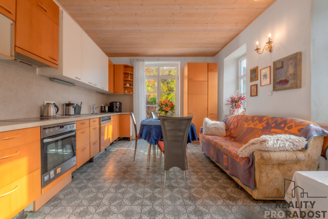 Exkluzivní nabídka domu ve Vranově nad Dyjí / okres Znojmo/ Vždycky, když se vydám do Vranova, tak mi tato obec zvedne náladu a vykouzlí úsměv na rtu. a už vím proč, i AI říká, že to je jedna z nejkrásnějších obcí na Znojemsku, kam lidé často jezdí za relaxem. V romantické uličce, kam vede cesta podél impozantní skály, stojí dům, který vám dnes můžu s radostí představit. Je to klasický historický venkovský dům s prvky pozdního 19. století a s nádherným původním kouzlem. Uchvátila mě branka a plot s tepanými kytičkami i stylová fasáda. Dům 1+1 a 1+kk prošel rozsáhlou rekonstrukcí. Nová elektřina v mědi, hlíněné omítky malované výhradně vápnem, kompletně nové rozvody vody v plastu. Dole najdete novou koupelnu s vanou, nahoře pak další koupelnu se sprchovým koutem. V přízemí vás okouzlí velká španělská kuchyňská linka, dřevěný strop a krásná odolná dlažba RAKO s nejvyšší třídou PEI 5. Z prostorné obytné místnosti se vstupuje francouzským oknem ven. Topení je řešeno elektrickým kotlem rozvedeným do podlahy, ale k dispozici je i finská pec a kamínka, které vám pomohou výrazně ušetřit. V přízemí je nyní jedna velká místnost rozdělená nábytkem na obývací část a ložnici. V patře vznikla útulná jednotka 1+1 s pokojem, kuchyňkou, koupelnou a vstupem na prostorný balkon. V celém domě jsou plastová okna (2017), francouzské okno s roletami i nové dveře. Za domem se zvedá skála, vedle je sklep a zahrádka. Současný majitel má dokonce stavební povolení na zvýšení domu, a nad ním je ještě možnost vybudovat zahradní domek či hospodářskou stavbu o velikosti cca 25 m2. Vranov nad Dyjí - malebný městys pod barokním zámkem, obklopený údolím Dyje a krásami Národního parku Podyjí. Jedno z nejkouzelnějších míst Znojemska. V obci je mateřská škola, pošta, praktický lékař, zubař i dvě menší prodejny potravin. Tak snad jsem na nic nezapomněla. A pokud ano, s radostí vám to dopovím na prohlídce. Už se na ni moc těším.