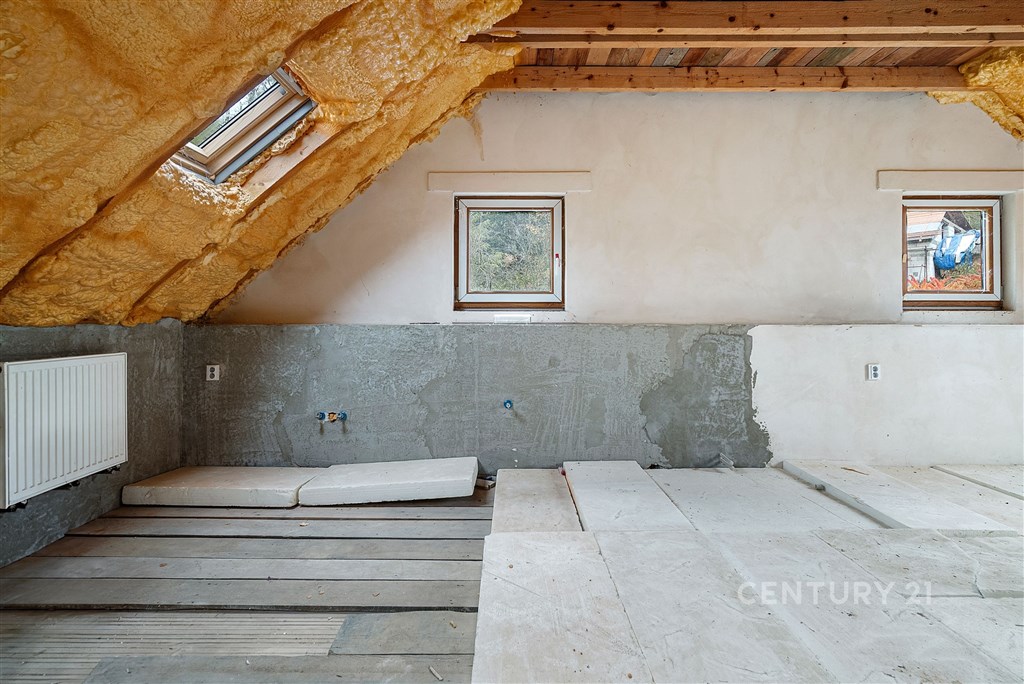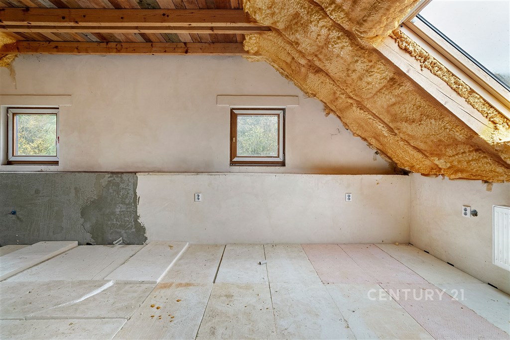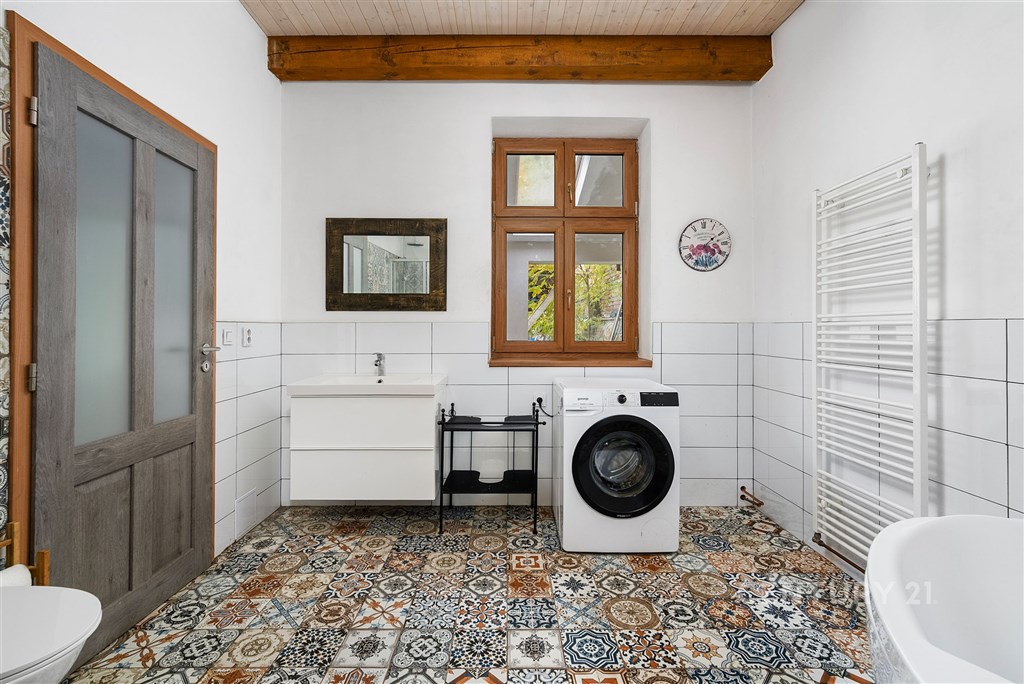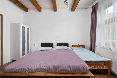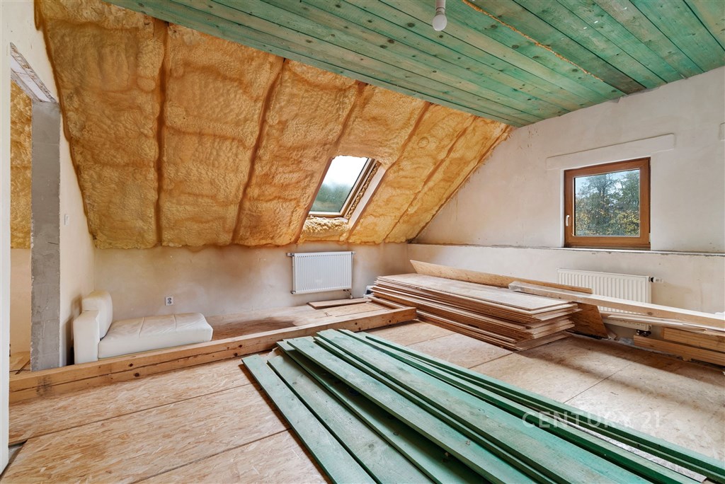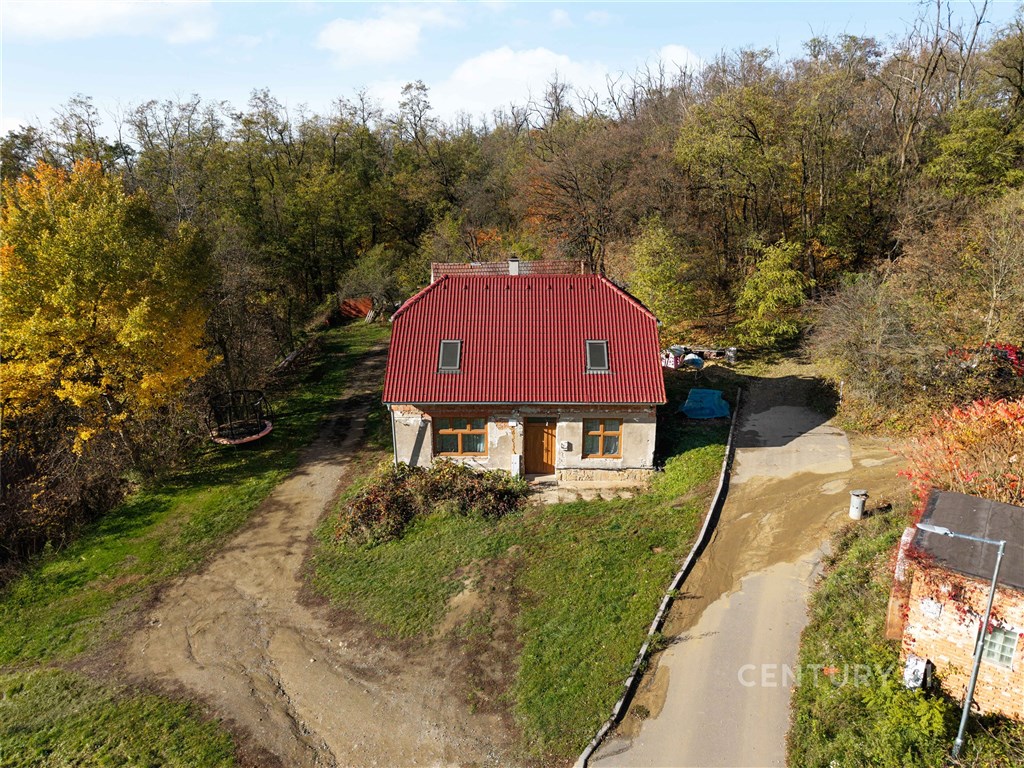 Hledáte dům, do kterého se můžete ihned nastěhovat a zároveň si jej dotvořit dle svých představ? Pak vás jistě zaujme tento rodinný dům v obci Hlína, který nabízí příjemné bydlení s možností rozšíření obytného prostoru v podkroví. Dům se nachází na krásném a klidném místě na samotě u lesa, kde budete mít absolutní soukromí a klid - a přesto jste jen 25 minut jízdy od Brna. Ideální spojení přírody a pohodlí dnešní doby. V přízemí domu najdete prostorný obývací pokoj s kuchyní (33 m2), ložnici (12 m2), koupelnu (10 m2) s vanou, sprchovým koutem, WC a umyvadlem, chodbu (10 m2) a verandu (24 m2) s přípravou na krbová kamna. Na verandě je přivedena elektřina, osvětlení i ústřední topení, takže může sloužit jako útulný zimní pokoj nebo společenský prostor s výhledem do zeleně. Podkroví je připravené na tři pokoje a koupelnu - rozvody vody, odpadu i topení jsou hotové. Nový majitel si tak může vše dokončit podle svého vkusu a potřeb. Dům je z poloviny podsklepený, sklep nabízí technickou místnost a další dva prostory vhodné například na skladování dřeva nebo nářadí. Dům prošel rozsáhlou rekonstrukcí, má nové rozvody elektřiny, vody, odpadů i topení, nové omítky a kompletně zrekonstruovanou střechu včetně krovu, věnce a krytiny. Vytápění je centrální krbovými kamny s výměníkem (nové z roku 2024), s možností alternativního napojení na elektrokotel (distribuční sazba D57d). Ohřev vody zajišťuje kombinovaný elektrický bojler. Okna jsou plastová RI - v obytných místnostech trojskla, jinde dvojskla v odstínu winchester, střešní okna Velux. Pravá část domu je podřezaná a odizolovaná, v přízemí je navíc provedena protiradonová izolace.Přízemí i podkroví mají vyvedeny zásuvky pro centrální vysavač. Na pozemku se nachází zachovalá stodola se třemi místnostmi, která může sloužit jako dílna, sklad nebo prostor pro přestavbu. Zahrada nabízí dostatek prostoru pro odpočinek i zahradničení a kolem domu je krásný výhled do zeleně. Příjezd je po asfaltové cestě až k domu, parkování je možné přímo na pozemku. Dům je napojen na elektřinu v zemi (bez antoníčku), obecní vodovod a kanalizaci. Internet je aktuálně přes 4G O2, optická síť je v obci již připravena. Provozní náklady jsou velmi nízké - elektřina a voda činí přibližně 3 000 Kč měsíčně pro čtyřčlennou rodinu, k tomu je potřeba připočítat pouze náklady na dřevo na topnou sezónu. Dům se nachází na samotě u lesa, takže nabízí naprostý klid, soukromí a kontakt s přírodou - přesto je obec Hlína doslova na dosah. Funguje zde místní obchod a hospoda, a pokud potřebujete kompletní občanskou vybavenost, vše najdete v nedalekých Neslovicích a Ivančicích, kam je to jen pár minut autem.