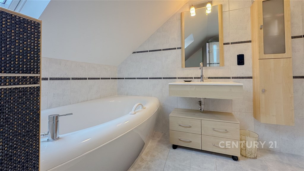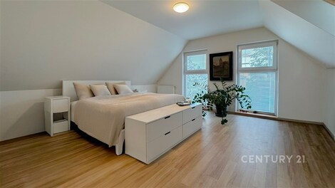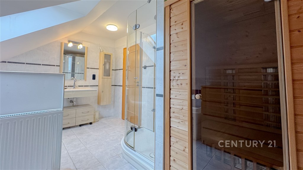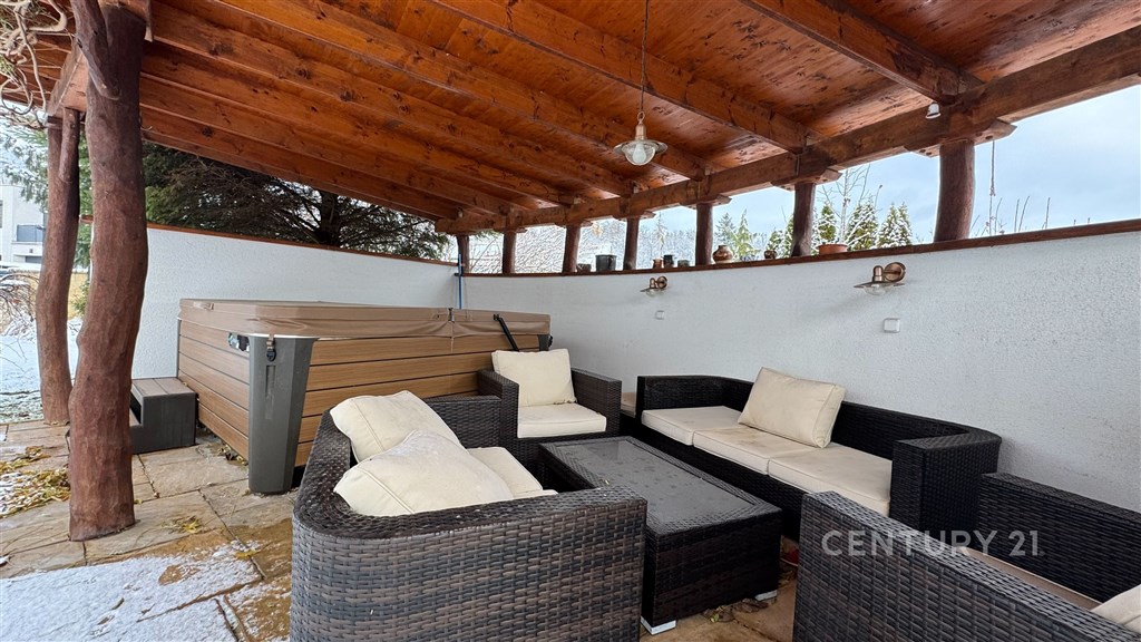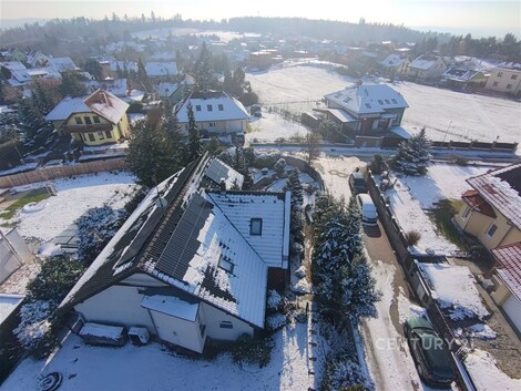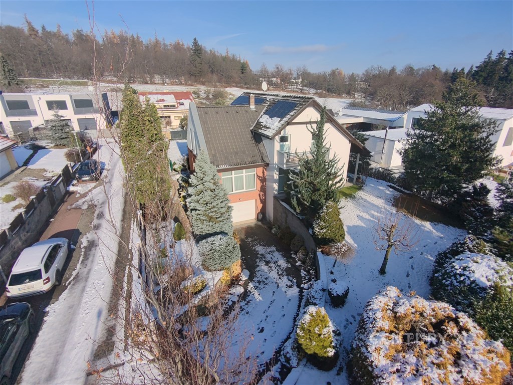 Překrásný rodinný dům situovaný na adrese Útěchov, 64400 Brno, nabízí komfortní bydlení na venkově s výhodami městské infrastruktury. Třípodlažní objekt s výškou stropu 3 m v 1.NP a celkovou obytnou plochou 266 m2, zastavěnou plochou 160 m2 a užitkovou plochou 224 m2 je postaven na pozemku o rozloze 854 m2. Nemovitost je přístupná přes asfaltovou cestu a je napojena na veřejnou kanalizaci a vodovod. Vytápění tepelným čerpadlem s FTV (fotovoltaikou) a krbem na dřevo. Tato nemovitost, charakterizovaná jako domov pro vícegenerační bydlení, nabízí dvě obytné jednotky, což umožňuje flexibilní využití pro velkou rodinu. 1. PP Garáž (31,35 m2). Výška stropu 2,65 m 1. NP Dům má v přízemí bezbariérový vstup s bytem 1+1 (27,73 m2) pro člena rodiny (kuchyňka je ve formě přípravy aktuálně využívána jako průchozí šatna do koupelny). V přízemí je dále obývací pokoj s kuchyní (69,13 m2) a spíží (2,85 m2), zádveří s vestavěnými skříněmi (7,94 m2), vstupní hala (11,44 m2) se schodištěm (8,42 m2), technická místnost s tepelným čerpadlem a FTV (2,28 m2) a toaleta s umyvadlem (2,17 m2). Výška stropu 3 m. 2.NP Schodištěm přístupné druhé podlaží má centrální chodbu (21,44 m2) se vstupy do všech místností. Koupelna se saunou vanou a sprchou (10,84 m2), toaleta (2,27 m2), pokoj (17,05 m2), pokoj (19,33 m2), pokoj (14,7 m2), šatna (5,71 m2). Výška stropu 2,85 m. Nemovitost je připravena k nastěhování bez nutnosti dalších investic. Topení a rozvod teplé vody jsou zajištěny tepelným čerpadlem a FTV. Obývací prostor má krb na dřevo. Měsíční náklady na provoz domu jsou 6 000 Kč (elektřina). Exteriér domu je doplněn překrásnou zahradou, která poskytuje dostatek prostoru pro odpočinek na čerstvém vzduchu a aktivní trávení volného času. Pro milovníky venkovního posezení je k dispozici i terasa s pergolou a jacuzzi. Starost o zahradu zajišťuje automatická závlaha a vlastní vrtaná studna. Parkování není problém, jelikož tato nemovitost disponuje třemi parkovacími místy, z toho jedno v garáži (31,35 m2) a další na ulici na které podíl se sousedy, tedy parkujete na vlastním pozemku u domu. Ke zvýšení bezpečnosti přispívá i stávající bezpečnostní systém. Rodinný dům se nachází v městské část Útěchov (stále v zóně MHD 101) s veškerou občanskou vybaveností v dosahu. Dopravní dostupnost je vynikající díky blízkosti autobusové dopravy, vlastního automobilu či městské hromadné dopravy. Nedaleko se rovněž nacházejí louky, pole, lesy a venkovský ráz, což přispívá ke klidnému životnímu prostředí i s domácími mazlíčky. Majetek je v osobním vlastnictví s možností financování prostřednictvím hypotéky. Nabídka je ideální pro ty, kteří hledají spojení komfortního bydlení, funkčnosti a blízkosti přírody. Pro více informací kontaktujte makléře Petra Vyskočila.
