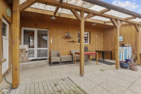 Exkluzivně nabízíme k prodeji rohový rodinný dům po rekonstrukci v klidné rezidenční části obce Hevlín. Dispoziční řešení domu je 4+1, podlahová plocha 143,28 m2. Velkou předností tohoto domu je prostorná zahrada s oploceným pozemkem a možností vjezdu. Dům sestává ze tří neprůchozích pokojů (ložnic), obývacího pokoje, kuchyně, jídelny, ze které vedou dveře na vydlážděnou zastřešenou terasu, ideální pro letní posezení. Pod terasou se také nachází zemní sklep s klenbovým stropem. Dále z koupelny, WC, komory a technické místnosti, kde je umístěn kotel a zároveň je z ní možný průchod přímo do dvora / zahrady. Rozsáhlá rekonstrukce domu proběhla v letech 2010-2011, kdy byly udělány podlahy, topení, okna (plastová s dvojskly), kompletně nová kuchyně s jídelnou, nová koupelna i WC. V r. 2014 proběhlo částečné zateplení domu s fasádou. Dispozice: Obývací pokoj 22,17 m2; kuchyň 10,8 m2; jídelna 11,8 m2; ložnice 15,49 m2; pokoj 21,5 m2; pokoj 11,7 m2; koupelna 9,4 m2; komora 6,32 m2; WC 1,32 m2; kotelna 5,08 m2; chodba 11,68 m2; chodba 11,97 m2; zádveří 4,05 m2. Zastavěná plocha a nádvoří 462 m2, plocha zahrady (p.č. 666/1 a p.č. 666/2) 470 m2. Podlahová plocha domu je 143,28 m2. Vybavení: Kuchyňská linka včetně spotřebičů (el. trouba zn. Bosch, sklokeramická varná deska, digestoř Bosch, lednice LG), jídelna s dřevěným jídelním stolem a židlemi. V obývacím pokoji gauč s taburetem, obývací stěna. Ložnice vybavena manželskou postelí a šatní skříní. Prostorná koupelna s vanou i sprchovým koutem, koupelnový nábytek. Vytápění kotlem na tuhá paliva zn. Atmos, v obývacím pokoji krbová kamna, ohřev teplé vody el. bojlerem. Na zahradě se nachází studna s užitkovou vodou. Plynová přípojka na domě, plyn v současné chvíli odpojen. Dům je napojen na veřejnou kanalizaci. Zahrada je oplocená, součástí jsou dva vjezdy na pozemek, část zahrady vydlážděna zámkovou dlažbou pro pohodlné zaparkování a část oplocení lemují vzrostlé dřeviny, které zahradě dodávají přirozený vzhled. V pravé části pozemku za domem se nachází dřevěný přístřešek, který tvoří tři části (dílna, kotec a voliéra), v zadní části volně stojící bouda. Hevlín je ideální volbou pro ty, kteří hledají klidné bydlení v dosahu přírody, ale zároveň nechtějí ztratit kontakt s městem. Tato příjemná obec nabízí pohodové rodinné prostředí, dostatek soukromí a přátelskou komunitu, kde se lidé znají a pomáhají si. Velkou výhodou je výborná dostupnost do Znojma i Rakouska, do Pohořelic a do Brna přímý autobusový spoj, což ocení jak pracující, tak i ti, kteří rádi cestují. Obec se nachází 5 minut do Laa an der Thaya - termální lázně, je zde také vlak do Vídně a na letiště Schwechat. V obci najdete základní občanskou vybavenost - poštu, ordinaci praktického lékaře, mateřskou školu, základní školu do 9. třídy, 3 prodejny potravin s nedělním prodejem, bankomat, restauraci, hotel i sportovní vyžití. Okolní krajina je ideální pro procházky, cyklistiku a relax po náročném dni. Hevlín je křižovatkou cyklostezek evropského vý...