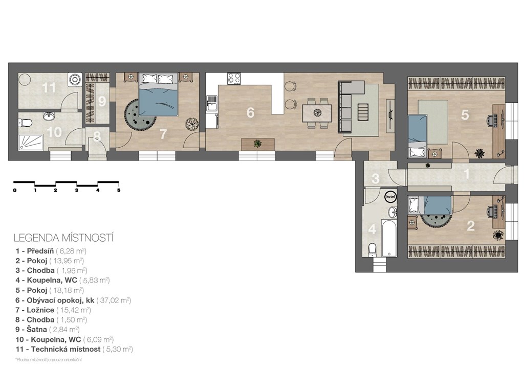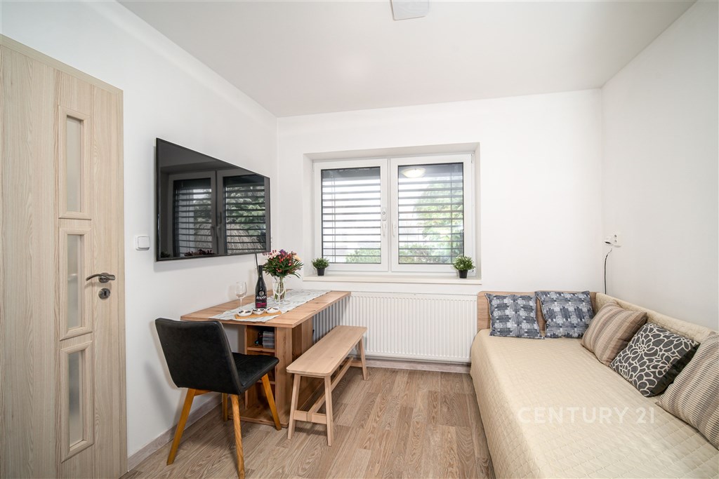 Ve výhradním zastoupení nabízíme ke koupi rodinný dům v klidné a vyhledávané lokalitě v Břeclavi na ulici Gen. Šimka. Rodinný dům má celkovou dispozici 4+kk a je dispozičně řešen tak, aby jej bylo možné jednoduše rozdělit na dvě samostatné bytové jednotky 2+kk. Díky tomu je vhodný jak pro vícegenerační bydlení, kombinaci bydlení a podnikání, tak i jako investiční příležitost k pronájmu. Do domu vstoupíte přes chodbu, ze které se dostanete do všech místností první části domu. Po levé straně se aktuálně nachází obývací pokoj s kuchyňským koutem. Po pravé straně je velký prosvětlený pokoj aktuálně využíván jako dětský pokoj. Součástí této části domu je také koupelna s WC. Tato část domu splňuje parametry samostatné bytové jednotky 2+kk. Je vytápěna pomocí radiátorů a ohřev vody včetně topení zajišťuje moderní plynový kondenzační kotel Baxi NUVOLA3 Comfort HT. Následně buď z téže chodby, případně ze zahrady, vstoupíte do nově vystavěné části domu opět s dispozicí 2+kk. Dominantou je velká místnost vhodná pro zbudování kuchyňského koutu, jídelny a obývacího pokoje. Okna jsou orientována do zahrady. Na tuto místnost navazuje samostatný pokoj využíván jako ložnice. K ložnici náleží menší místnost vhodná jako šatna. Za ložnicí navazuje koupelna připravena na dokončení dle Vašich vlastních představ. Na koupelnu navazuje technická místnost. Tato část domu je vytápěna pomocí podlahového elektrického topení. Celková užitná plocha domu je cca 165m2: Chodba 6,3 m2, Pokoj č. 1 14,0 m2, Pokoj č. 2 18,2 m2, Koupelna + WC č. 1 5,8 m2, Chodba 2,0 m2, Kuchyně + obývací pokoj 37,0 m2, Ložnice 15,4 m2, Šatna 2,8 m2, Chodba 1,5 m2, Koupelna + WC č.2 6,1 m2, Technická místnost 5,3 m2, Půda 40,5 m2, Sklep v zahradě 5,3 m2, Kůlna/zahradní domek 5,0 m2. V celém domě je rozvedena technologie rekuperace, zajišťující proces zpětného získávání energie, tepla a větrání bez velkých tepelných ztrát včetně čištění vzduchu od prachových částic. Dům má v nové části připravenou pojistkovou skříň na vybudování FVE. Dům je postaven do tvaru písmene L, což umožňuje příjemné propojení s vlastní zahradou o samostatné výměře přibližně 300 m2. Součástí zahrady je vlastní studna. V pěší vzdálenosti najdete základní školu (300m), obchod COOP (200m), případně velké nákupní centrum Aventin (1200m). Díky lokalitě má dům skvělou dostupnost na D2, díky níž se snadno a rychle dostanete do centra Brna do 35min. Nemovitost se nachází v atraktivní části jižní Moravy v těsné blízkosti Lednickovaltického areálu, ideálního pro cykloturistiku, procházky, poznávání historických památek a vinařství. Nemovitost nabízí klidné bydlení, flexibilní dispozici i atraktivní lokalitu. PENB ukazatel energetické náročnosti bude dodán proto dle zákona uvádíme G mimořádně nehospodárná. Údaje budou průběžně aktualizovány. Pro více informací nebo sjednání prohlídky mě neváhejte kontaktovat.