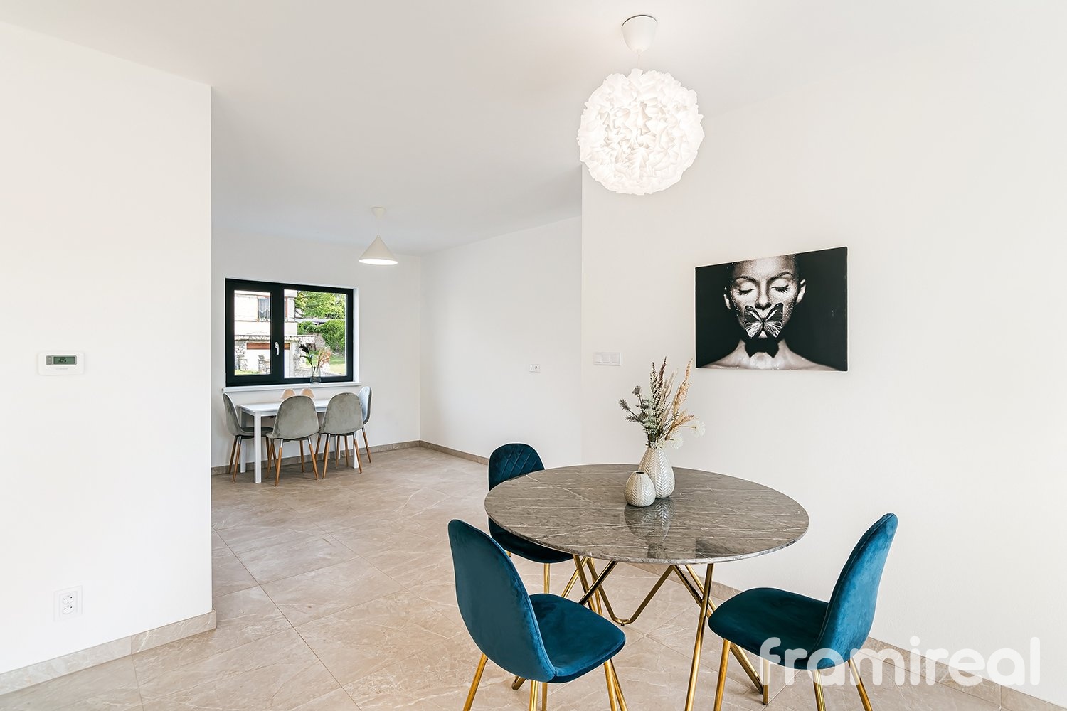 Dobrý den, hledáte pohodlné a promyšlené bydlení pro svou rodinu v klidném a dobře dostupném místě? Máme pro vás jedinečnou příležitost. Velkou výhodou této nabídky je možnost převzetí části kupní ceny formou hypotéky s fixací do 9/2028 a mimořádně výhodnou úrokovou sazbou 2,49 %. Díky tomu můžete výrazně ušetřit oproti současným podmínkám na trhu. Nabízíme k prodeji novostavbu rodinného domu 4+kk s užitnou plochou 179 m2 a zahradou na pozemku o výměře 212 m2 v oblíbené lokalitě Holubice na Vyškovsku. Sousední dům je již prodán a noví majitelé se připravují na nastěhování, takže vás čeká příjemné a klidné sousedství v moderní zástavbě. Dům je rozdělen do tří logicky uspořádaných podlaží. V přízemí se nachází prostorné zádveří s dostatkem místa pro odložení věcí, dále následuje velkorysý obývací pokoj s přípravou pro kuchyň a jídelnu. Díky velkoformátovým oknům je interiér prosvětlený a lodžie nabízí ideální prostor pro ranní kávu nebo večerní relaxaci. Přízemí dále doplňuje samostatná toaleta a příprava na předokenní žaluzie, které oceníte zejména v letních měsících. V prvním patře se nachází tři komfortní ložnice, koupelna s vanou a toaletou a také střešní okno na chodbě, které zajišťuje denní světlo i v centrální části horního podlaží. Suterén domu překvapí svou praktičností a variabilitou využití. Nachází se zde technická místnost s plynovým kotlem, moderní systém doplňování retenční nádrže, který v případě nedostatku srážek dokáže využít tzv. šedou vodu z domu, čímž významně šetří vodní zdroje i provozní náklady. K dispozici je také toaleta se sprchou a dvě další plnohodnotné místnosti. Ty lze využít například jako domácí posilovnu, pracovnu, hernu, ateliér nebo klidné zázemí pro podnikání. Možností využití je skutečně mnoho. Velkým benefitem je i výborná dopravní dostupnost. Z Holubic jezdí přímý vlak do Brna každou hodinu a na hlavním nádraží jste za pouhých 33 minut. Pohodlné spojení tak ocení všichni, kdo dojíždějí za prací, školou nebo službami. Zaujala vás tato nabídka? Neváhejte nás kontaktovat pro více informací nebo si domluvte osobní prohlídku. Rádi vás domem provedeme.