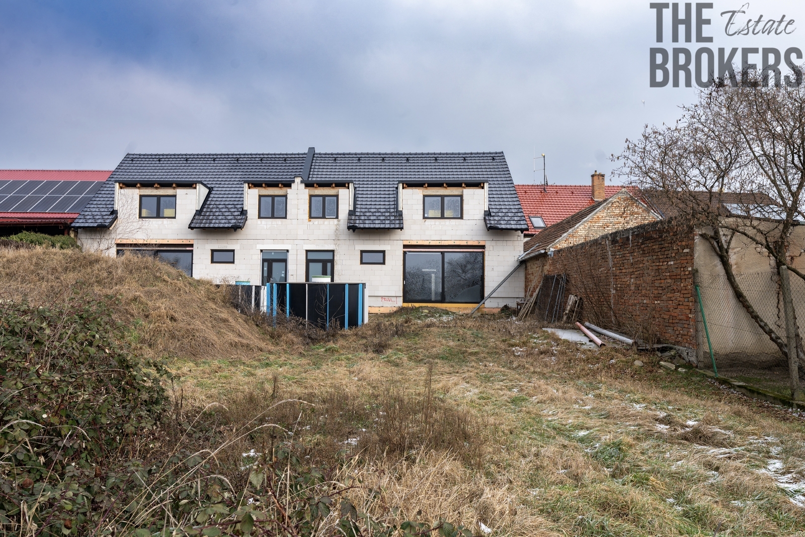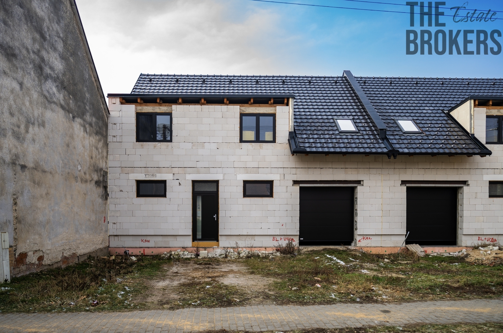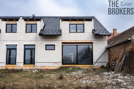 Představujeme Vám moderní rodinný dům 5 + kk s garáží a velkou zahradou. Jedná se o novostavbu ve fázi dokončování - v této chvíli jsou hotové obvodové zdi, střešní konstrukce, plastová okna a vstupní dveře; interiéry a finální povrchy čekají na dokončení dle představ budoucího majitele. Nemovitost se nachází v tiché části obce Mikulčice na jihu Moravy, jen 7 km od Hodonína. Dispozice a prostor Přízemí: zádveří (6,90 m2), prostorný obývací pokoj (35,82 m2) s navazujícím kuchyňským koutem (5,77 m2), koupelna s WC, technická místnost (5,10 m2) a garáž (27,63 m2). Podkroví: dle projektové dokumentace je navržena chodba se schodištěm (15,07 m2), čtyři pokoje (17,93 m2, 13,03 m2, 12,51 m2 a 11,01 m2) a sociální zázemí (koupelna, samostatné WC a šatna), podkroví není příčkami rozdělené. Uspořádání místností a rozmístění příček lze zvolit podle přání kupujícího. Celková užitná plocha domu včetně garáže činí 177,23 m2. Dispozice 5 + kk poskytuje dostatek místa pro rodinu, práci i relaxaci. Konstrukce a vybavení Zdivo a nosné konstrukce: nízké náklady na vytápění a ticho v domě zajišťuje použité zdivo Ytong Lambda tl. 450 mm, vnitřní nosné zdivo je tl. 300 mm Fasáda a střecha: fasáda díky použitému materiálu nevyžaduje dodatečné zateplení, střecha je z černých pálených tašek a klempířské prvky jsou z poplastovaného plechu v šedé barvě. Okna a dveře: interiér s terasou nebo zahradou propojuje hliníkový HS portál, vstupní dveře a další okna jsou plastové v bílé barvě; venkovní strana v odstínu šedé. Interiéry (návrh v projektu): projektová dokumentace počítá s vinylovými podlahami v obytných místnostech a keramickou dlažbou v koupelnách a technických prostorách. Tyto prvky nejsou součástí aktuálního stavu - finální povrchy si jako budoucí majitel zvolíte přesně podle svého vkusu. Pozemek a okolí Výměra pozemku po zaměření a rozdělení dle geometrického plánu počítá s plochou cca 800 m2 - vychází to z celkové výměry 1 604 m2 dělené rovnoměrně mezi dvě jednotky, finální výměru máte možnost ovlivnit dle vlastních potřeb. Pozemek však nabídne dostatek místa pro velkou zahradu, terasu či bazén. Mikulčice leží v regionu Podluží, vyhlášeném vinařskými cyklostezkami a bohatou folklorní tradicí. Obec poskytuje základní občanskou vybavenost včetně školy, školky, obchodu a sportovišť; Hodonín s kompletní infrastrukturou je dosažitelný během několika minut jízdy. Proč právě tento dům? Tento dům vyniká prostornou dispozicí, možností dokončení interiéru podle vašich představ, kvalitními stavebními materiály a velkorysým pozemkem. Nabízí tak ideální kombinaci prostoru, flexibility a klidu v atraktivní jihomoravské obci. Neváhejte nás kontaktovat pro domluvení prohlídky a další informace. Rádi vám pomůžeme i s financováním.
