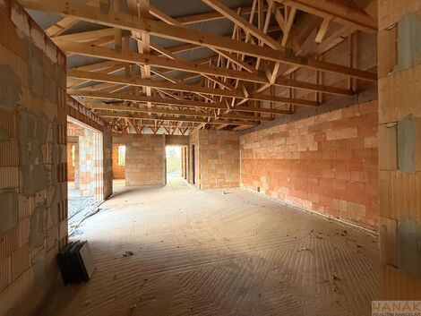 Exkluzivně nabízíme ke koupi zděnou novostavbu moderního jednopodlažního rodinného domu 4+kk se zahradou v klidné části Hrušovan nad Jevišovkou. Dům je aktuálně ve fázi hrubé stavby a bude dokončen na klíč. Hlavní informace Dispozice 4+kk Pozemek: 541 m Zastavěná plocha: cca 154 m Užitná plocha: cca 129 m Zahrada: cca 387 m Vlastní parkování + předzahrádka před domem Dispozice domu: Zádveří: 7,8 m Technická místnost: 4,6 m WC: 2,7 m Koupelna: 5,7 m Spíž: 1,2 m Obývací pokoj + kuchyně: 66,9 m Ložnice: 15,4 m Pokoj: 12,4 m Pokoj: 12,4 m Velkorysý obývací prostor o rozloze téměř 67 m nabízí pohodlí a díky velkým francouzským oknům i dostatek světla a přímý vstup na terasu se zahradou. Vlastní pokoje jsou přístupné přímo z centrálního obývacího pokoje a hlavní ložnice je navržena rovněž s francouzským oknem s přímým vstupem na terasu a zahradu. Výhled z domu na Pálavu či světlo zapadajícího slunce na dům nebo zahradu jsou příslibem nezapomenutelných okamžiků, které zde můžete prožít se svou rodinou. Konstrukční provedení: Dům je založen na betonových základových pasech. Obvodové zdivo i příčky jsou provedeny z keramických cihelných bloků Heluz, což zaručuje kvalitní a dlouhodobě spolehlivou konstrukci. Střecha z keramické krytiny. Součástí projektu je také venkovní terasa orientovaná do zahrady. Lokalita: Nemovitost je situována v nové, žádané části Hrušovan nad Jevišovkou. Místo nabízí výbornou občanskou vybavenost, sousedství nových domů a rychlý přístup k přírodě. Perfektní volba pro rodiny i pro ty, kdo hledají pohodové a moderní bydlení. <a href="https://www.eurobydleni.cz/pozemky/zemedelska-puda/tabor/obec-sobeslav/prodej/"><strong>Prodej zemědělské půdy Soběslav</strong></a>