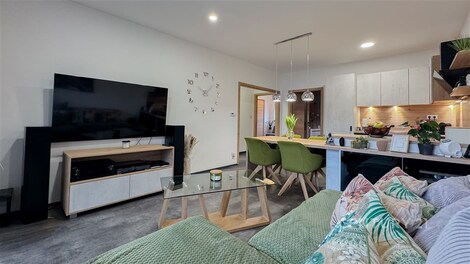 Hledáte moderní a plně vybavené bydlení, které spojuje komfort, soukromí a skvělou dostupnost do města? V exkluzivním zastoupení nabízíme k prodeji světlý dům o dispozici 3+kk v oblíbené lokalitě Dyjákovičky, jen 8 km od Znojma a necelou hodinu jízdy od Brna. Výborná dopravní dostupnost vás navíc pohodlně spojí i s Vídní, vzdálenou přibližně 90 km. Dům nabízí podlahovou plochu 90 m2 a užitnou plochu 70 m2, které jsou navrženy s důrazem na praktičnost i vzdušnost prostoru. Dominantou je prostorný obývací pokoj s přímým vstupem na terasu o velikosti 20 m2, stejně jako ložnice - ideální pro ranní kávu, letní posezení nebo večerní relax. Interiér je kompletně vybaven a připraven k okamžitému nastěhování bez nutnosti dalších investic. Moderní kuchyňská linka je doplněna vestavěnou vinotékou, která potěší milovníky vína i ty, kteří rádi hostí své přátele. O maximální tepelný komfort v celém domě se stará podlahové vytápění, které zajišťuje rovnoměrné teplo a příjemnou atmosféru během chladnějších měsíců. Nechybí vestavěné skříně, samostatná šatna ani technická místnost, které zajistí dostatek úložného prostoru a maximální komfort pro každodenní život. Skutečným benefitem této nemovitosti je venkovní vířivka, která nabízí dokonalé místo pro relaxaci po náročném dni nebo příjemné večery pod širým nebem. O příjemné klima i soukromí se starají předokenní elektrické žaluzie. . Exteriér potěší krásně udržovaným trávníkem a okrasnými dřevinami, jež vytvářejí harmonické prostředí pro odpočinek i rodinná setkání. Samozřejmostí jsou také dvě parkovací místa přímo u domu. Strategická poloha nemovitosti z ní činí ideální volbu jak pro klidné rodinné bydlení, tak pro ty, kteří chtějí kombinovat život v přírodě s rychlou dostupností větších měst. Zaujala vás tato nemovitost? Rád vám poskytnu více informací a domluvím osobní prohlídku.