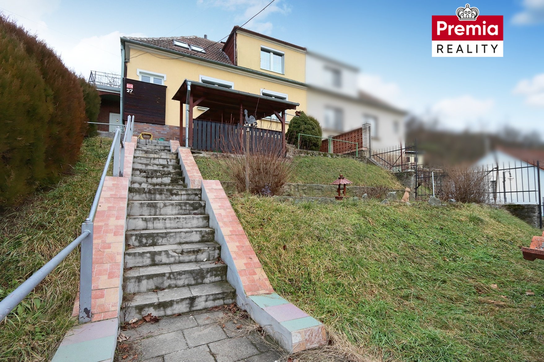 Nabízíme k prodeji rodinný dům o dispozici 4+1 s prostornou garáží a velkou zahradou v klidné lokalitě Horní Leska nedaleko centra Znojma. Dům se skládá ze vstupní místnosti, ze které se vchází do pokoje se sprchovým koutem a dále chodby se schodištěm se vstupem do dalších částí domu. V přízemí je prostorný obývací pokoj a jídelnou. Dále samostatná kuchyň a velká koupelna s rohovou vanou a toaletou. Další dva pokoje a úložný prostor jsou prvním patře, kde je také výstup na horní terasu. Dům je částečně podsklepený. Je zde kotelna, WC a vodárna pro studnu. Prostorná zahrada se nachází v okolí domu a je v současné době převážně zatravněná. Před domem jsou okrasné záhony a v zadní části různé ovocné i okrasné stromy. Za domem je také vinný sklep zasazený do svahu horní zahrady. V levé části pozemku je prostorná garáž s dílnou. Za garáží se nachází další zastřešený úložný prostor. Před vstupem do sklepa je menší vydlážděná terasa s pergolou. Součástí prodeje je kuchyňská linka včetně spotřebičů a další vybavení domu. Více informací na prohlídce. Dům je napojen na elektřinu a vodu. Je zde také vlastní studna. Odpad sveden do jímky. Vytápění zajišťuje kotel na tuhá paliva v kombinaci s novým elektrickým kotlem. Ohřev vody zajišťují dva elektrické bojlery a průtokový ohřívač v kuchyni. V oknech jsou vnitřní žaluzie a venkovní rolety. Dům se nachází v atraktivní lokalitě Horní Leska v severní části Znojma. Navazuje na malebnou krajinu s potokem, lesy a skalními útvary, která nabízí ideální podmínky pro procházky i každodenní kontakt s přírodou, a to vše v bezprostřední blízkosti centra města. Ozvěte se, pokud Vás tato nabídka zaujala. Rád se s Vámi setkám při prohlídce této zajímavé nemovitosti. Ukazatel energetické náročnosti: G* (PENB nebyl dodán).