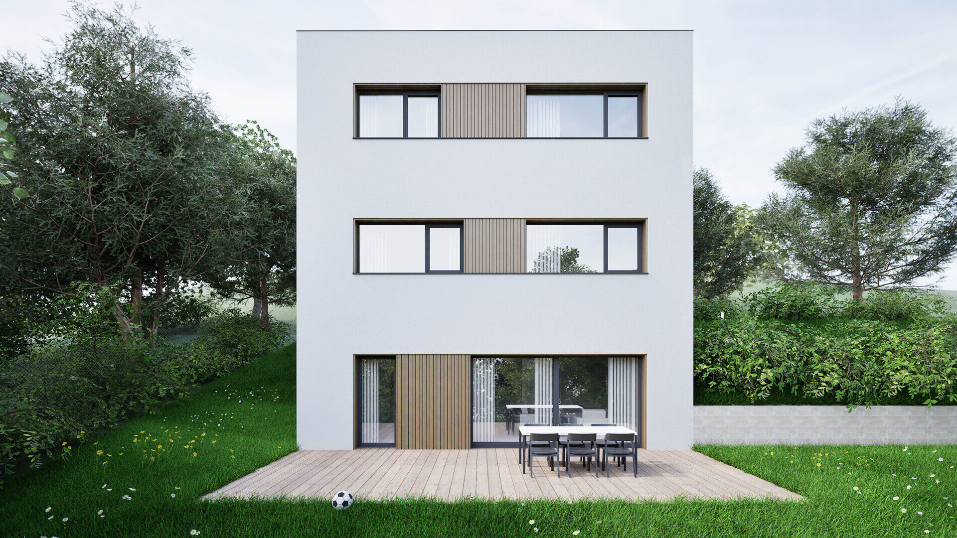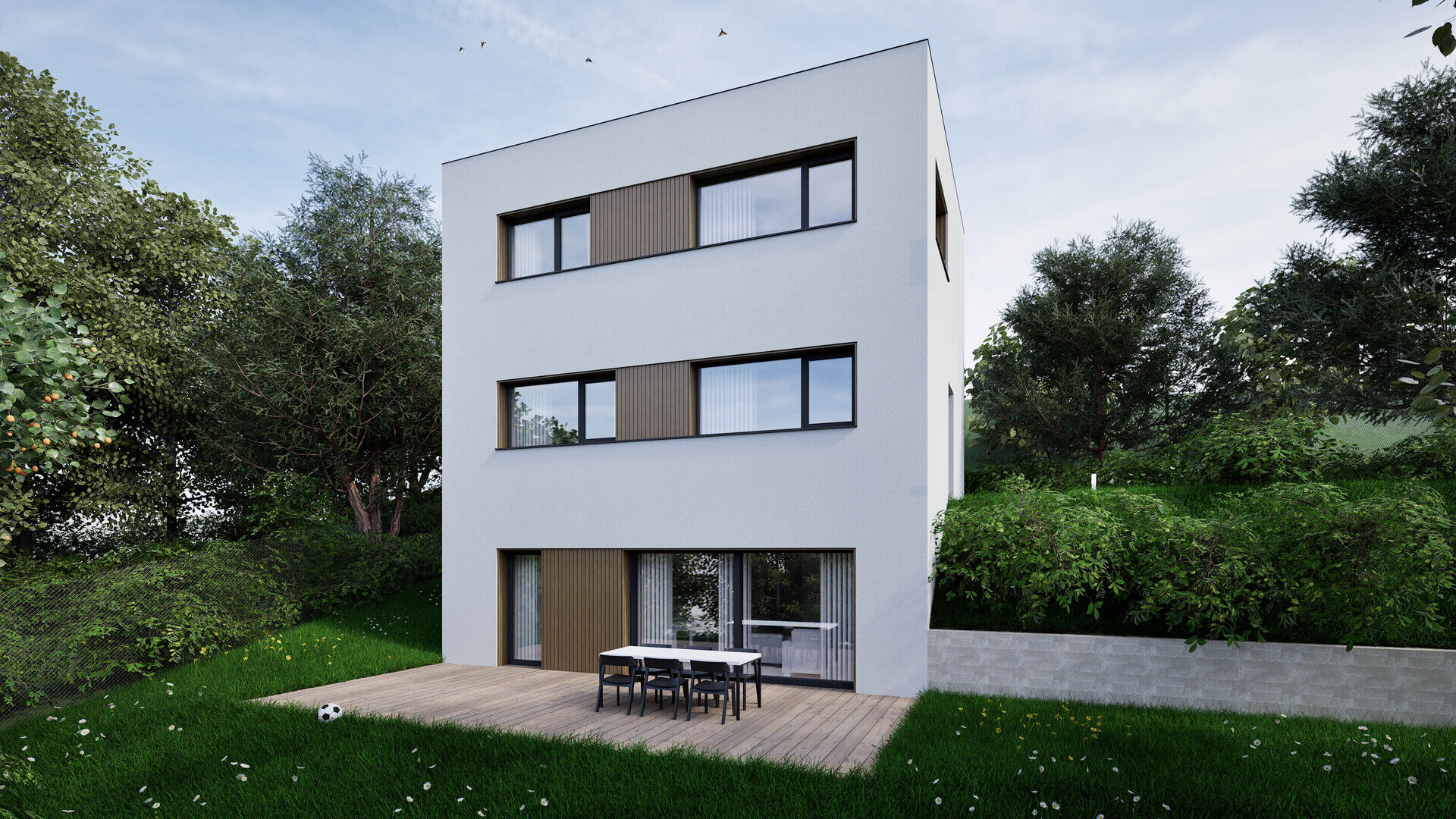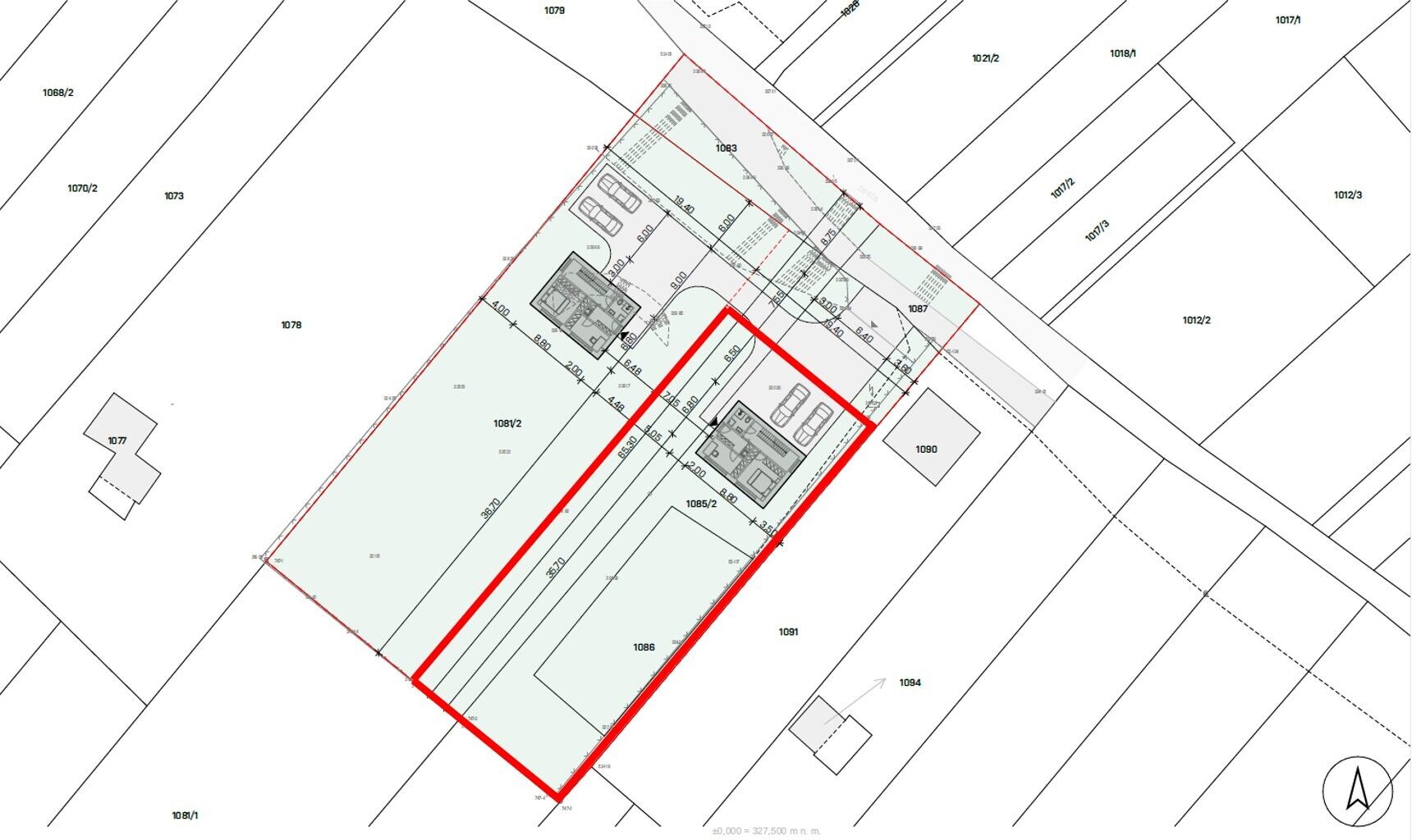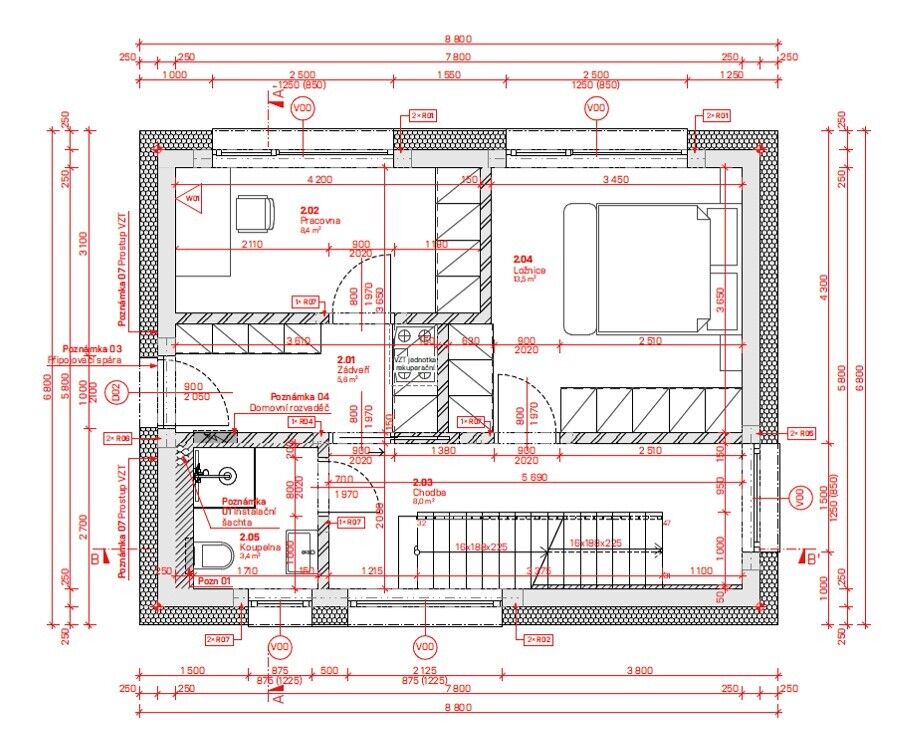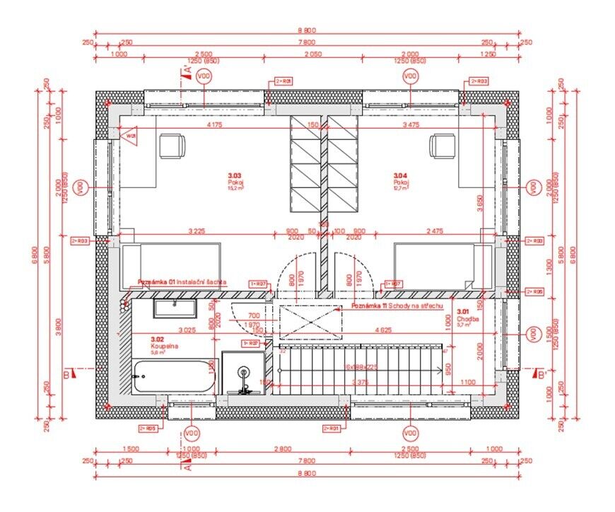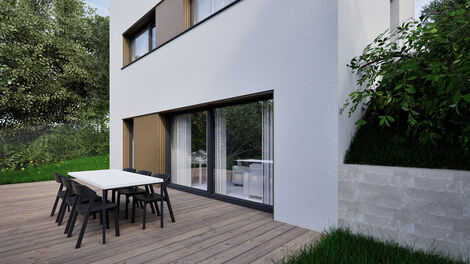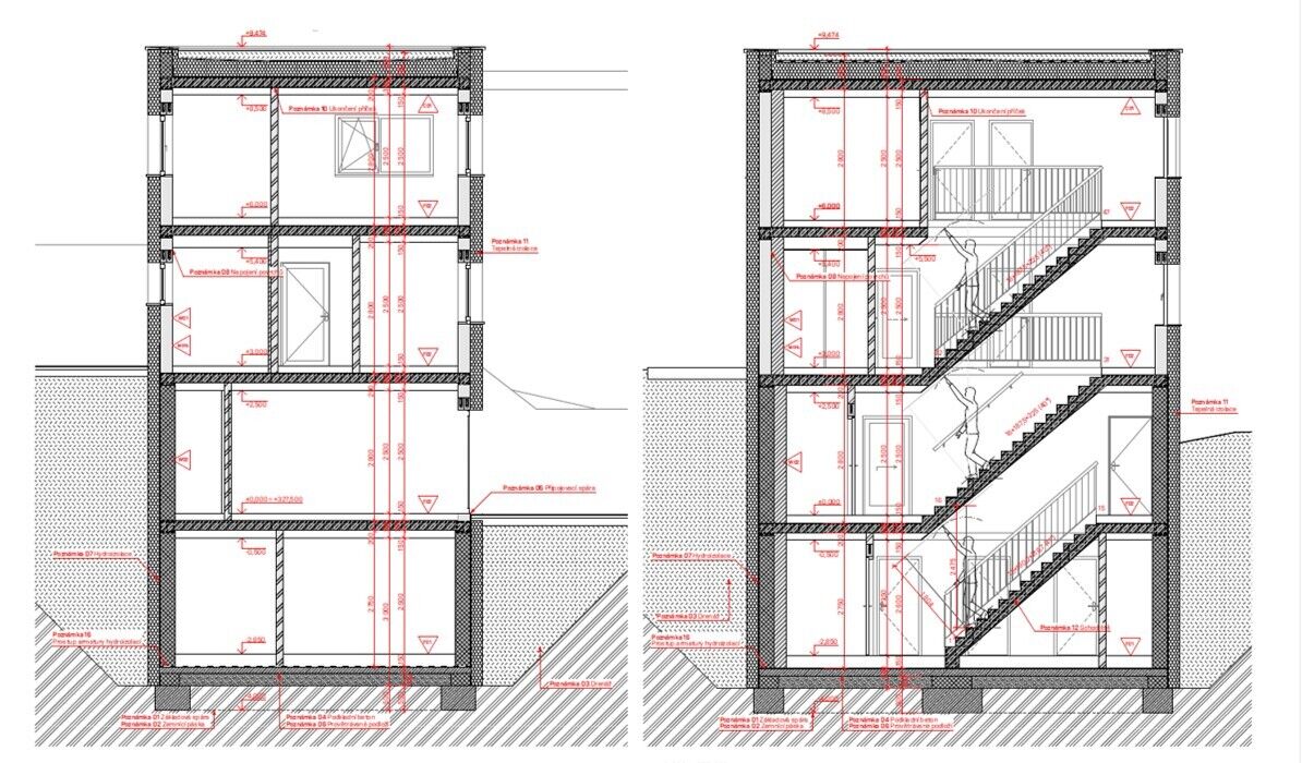 Výstavba dvou rodinných domů na pozemku 2267m2, Troubsko, v lokalitě nad Rybníkem, na vrstevnici nad ulicí Pod vinohrady. Díky umístění ve svahu nabízí pozemek krásný výhled. Velká plocha pozemku 950m2, se šířkou 19,4m a délkou 49m2 zajišťují soukromí a klid pro vaše bydlení. Předmětem této nabídky je prodej RD 5+kk s podlahovou plochou 154,2m2, se dvěma parkovacími místy před domem na pozemku, vyznačeném na situačním plánu červeně. Na zastavěné ploše 60m2 vznikne stavba o čtyřech podlažích. V podzemním podlaží - technická místnost 3,3m2 - elektrokotel + zásobník TUV, prádelna 10,7m2, šatna 8,1m2, sklad 7,2m2, koupelna 1,8m2, chodba se schodištěm 6,4m2. V přízemí - WC 1,2m, chodba 1,6m2 se schodištěm, obývací pokoj 35,8m2 s kuchyňským koutem a výstupem na terasu a zahradu 2.NP - hlavní vstup - zádveří 5,8m2, místnost 8,4m2,(pracovna, může být i velká šatna s propojením do ložnice, ložnice 13,5m2, koupelna 3,4m2, chodba 8m2 se schodištěm. 3.NP - pokoje 15,2 a 12,7m2, koupelna 5,6m2, chodba 5,7m2 se schodištěm. Zahájení stavby 3/2026 dokončení domu do konce tohoto roku. Vzhledem k počáteční fázi stavby, jsou nyní možné klientské změny, případné úpravy dispozic, výběr materiálů / povrchů... V případě více zájemců, si prodávající vyhrazuje možnost, prodat nejvyšší nabídce. Pro další informace volejte makléře na tel. 605 931 999 nebo napište vaše dotazy na e-mail holub@bravoreality.cz