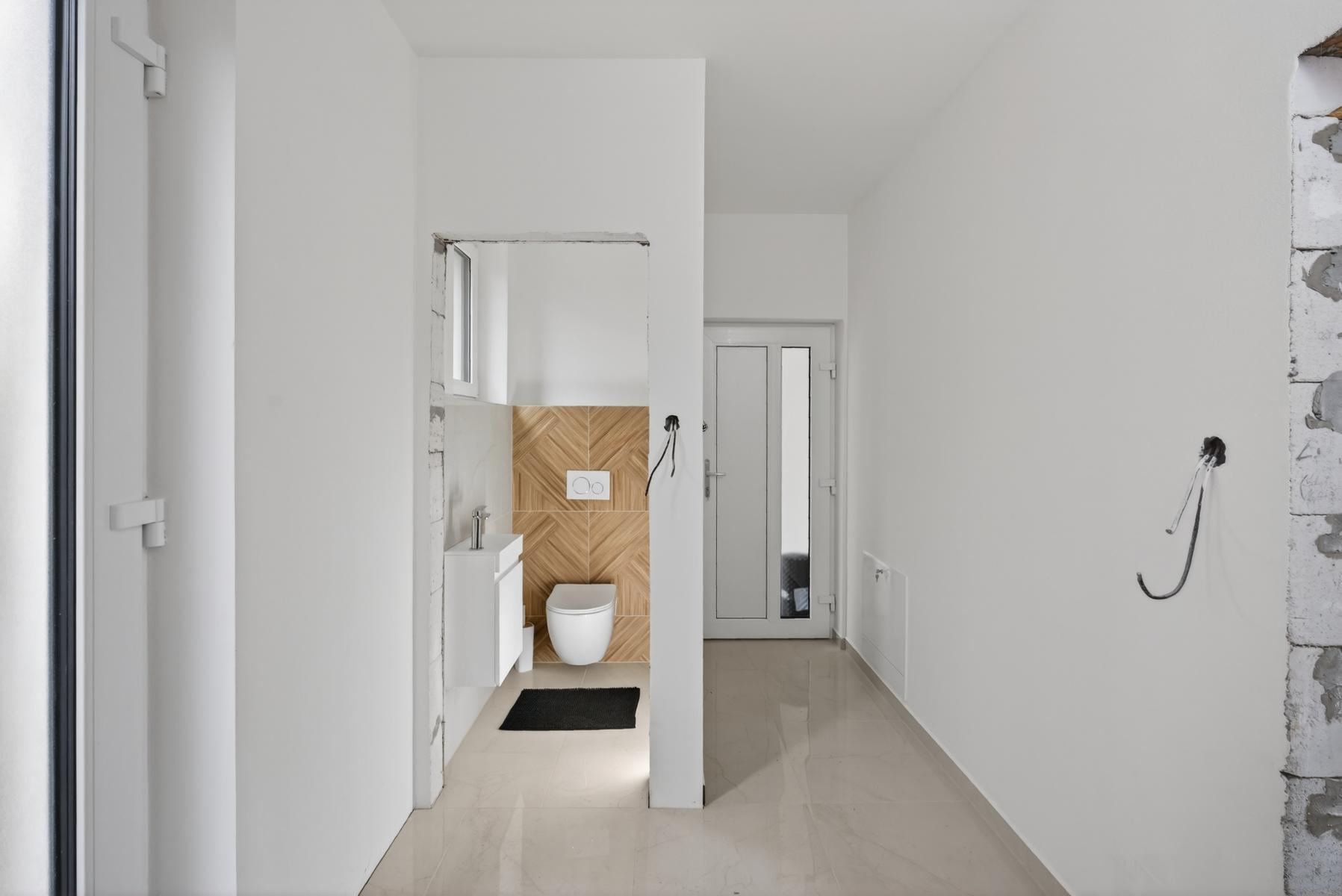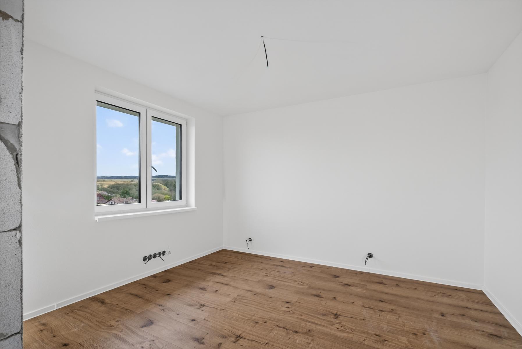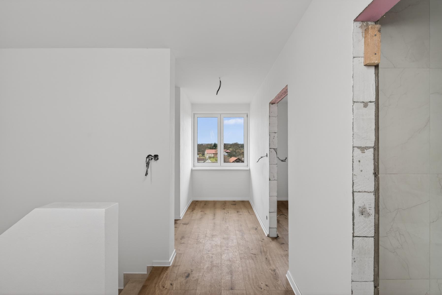 Nabízíme k prodeji moderní patrový rodinný dům 4+kk s průjezdem, terasou a zahradou v obci Nová Ves u Oslavan, s výbornou dostupností do Brna (cca 30 km). Jedná se o novostavbu cihlového domu o užitné ploše 171,8 m na pozemku o velikosti 306 m. Dům je navržen s důrazem na energetickou úspornost, komfort a praktické rodinné bydlení. Technické provedení a standard nosné zdivo Porfix 250 mm zateplení fasády polystyrenem 200 mm plastová okna a balkonové dveře trojskla (U = 0,9 W/mK), dekor antracit podlahové vytápění v celém domě tepelné čerpadlo Protherm energetická náročnost B velmi úsporná retenční nádrž na dešťovou vodu s přepadem do kanalizace (využití pro zalévání zahrady) veřejná kanalizace, vodovod + kopaná studna asfaltová příjezdová komunikace Dům je nabízen po kompletním dokončení interiéru (lepený vinyl, keramická dlažba, obložkové dveře), bez kuchyňské linky tu si nový majitel může zvolit dle vlastních představ. Dispozice domu Přízemí obývací pokoj s kuchyňským koutem 31 m se vstupem na prostornou terasu 23,3 m zádveří 7,2 m schodiště 4,4 m technická místnost 5,5 m samostatné WC 1,3 m průjezd / garážový prostor 26,3 m Patro chodba 10,6 m koupelna 11,3 m pokoj 12,9 m pokoj 13,9 m ložnice 21,4 m samostatné WC 2,7 m Dispozice poskytuje dostatek prostoru pro rodinné bydlení, práci z domova i pohodlné soukromí každého člena domácnosti. Lokalita Obec Nová Ves u Oslavan nabízí klidné bydlení v blízkosti přírody a zároveň výbornou dostupnost do Brna. přímé spojení na Ivančice, Oslavany a Rosice vlakové i autobusové spojení mateřská a základní škola, obchod, restaurace, pošta, cca 500 m od domu vstup do přírodních parků Oslava a Střední Pojihlaví Ideální místo pro rodiny hledající rovnováhu mezi městem a přírodou. Další informace 2 nadzemní podlaží zastavěná plocha 95 m garáž / průjezd dokončení stavby plánováno na červen tohoto roku právní servis je součástí kupní ceny možnost zajištění financování ve spolupráci s OFIS finance Pokud vás tato nabídka zaujala, neváhejte mě kontaktovat pro více informací nebo sjednání osobní prohlídky. Rád vám dům osobně představím a pomohu i s financováním. <a href="https://www.eurobydleni.cz/byty/2_kk/kladno/obec-kladno/prodej/"><strong>Prodej bytu 2+kk Kladno</strong></a>
