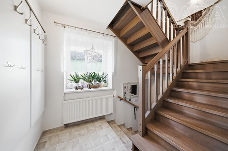 Dvougenerační dům po rekonstrukci: Bydlení s duší, vlastní garáží a relaxační zahradou Hledáte dům, který nabízí soukromí pro dvě rodiny, prostor pro podnikání nebo prostorné zázemí s kouzelnou zahradou? Exkluzivně nabízíme prodej výjimečného rodinného domu, který prošel rozsáhlou modernizací a nabízí unikátní pozemek spojený mostem přes potok. Hlavní přednosti domu: Dvě samostatné bytové jednotky: Dům je dispozičně řešen jako dvě jednotky 3+1, což je ideální pro vícegenerační bydlení nebo kombinaci bydlení a pronájmu. Rozsáhlá rekonstrukce: Majitelé si dali záležet na podstatných věcech - nová elektřina, výměna stropů, sádrokartonové podhledy v celém domě, zateplení a nová okna s venkovními roletami pro maximální komfort a úsporu energií. Chytré technologie a bezpečí: Dům je střežen kamerovým systémem. Vjezd zajišťuje elektrická brána a garáž disponuje elektrickými vraty. Kolem domu jsou nově vybudovány chodníky ze zámkové dlažby. Zahrada, kde se zastavil čas: Zahrada je skutečnou oázou klidu a relaxace. Vodní prvky: Dominantou je plně funkční bazén (3x6 m) s filtrací a zakrytím, vedle kterého najdete nafukovací vířivku a okrasné jezírko (1000 l). Unikátní pozemek: Pozemek je rozdělen potokem, přes který vede vlastní most. Je to místo s neopakovatelnou atmosférou, kde byla elektřina dotažena až na samotný konec parcely. Zahradní zázemí: Najdete zde vyvýšené a okrasné záhony. K posezení je dotažena pitná voda i voda ze studny (včetně přípravy na venkovní WC). Nové stavby: Na zahradě stojí 2 roky staré vedlejší stavby (aktuálně probíhá finální fáze zápisu do katastru nemovitostí). Bonusový potenciál - „Vejminek“: Součástí prodeje je i samostatný objekt („vejminek“). Má již vyměněná okna a je v původním, udržovaném stavu. Nabízí se zde prostor pro vybudování letní kuchyně, dílny nebo ubytování pro hosty. Pod tímto objektem se nachází suchý sklep, zatímco pod hlavním domem je sklep s přirozenou vlhkostí. Technické informace: Vytápění: Plynový kotel + bojler. Velkým bonusem je příprava na tepelné čerpadlo (jednotka je již osazena venku, zbývá pouze dopojit do systému). Voda: Obecní vodovod + vlastní funkční studna s čerpadlem. Vybavení: Po dohodě je možné dům prodat včetně stávajícího vybavení - můžete se tak rovnou nastěhovat. Tento dům není jen stavba, je to promyšlený prostor pro život, který kombinuje moderní pohodlí s venkovským klidem. Přijďte se přesvědčit osobně na prohlídku! Pro více informací a sjednání termínu mě kontaktujte. Poznámka pro zájemce: U vedlejších staveb na zahradě se aktuálně dokončuje administrativní proces zanesení do katastru nemovitostí. PENB je ve zpracování, z tohoto důvodu uvádíme G.