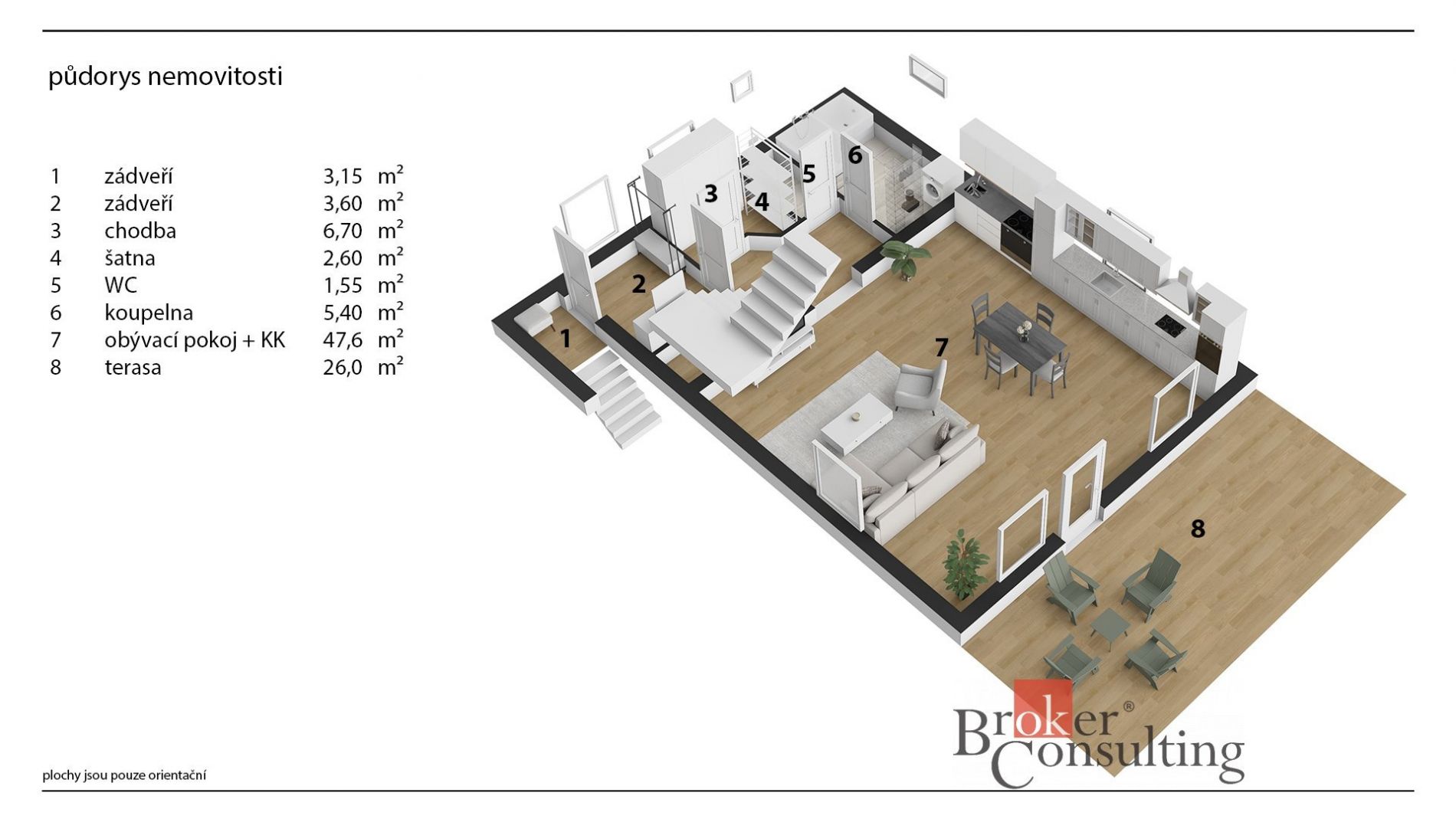 Někdy nehledáme jen dům, ale místo, kde se bude scházet celá rodina. Místo, kde děti běhají po zahradě, přátelé sedí na terase a každý víkend má atmosféru příjemného rodinného setkání. Právě takovou atmosféru nabízí tento rodinný dům v Ivančicích, kolaudovaný v roce 2004. Dispozičně je dům řešen jako 4+kk a díky promyšlenému rozvržení prostoru působí velmi vzdušně a zároveň prakticky. Srdcem celého domu je prostorný obývací pokoj s kuchyní o velikosti 47,5 m, odkud se přímo vstupuje na velkorysou terasu o velikosti 26 m. Ta se snadno stane místem pro letní grilování, rodinné oslavy i klidné ranní kávy s výhledem do okolní krajiny. Komfort bydlení zvyšuje také podlahové vytápění v přízemí, které zajišťuje příjemné teplo v hlavní obytné části domu. V patře je pak vytápění řešeno radiátory. V přízemí se dále nachází koupelna (5,40 m), samostatné WC a praktická komora (2,60 m), která pomůže udržet domácnost přehledně organizovanou. V patře najdete klidovou část domu ložnici orientovanou na východ (16,8 m) s vestavěnou skříní a dva velké pokoje (19,6 m), orientované na západ. Všechny místnosti v patře jsou neprůchozí, což zajišťuje dostatek soukromí pro každého člena domácnosti. Oba pokoje mají přístup na lodžii o velikosti 7 m, odkud si můžete vychutnat krásné západy slunce. V patře se nachází také druhé samostatné WC. Konstrukce domu je kombinací dřevostavby a zděné části. Vytápění zajišťuje plynový kotel, přičemž dle vyúčtování vychází náklady na plyn přibližně na 2 000 Kč měsíčně. Dům je napojen na městský vodovod, na pozemku se navíc nachází kopaná studna s užitkovou vodou, kterou lze využít například pro zalévání zahrady. Kanalizace je v současnosti řešena čističkou odpadních vod, přičemž obecní kanalizace byla přivedena v roce 2025 a projekt na připojení je již připraven. Velkým benefitem této nemovitosti je pozemek o velikosti 1 898 m, který nabízí dostatek prostoru nejen pro zahradu a relaxaci, ale také pro rodinné oslavy, dětské hry nebo další budoucí využití. Na pozemku najdete přístřešek až pro dvě auta, zahradní domek či dílnu a zároveň dostatek prostoru pro další parkování ideální například při větších rodinných setkáních. Dům je navíc částečně podsklepený, což nabízí další praktický úložný prostor. Město Ivančice nabízí příjemné spojení klidného bydlení a dobré dostupnosti do Brna. Najdete zde veškerou občanskou vybavenost, historické centrum, školy, školky i řadu možností pro volnočasové aktivity. Okolní příroda na soutoku tří řek láká k procházkám, cyklovýletům i víkendovým výletům. Pokud hledáte místo, kde může vzniknout skutečný domov, ráda vás domem osobně provedu. Pro více informací nebo domluvení prohlídky mě neváhejte kontaktovat. Těším se na setkání na prohlídce. <a href="https://www.eurobydleni.cz/byty/1_1/zlin/obec-zelechovice-nad-drevnici/pronajem/"><strong>Pronájem bytu 1+1 Želechovice nad Dřevnicí</strong></a>