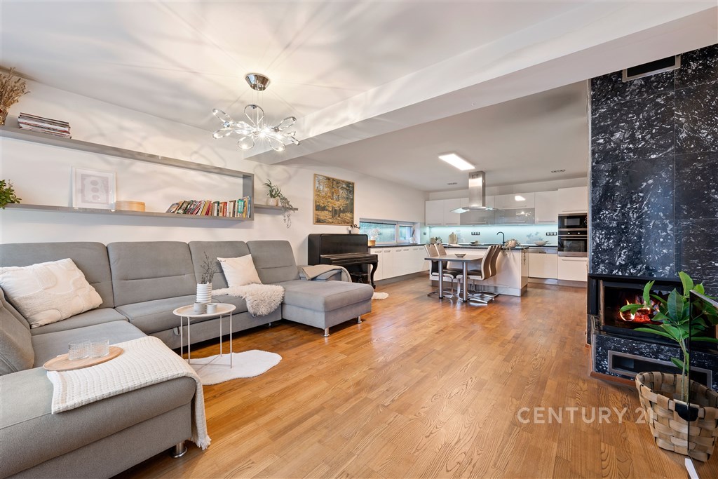 Nabízíme k prodeji moderní dvoupodlažní rodinný dům 5+kk v Rousínově s dvojgaráží a rovinatou zahradou o velikosti 249 m2. Dům skýtá promyšlenou dispozicí, wellnes zázemím, dvojgaráží a krásnou zahradou. Dům je situován v klidné části města a nabízí ideální zázemí pro pohodlný rodinný život. Dispozice domu zahrnuje prostorný otevřený obytný prostor s kuchyní a jídelnou, kde se nachází také krb. Dále jsou zde čtyři samostatné pokoje, z nichž 2 z pokoj mají šatnu. Další pokoje lze využít jako dětské pokoje, pracovnu či domácí posilovnu. Dům disponuje dvěma prostornými koupelnami s toaletou - jednou s vanou a druhou se sprchovým koutem. V přízemí domu je další toaleta. Dům byl dokončen v roce 2016. Celková podlahová plocha domu (obě podlaží) činí 178 m2. Součástí pozemku je také samostatná stavba o velikosti 29 m2, ve které se nachází bazén, vířivka a sauna, což zajišťuje nadstandardní možnosti relaxace. K domu náleží dvojgaráž, která kromě pohodlného parkování nabízí i dostatek úložného prostoru pro kola, lyže či zahradní vybavení.
