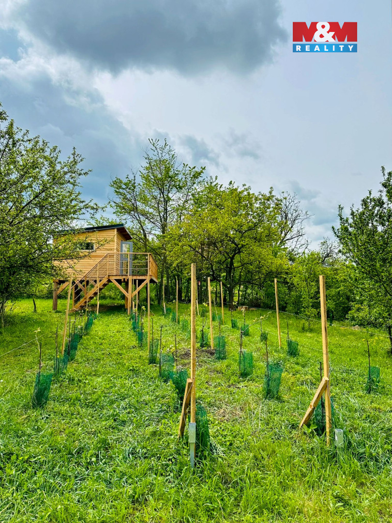 Nabízíme jedinečnou zahradu s vinohradem o rozloze 935 m2 v obci Blučina, s originálně provedeným Tiny Housem ve formě stromového domu. Tento stylový objekt na pilotech a s vlastní terasou nabízí krásné výhledy na okolní krajinu a je ideálně propojen s okolní přírodou. Stavba o ploše 30 m2 je navržena pro pohodlný pobyt i celoroční využití. Uvnitř najdete útulný obytný prostor s dvoulůžkem, praktický kuchyňský kout, samostatnou ekologickou toaletu. Na střeše je fotovoltaický panel pro napájení LED osvětlení, varné konvice a sprchy. V chladnějších dnech oceníte samostatné bezpečné vytápění, které zajišťuje příjemné teplo. Pozemek nabízí soukromí, vlastní parkování, ohniště, ovocné stromy i vinnou révu. V blízkosti se nachází studánka s pitnou vodou. Přístup je zajištěn z Blučiny i ze sousedních Židlochovic. Ideální pro rekreaci, romantické pobyty i zajímavou investici ke krátkodobému pronájmu, jen pár minut od Brna. Cena je konečná a zahrnuje kompletní právní servis.