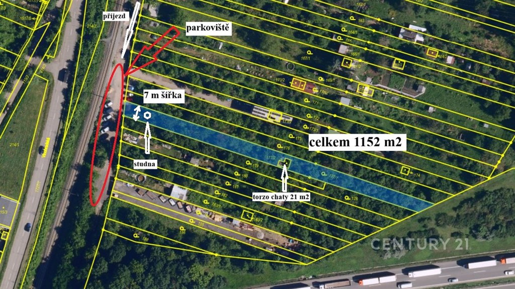Nabízím k prodeji zahradu s chatkou o výměře 1 152 m2 v Brně, katastrální území Brněnské Ivanovice, parcela č. 177/1. Pozemek má přibližnou šířku 7 m, je mírně svažitý a částečně oplocený. Přístup je pohodlný - parkování je možné přímo u pozemku. Zahrada je vyčištěna od náletových dřevin. Na pozemku se nachází torzo chaty č. ev. 136 o zastavěné ploše 21 m2, které je určeno k demolici nebo nahrazení novou stavbou určenou k rekreaci o max. zastavěné ploše 40 m2. Na pozemek není dotažená elektřina. Výhodou je kopaná studna min. 3 m hluboká a také vzrostlé ovocné stromy: meruňky, hruška, mandloň, blumy, třešeň, ořešáky. Pozemek je vhodný pro: zahradničení pěstování ovoce a zeleniny, rekreační využití, skleník, altán, kůlna, chata o ZP max 40 m2 (max 1 podlaží + podkroví). Je však potřeba počítat s tím, že lokalita není zcela klidná - cca 20 m od pozemku vede železniční trať a přibližně 50 m od pozemku dálnice. V případě zájmu o více informací či o prohlídku kontaktujte makléřku.