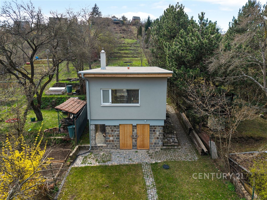 Nabízím k prodeji útulnou a pečlivě zpracovanou chatu v klidné zahrádkářské oblasti brněnských Medlánek, v bezprostřední blízkosti přírody Přírodního parku Baba. Lokalita je ideální pro milovníky klidu, zeleně a soukromí, zároveň s dobrou dostupností do města. Chata je zděná, dvoupodlažní (1 nadzemní podlaží + suterén) a určená k rekreaci s možností celoročního užívání. Konstrukční systém je stěnový z betonových tvárnic, což zajišťuje pevnost a dlouhou životnost stavby. Objekt má pravidelný obdélníkový půdorys o rozměrech cca 6,6 × 5,6 m a je zastřešen pultovou střechou. Dispozice je řešena velmi prakticky. V 1. nadzemním podlaží (1.NP) o podlahové ploše cca 27,34 m2 se nachází hlavní obytná místnost s kuchyňským koutem a prostorem pro spaní a dále koupelna s WC. Obytný prostor je příjemně prosvětlen okny ze všech světových stran a vstupem přes francouzské dveře orientované na jihozápad. Suterén (1.PP / 1.S) o celkové ploše cca 45,77 m2 je rozdělen na tři samostatné místnosti - technické zázemí a skladovací prostory (9,01 m2, 18,56 m2 a 18,20 m2), kde je umístěn mimo jiné i bojler pro ohřev vody. Celková podlahová plocha objektu činí cca 73,11 m2. Vytápění je zajištěno krbovými kamny na tuhá paliva, která dodávají interiéru příjemnou atmosféru, doplněnými elektrickým přímotopem pro rychlé temperování. Ohřev vody je řešen pomocí elektrického bojleru. Objekt je napojen na elektřinu a vodu, odpad je sveden do jímky. Na pozemku se dále nachází vlastní studna. Chata stojí na vlastním pozemku o celkové výměře cca 1 010 m2, který tvoří zahrada s mírně svažitým terénem. Pozemek nabízí dostatek prostoru pro relaxaci, zahradničení i parkování přímo u objektu. Umístění chaty na pozemku zajišťuje příjemné soukromí a kontakt s okolní přírodou. Objekt je situován v severovýchodní části pozemku, vstup je orientován na jihozápad, což zajišťuje dobré prosvětlení hlavního obytného prostoru během dne. Tato nemovitost představuje skvělou příležitost pro ty, kteří hledají místo pro odpočinek v přírodě, a přitom chtějí zůstat na dosah města. Stačí přijet a začít si užívat klid, který tato lokalita nabízí.